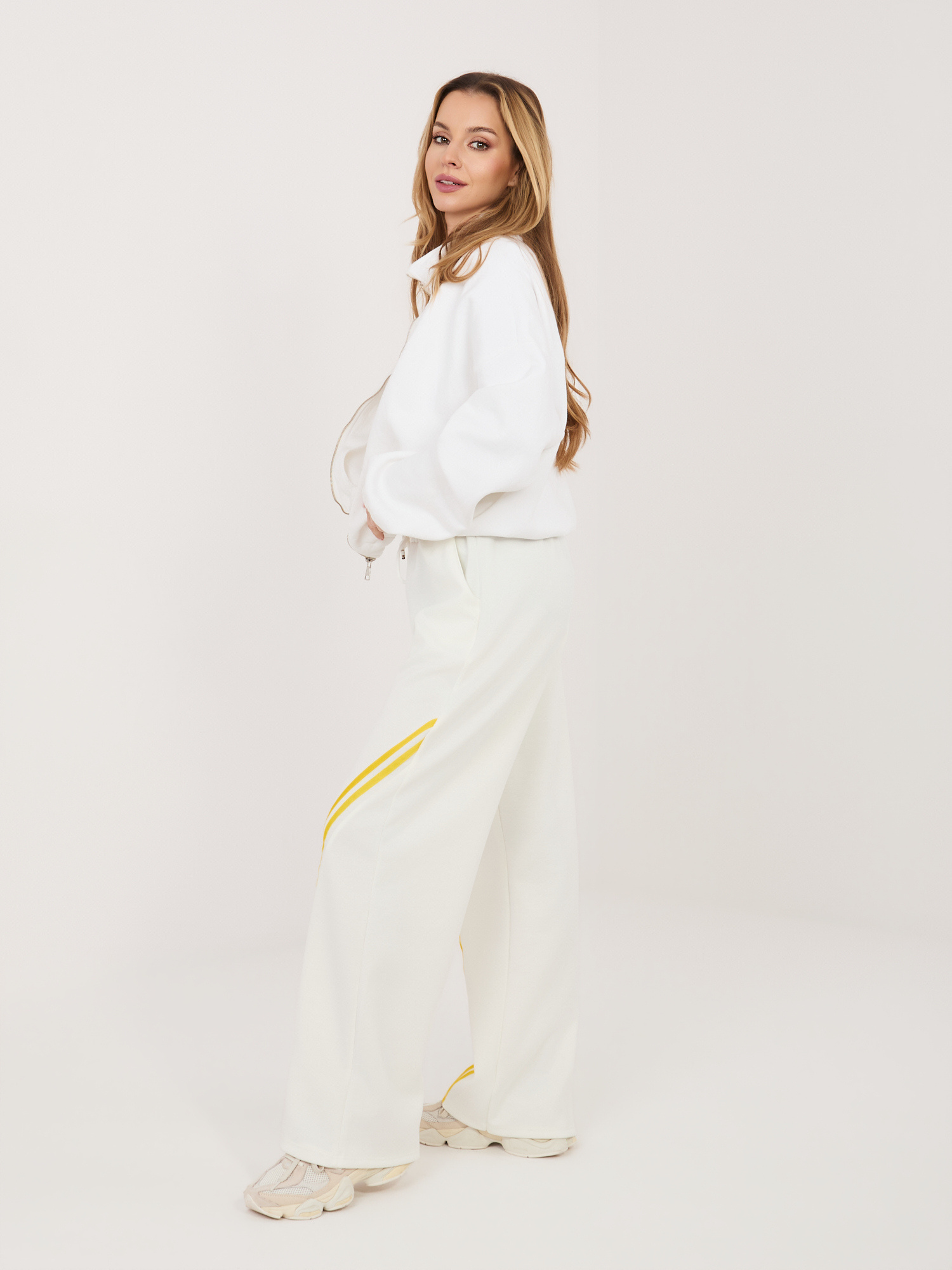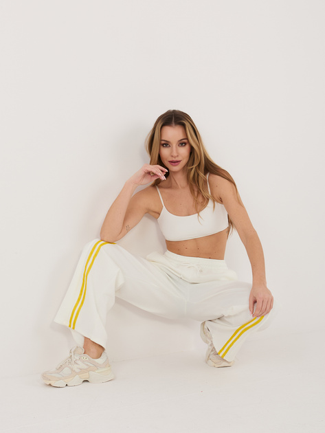 Ecru dresowe spodnie z prostą nogawką .