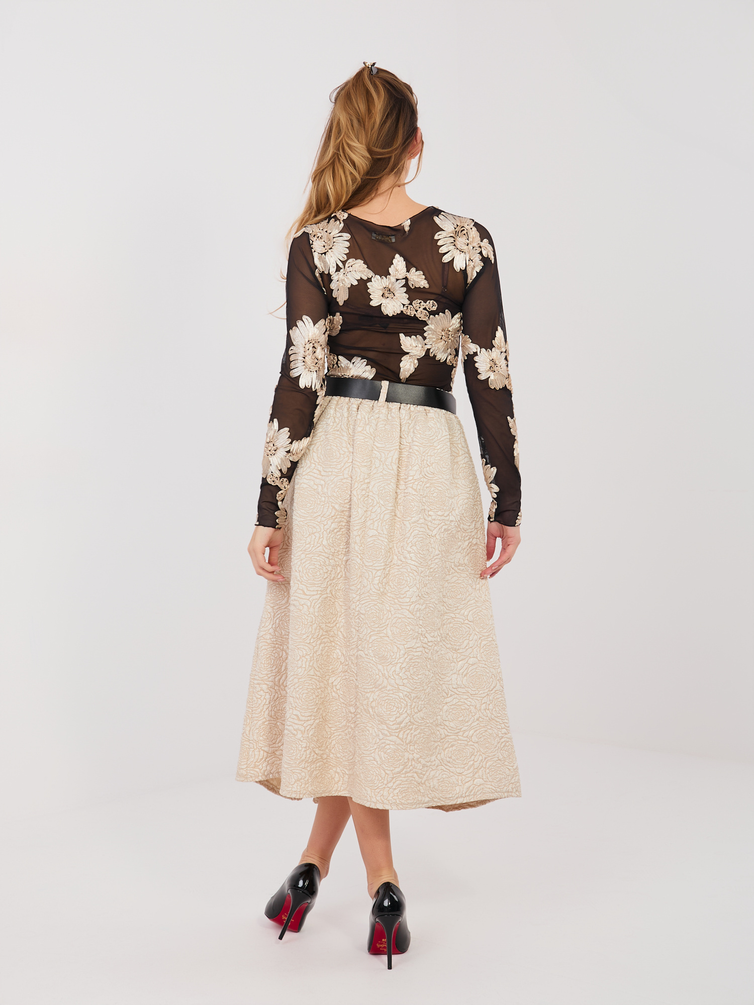 Beżowa spódnica z fakturowej tkaniny RUE PARIS .