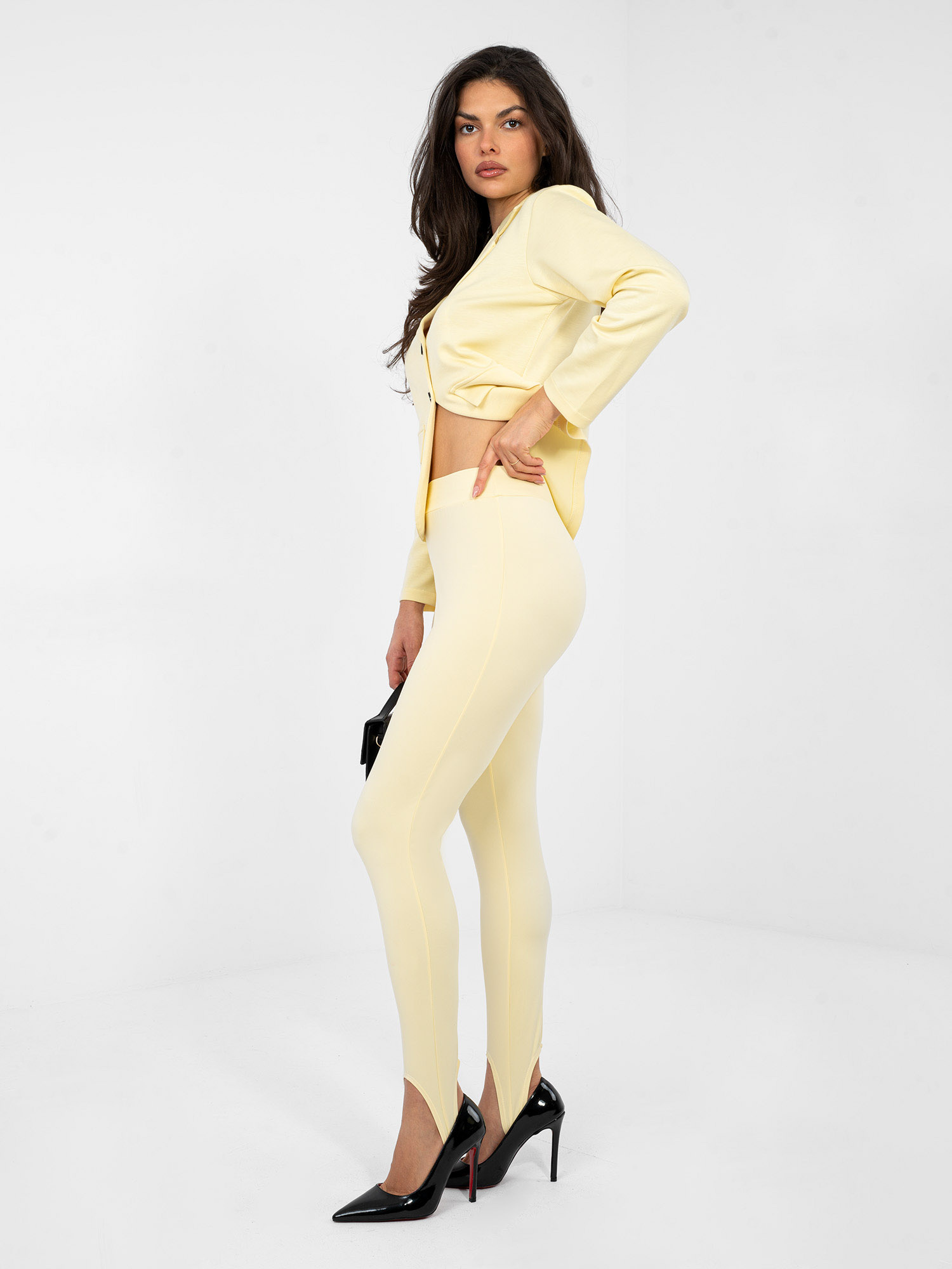 Pastelowe żółte gładkie legginsy na palec RUE PARIS .