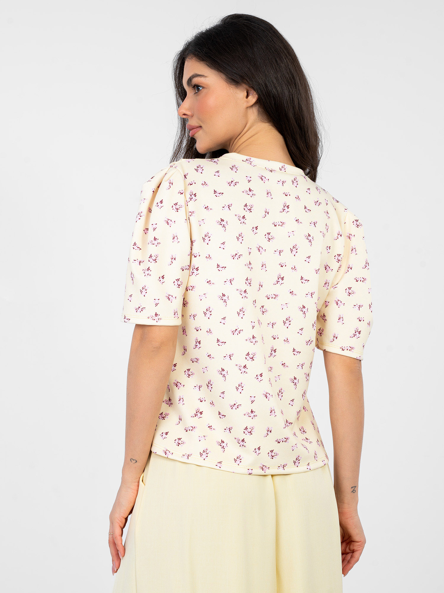 Pastelowa żółta damska bluzka w kwiaty