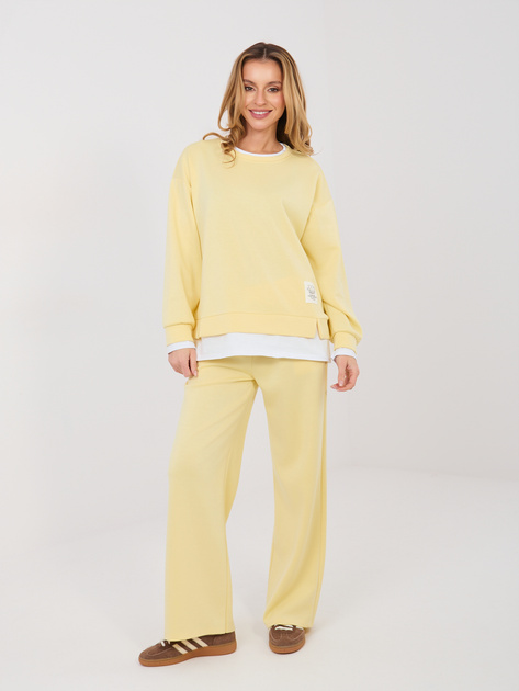 Pastelowy żółty komplet z dwuwarstwową bluzą RUE PARIS .