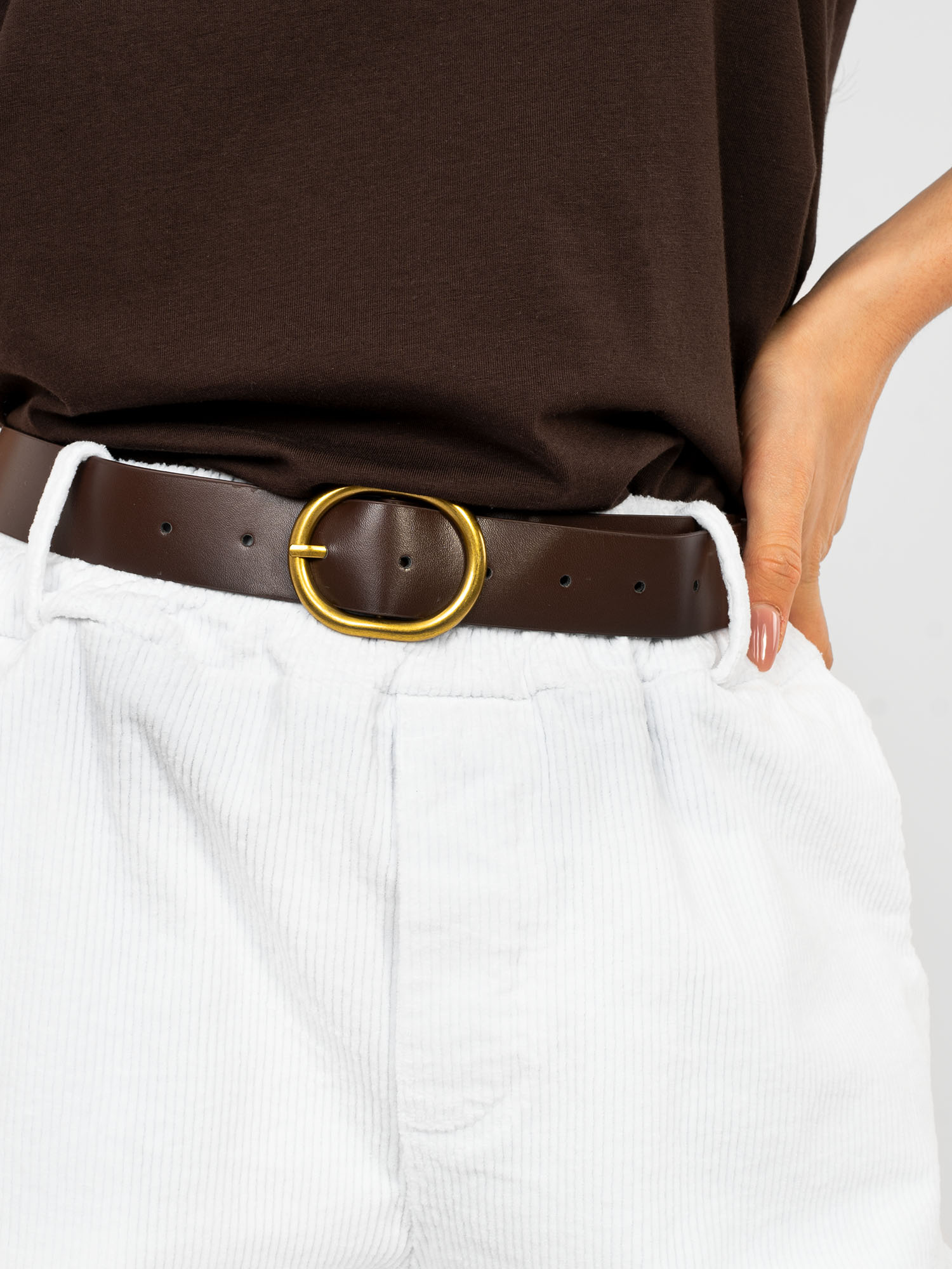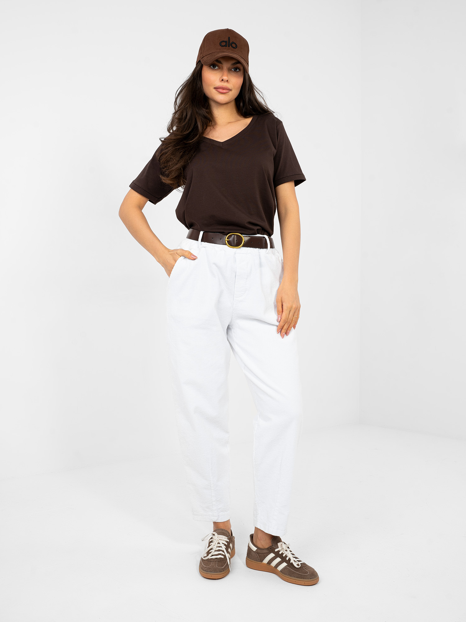 Białe sztruksowe spodnie z kieszeniami