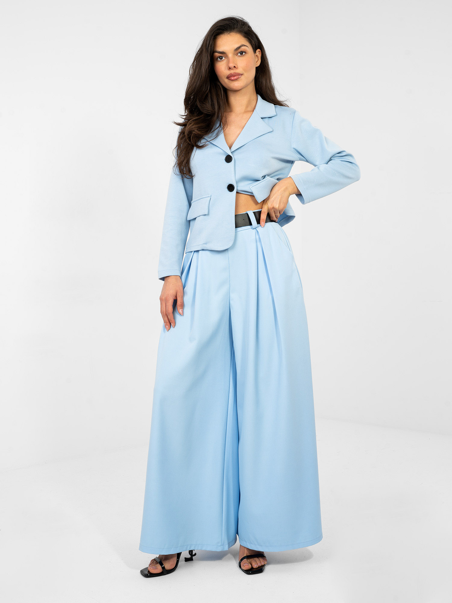 Opinie o Pastelowe niebieskie szerokie spodnie z zakładkami RUE PARIS