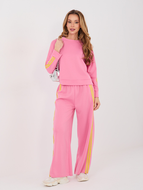 Ciemnoróżowy casualowy komplet z lampasami RUE PARIS .