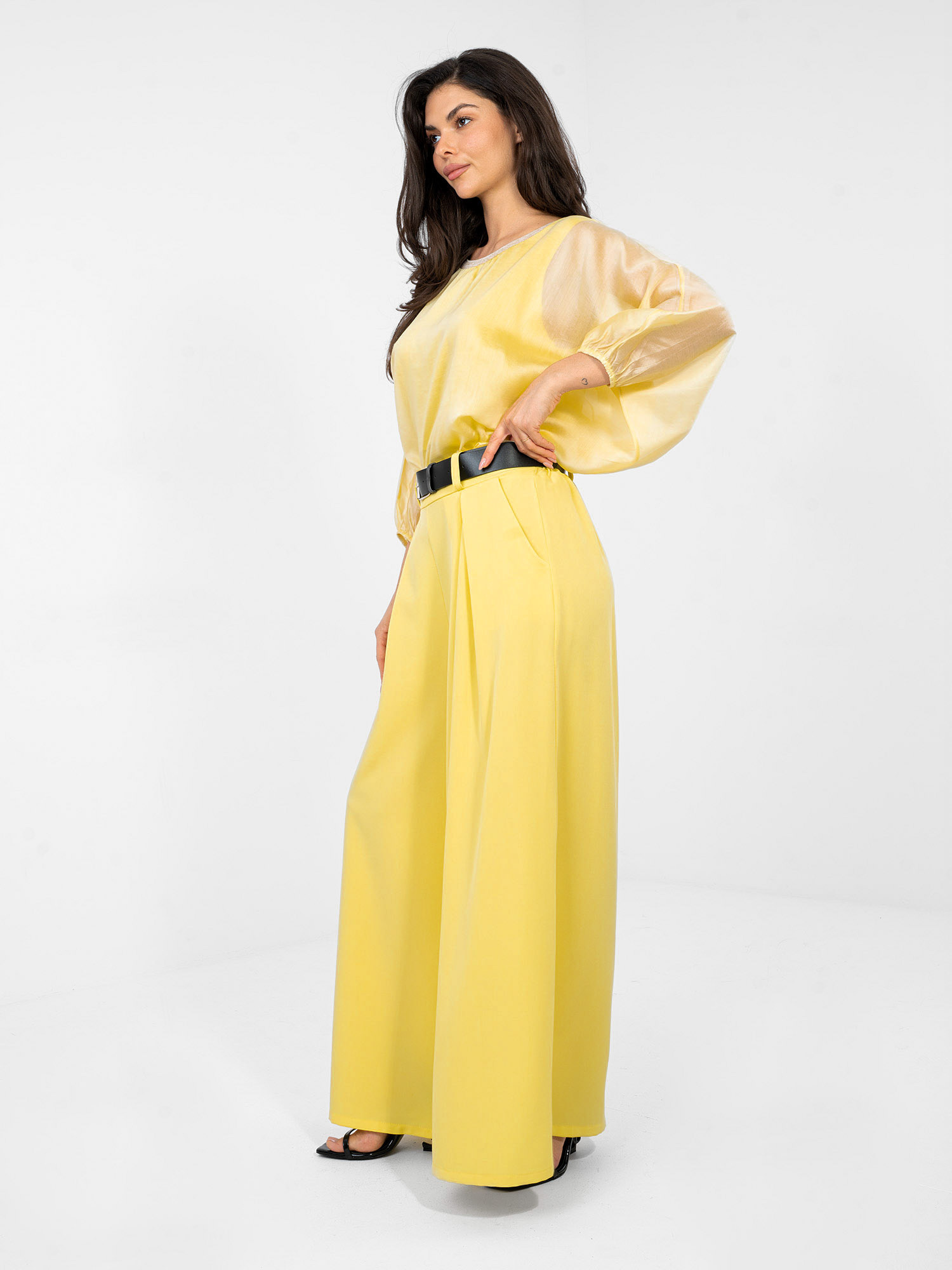 Opinie o Żółte szerokie spodnie z paskiem RUE PARIS