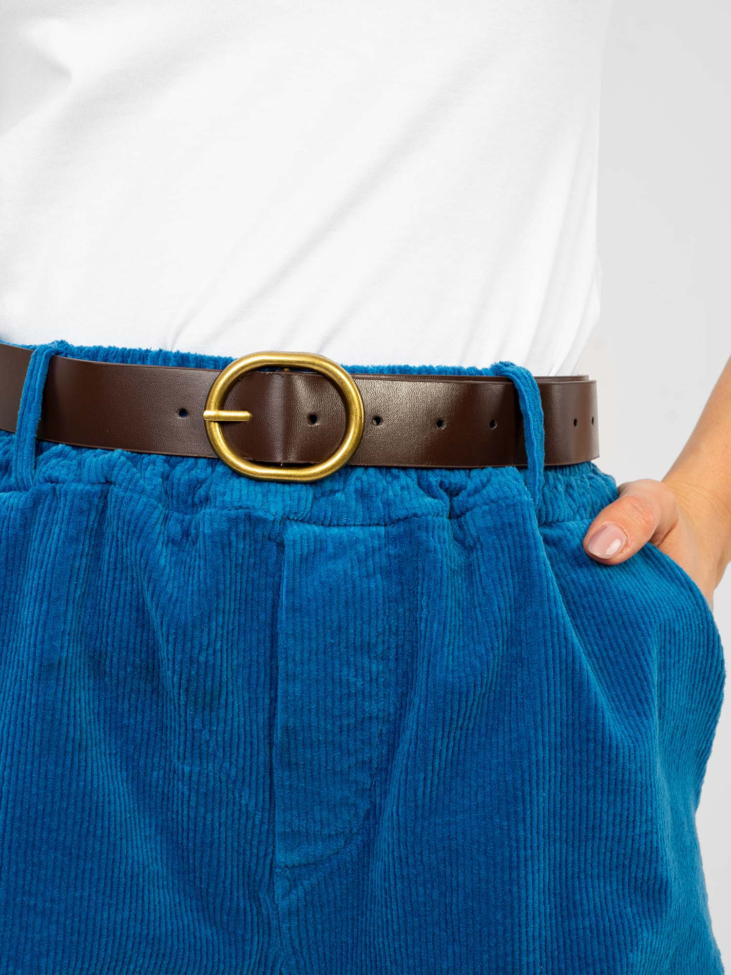 Ciemnoniebieskie sztruksowe spodnie z nogawką 7/8