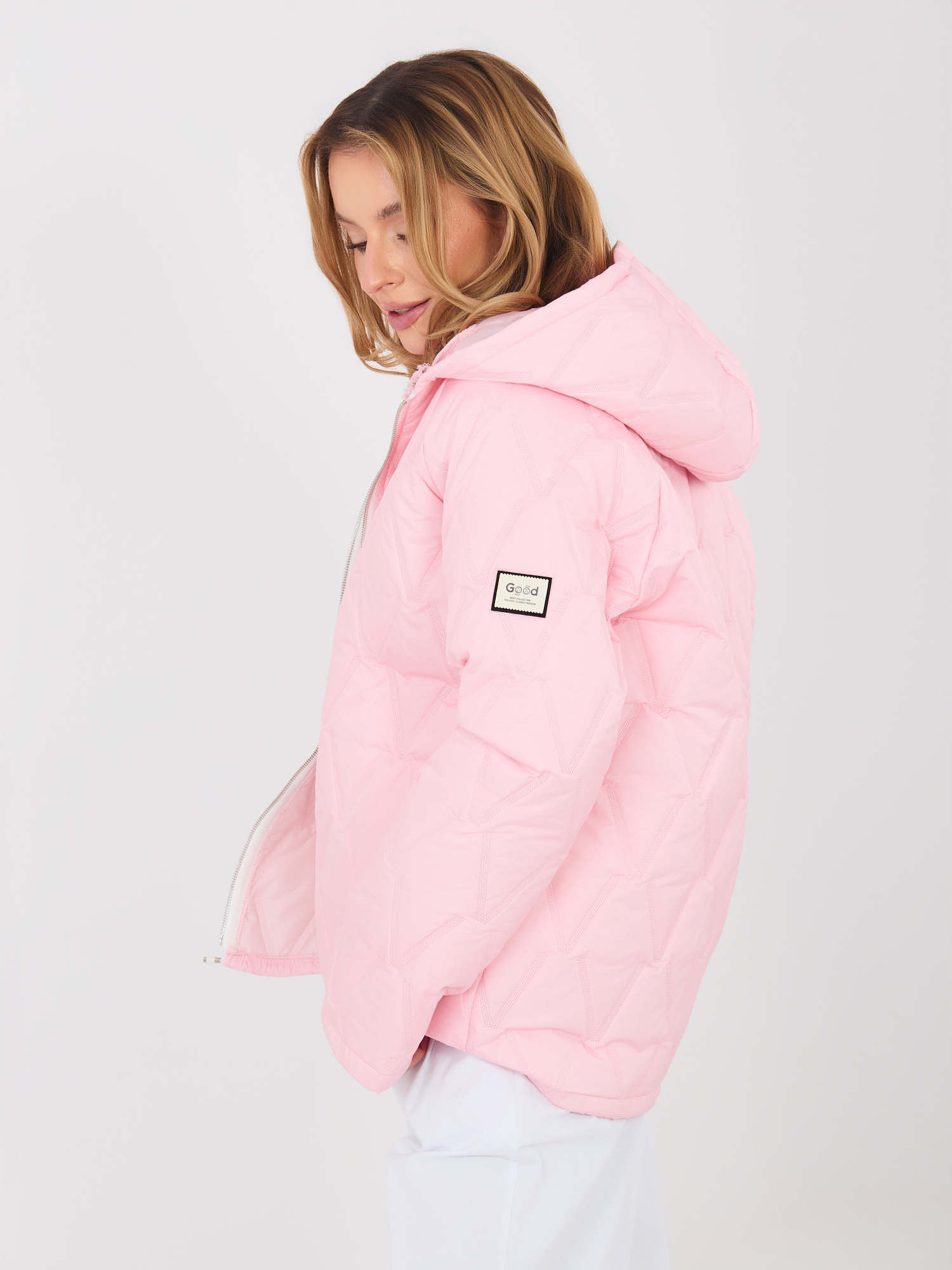 Pastelowa różowa przejściowa kurtka z kapturem