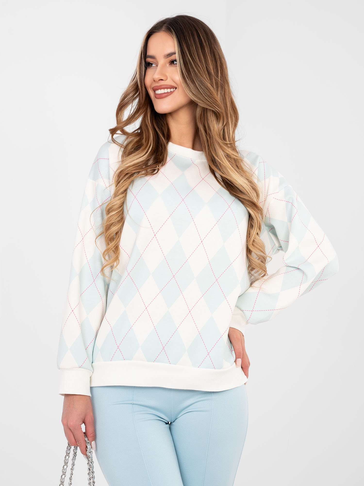 Jasnomiętowa bluza oversize z długim rękawem .
