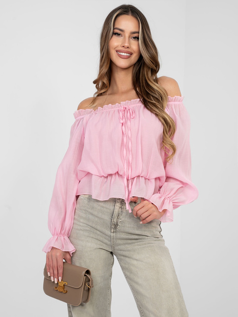 Jasnoróżowa bluzka hiszpanka z wiązaniem RUE PARIS .
