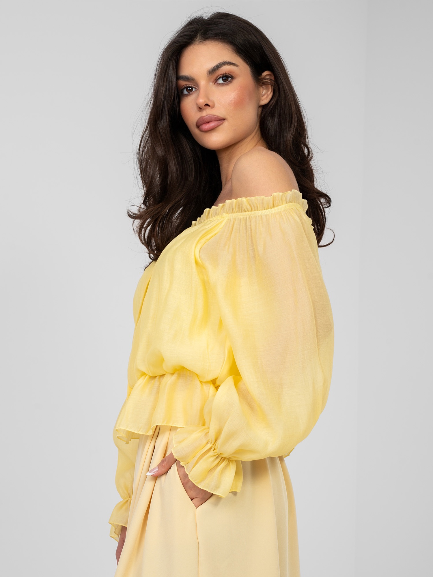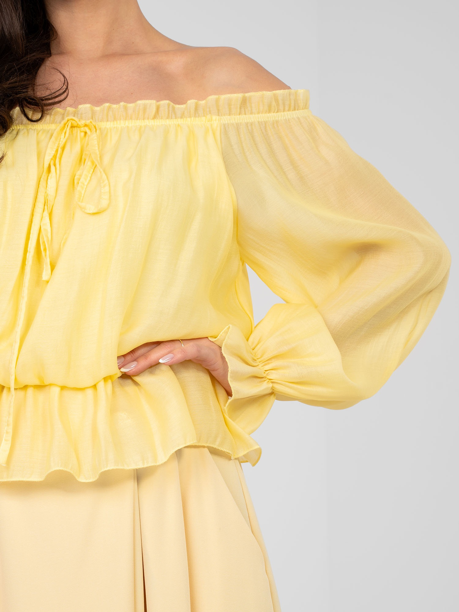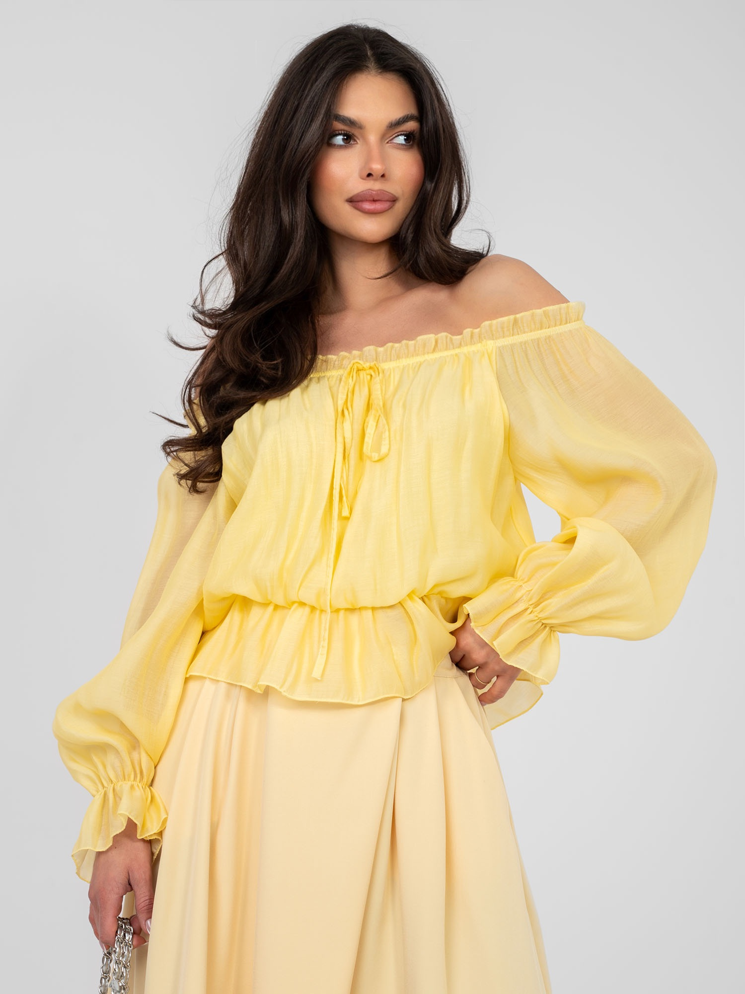Jasnożółta bluzka hiszpanka z wiązaniem RUE PARIS .