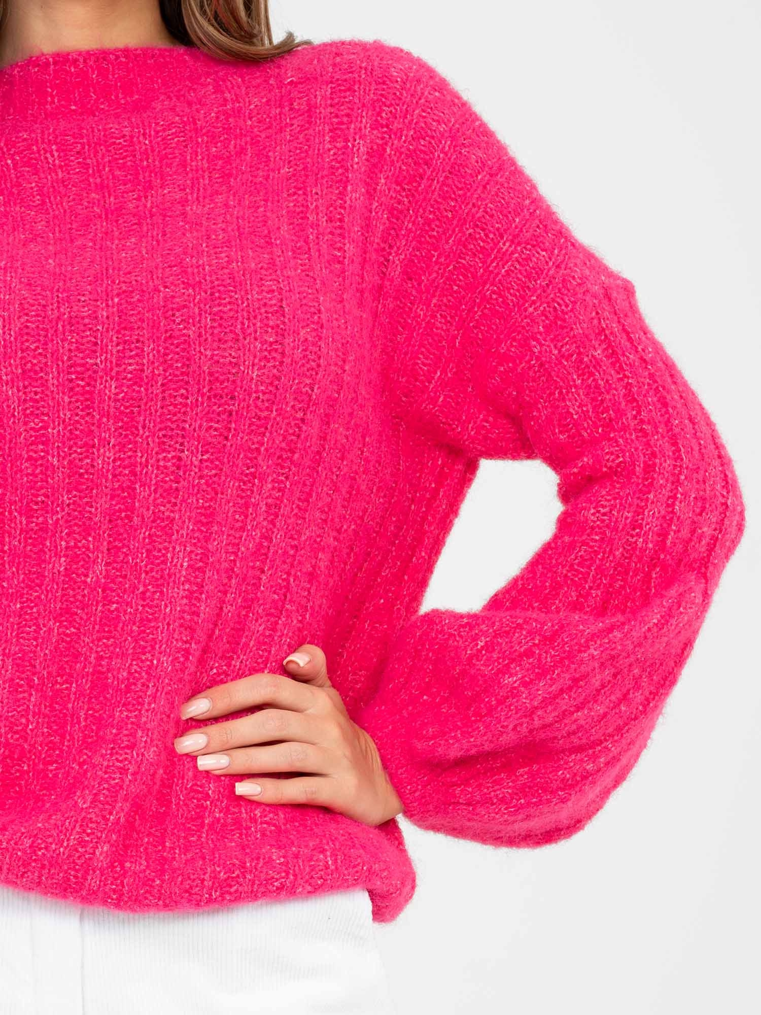 Fuksjowy sweter oversize z domieszką wełny