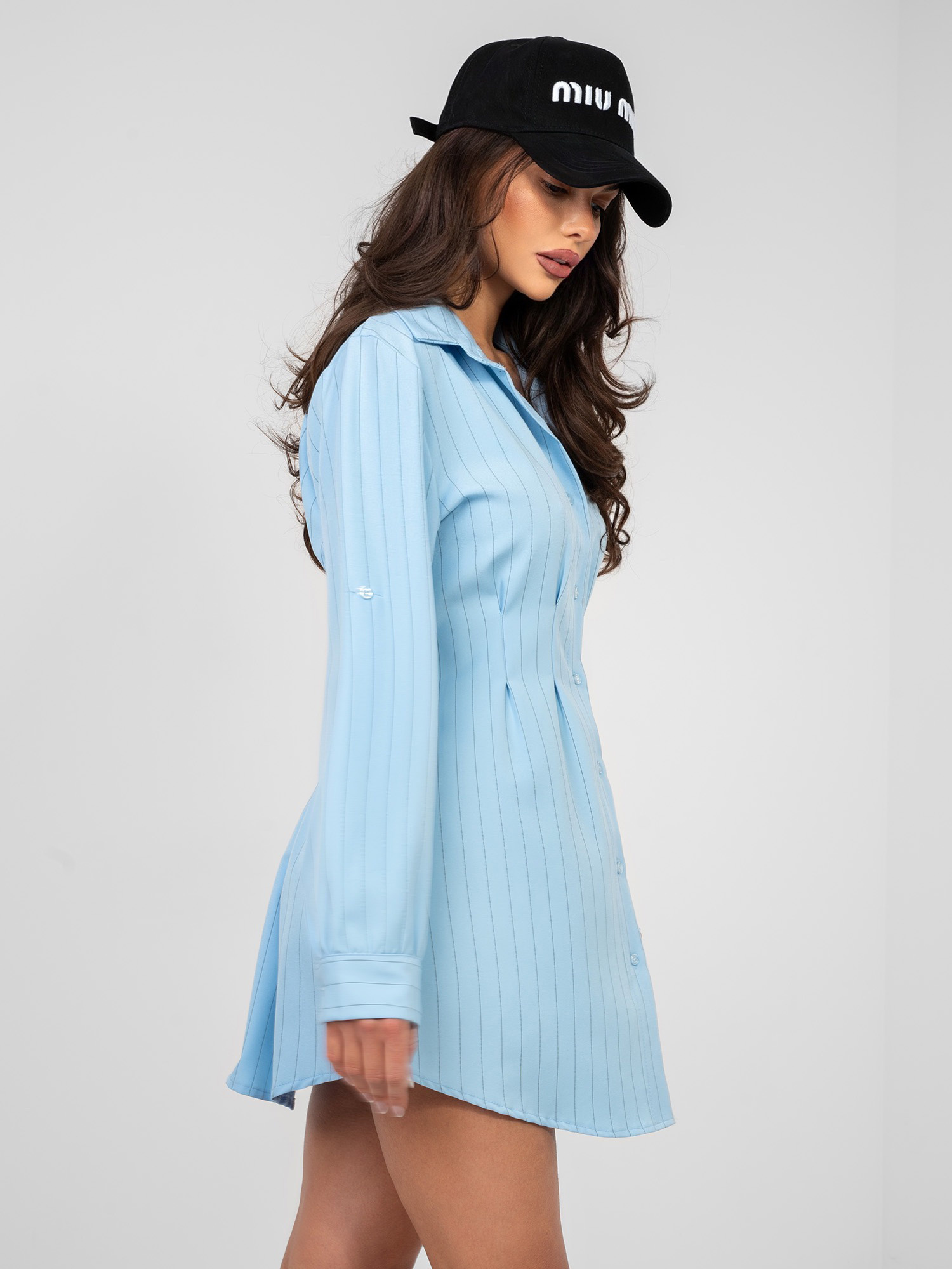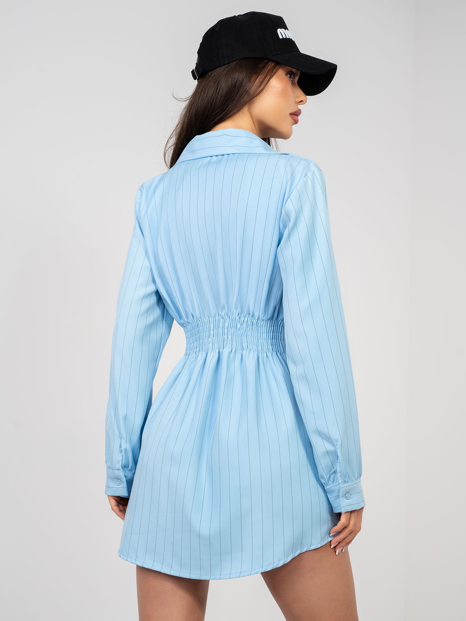 Pastelowa niebieska sukienka z elastycznym marszczeniem RUE PARIS .