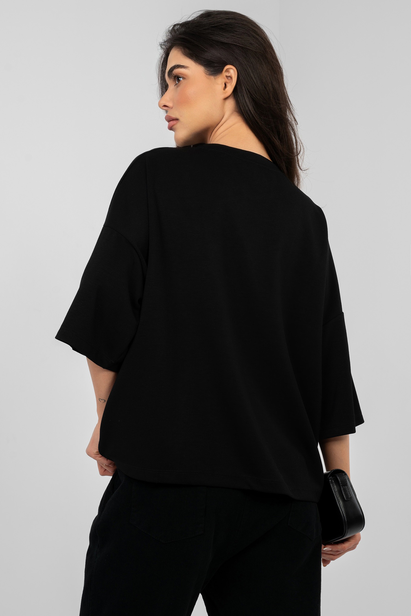 Czarna bluzka basic z miękkiego materiału RUE PARIS .
