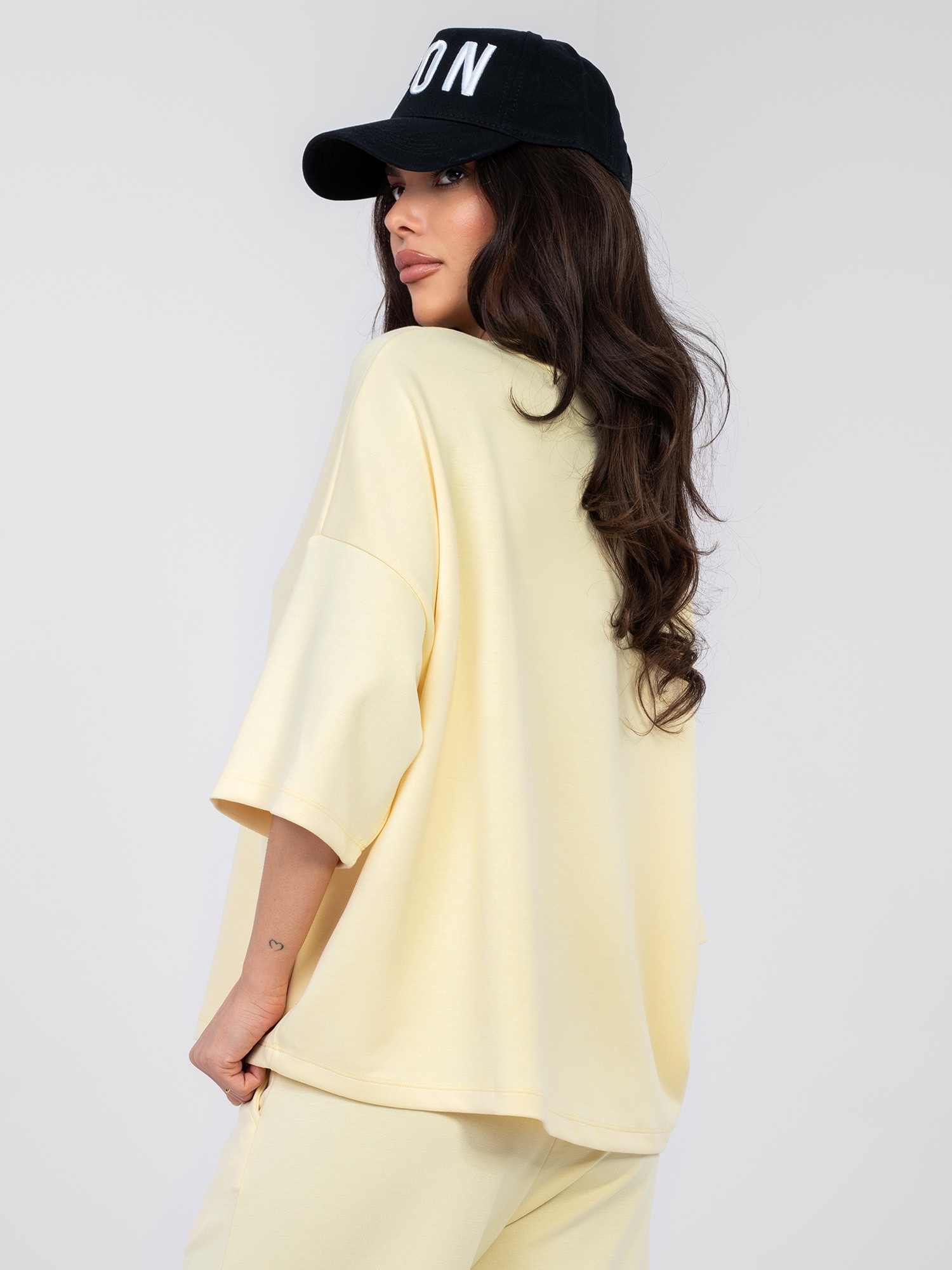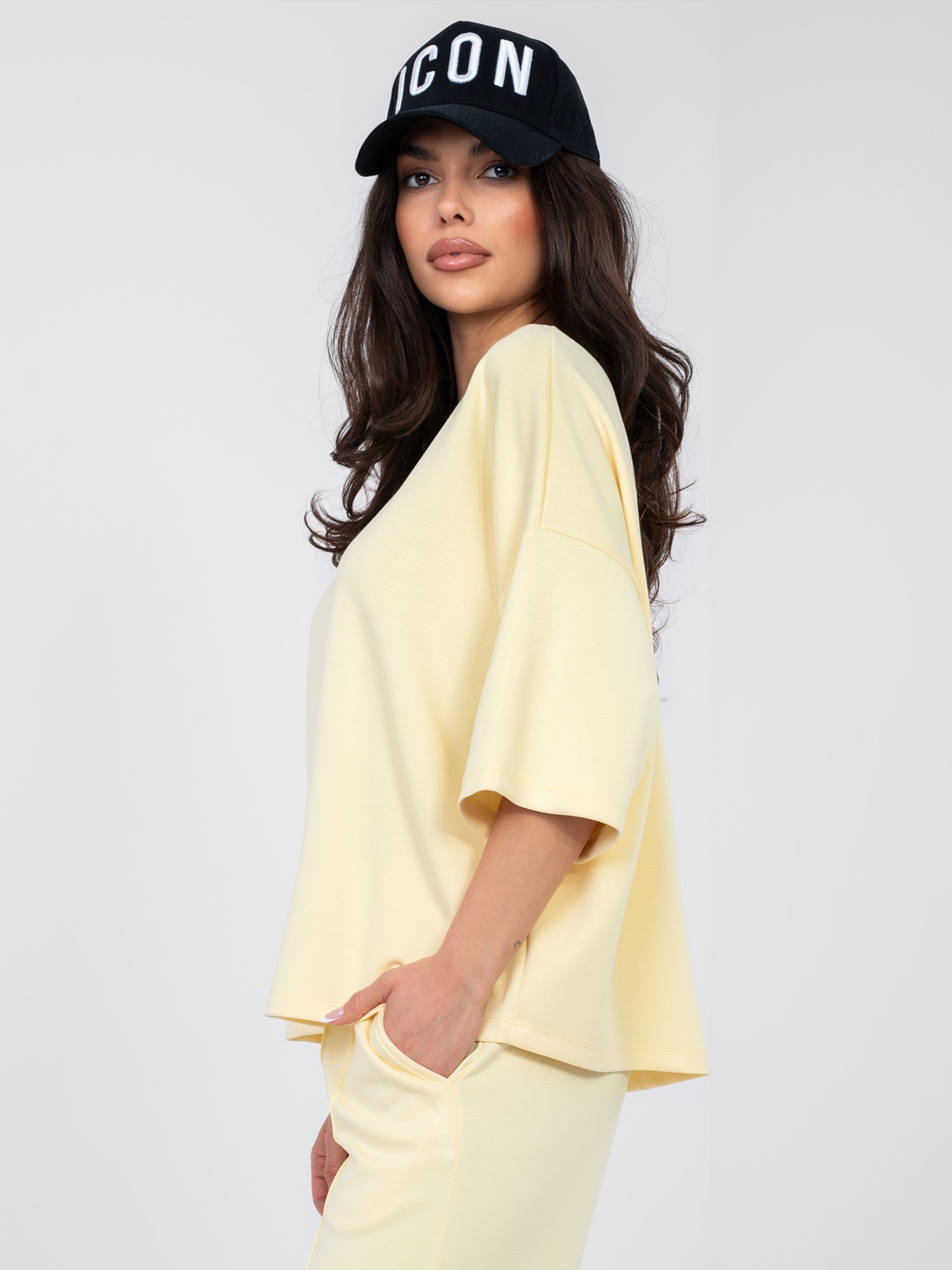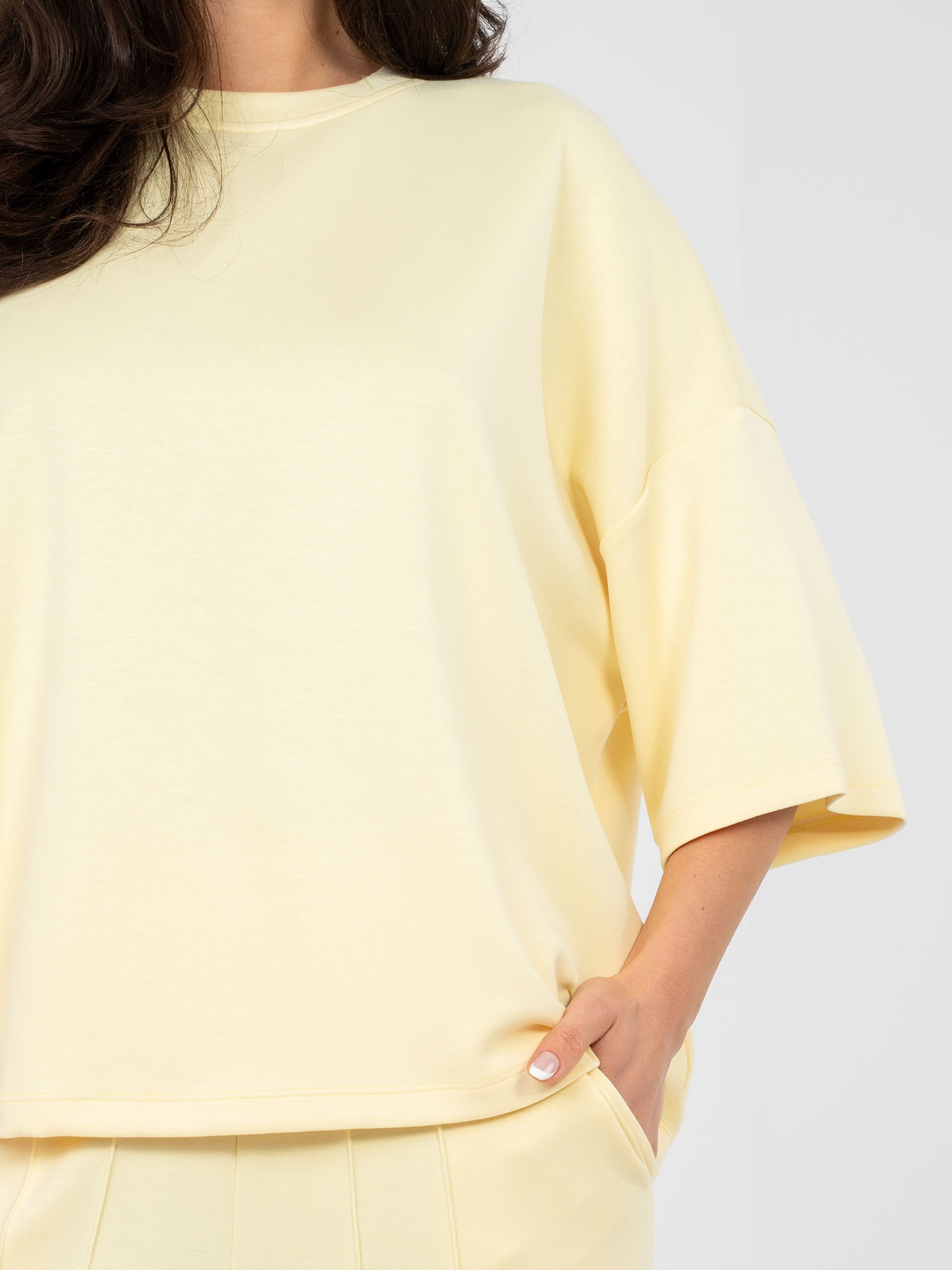 Pastelowa żółta bluzka basic z okrągłym dekoltem RUE PARIS .