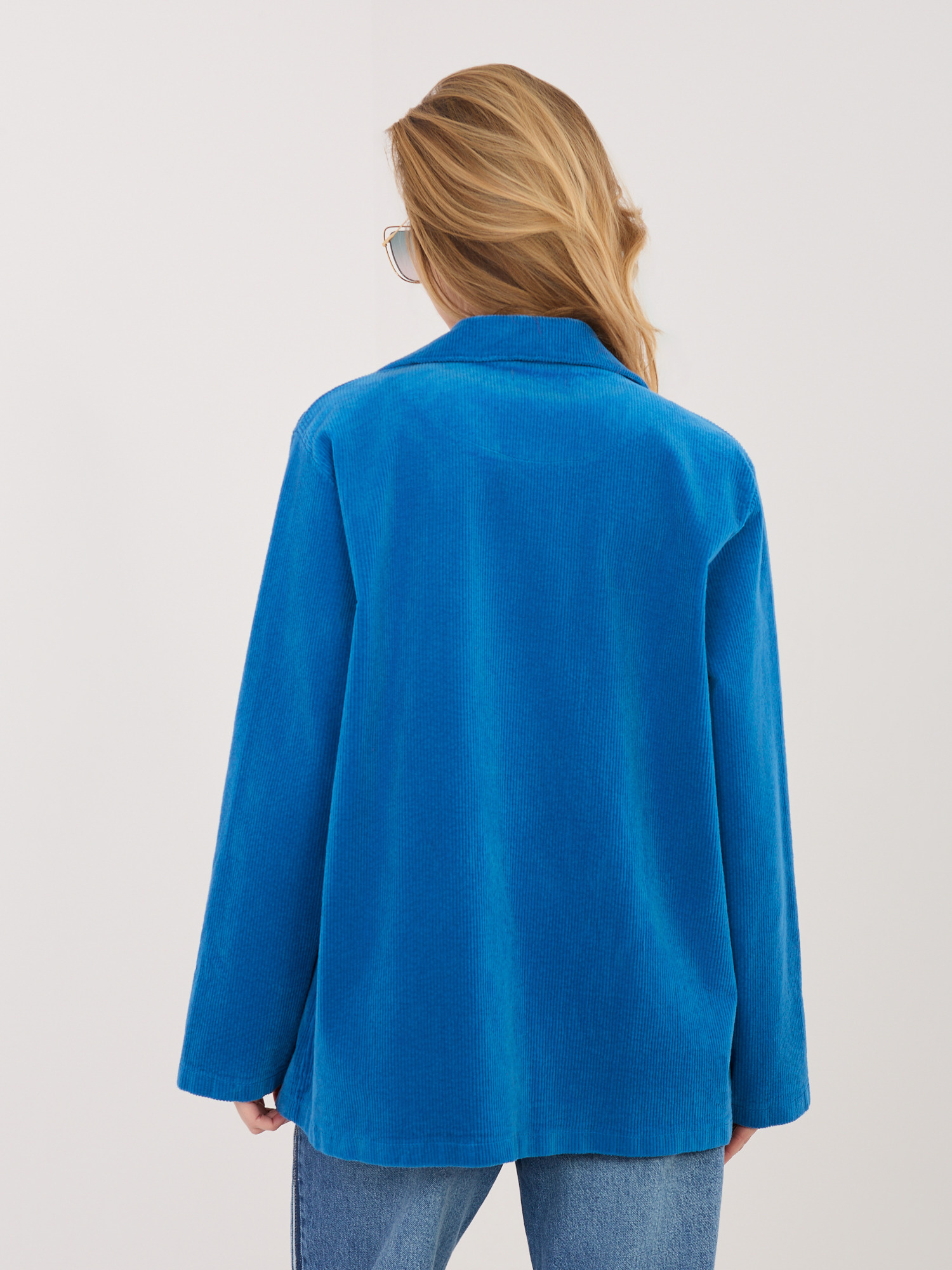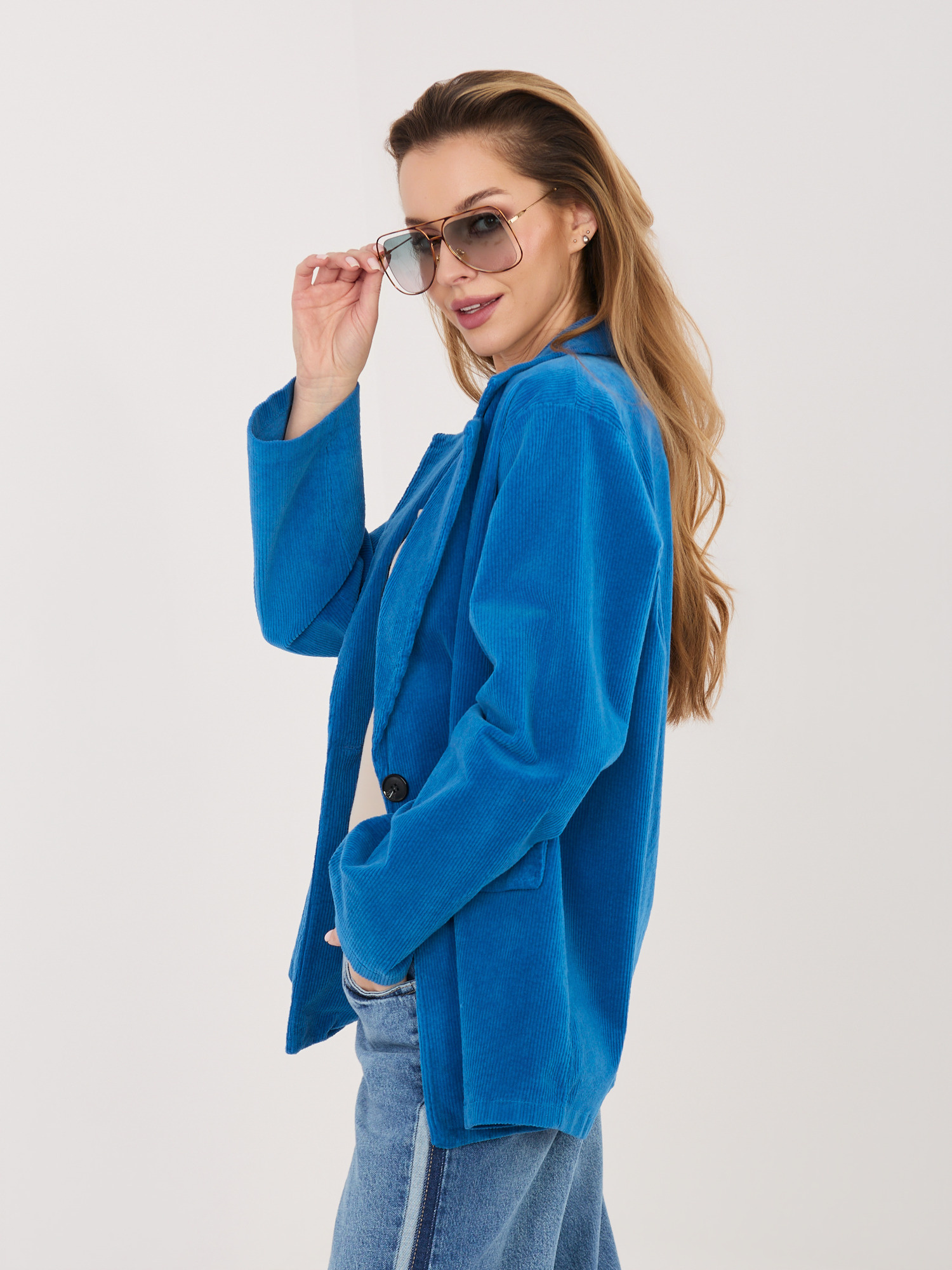 Kobaltowa sztruksowa marynarka z imitacją kieszeni RUE PARIS .