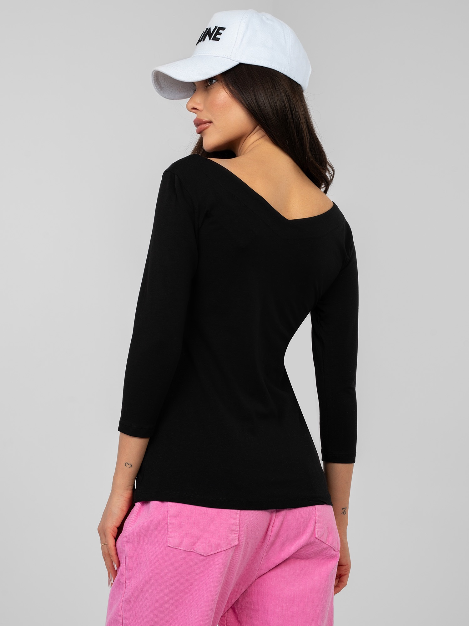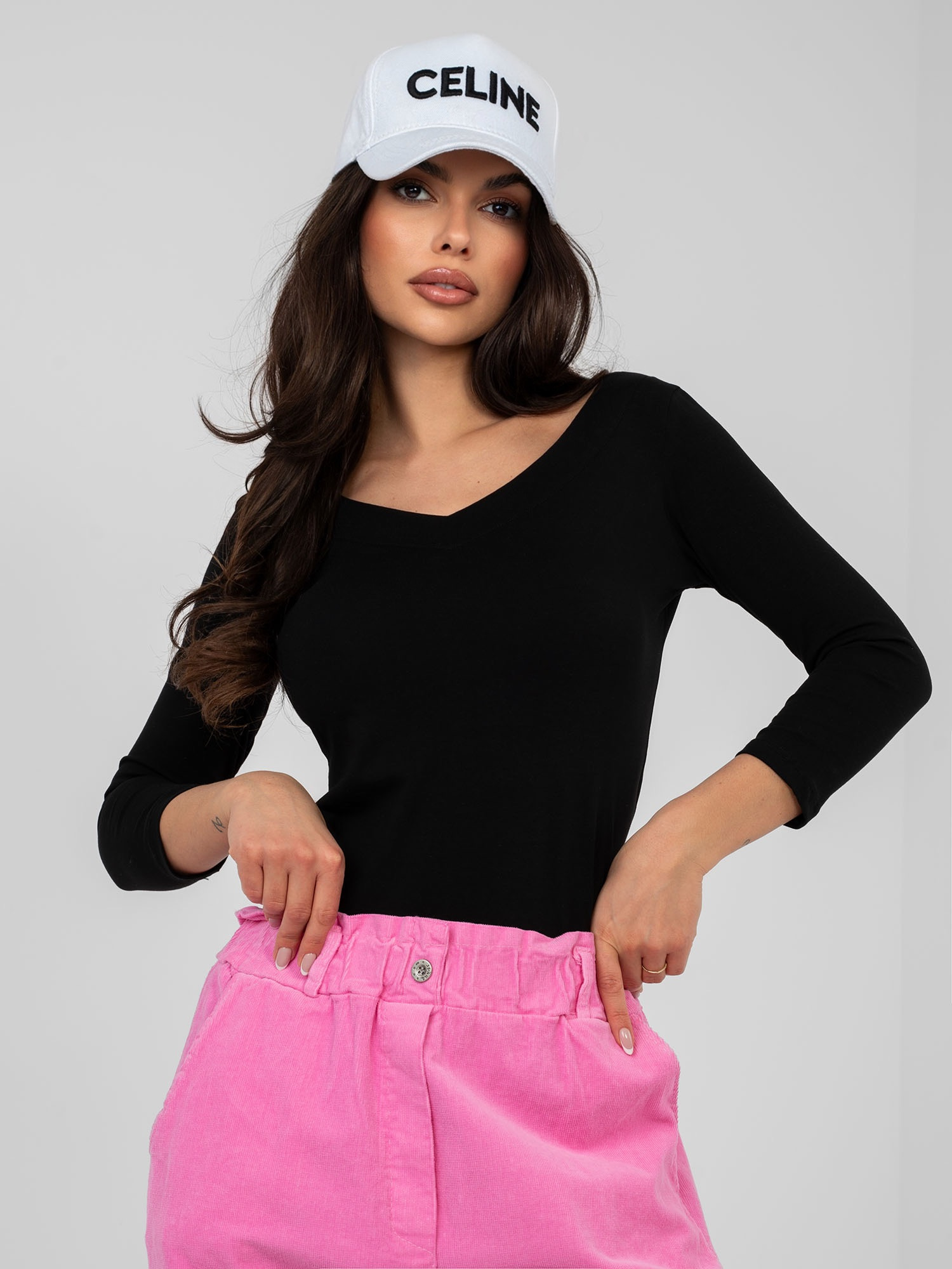 Czarna dopasowana bluzka basic z dekoltem V RUE PARIS .