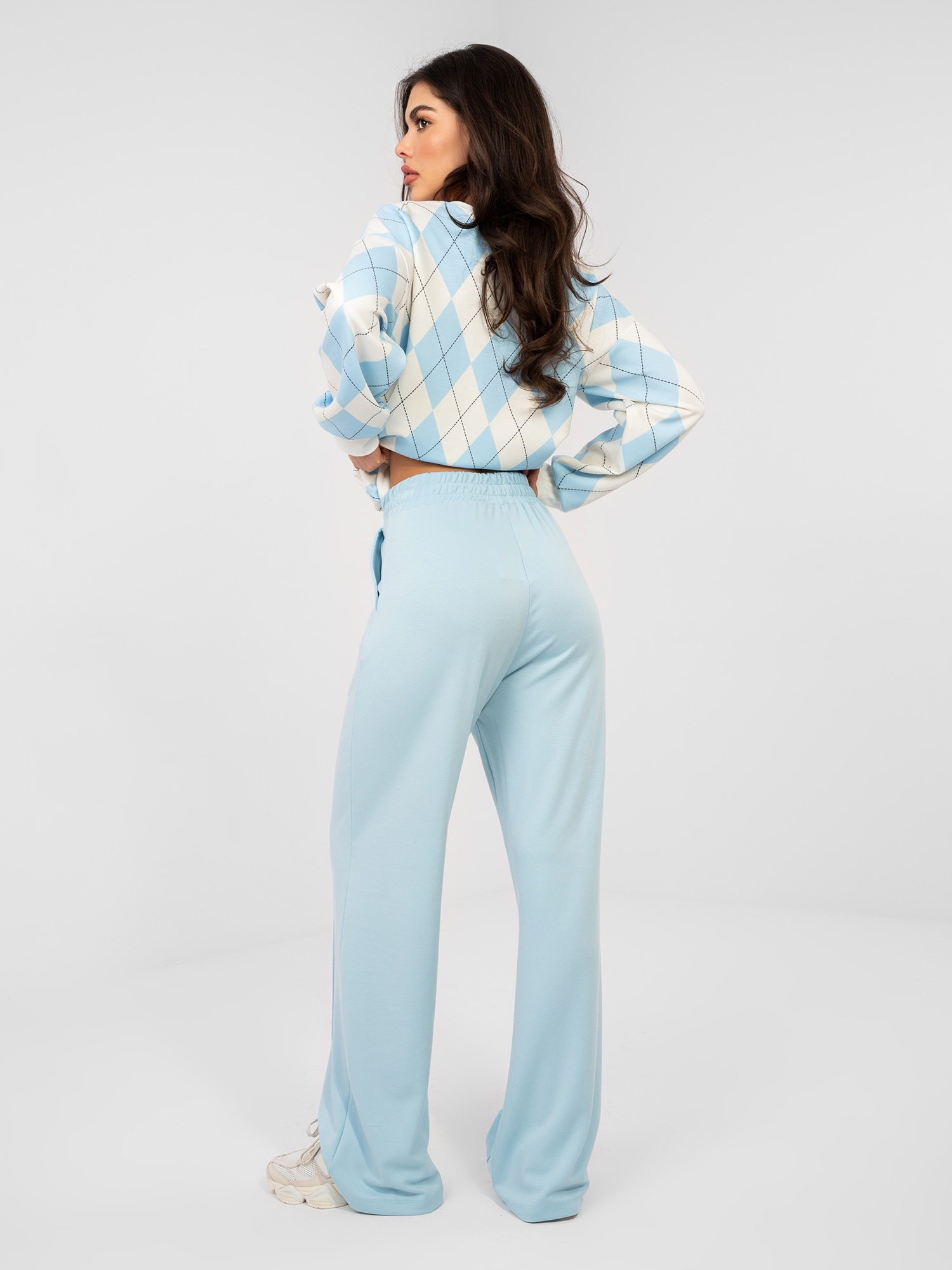 Opinie o Pastelowe niebieskie spodnie basic wide leg RUE PARIS