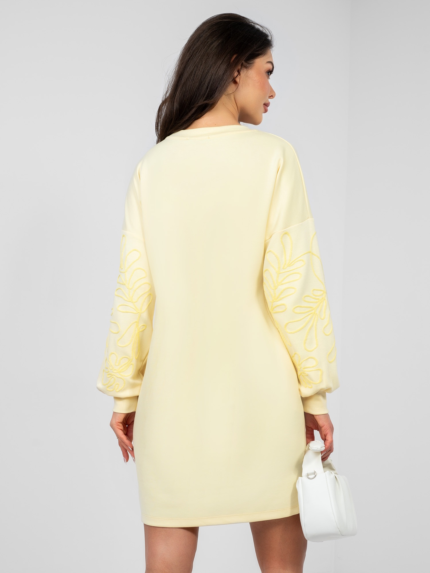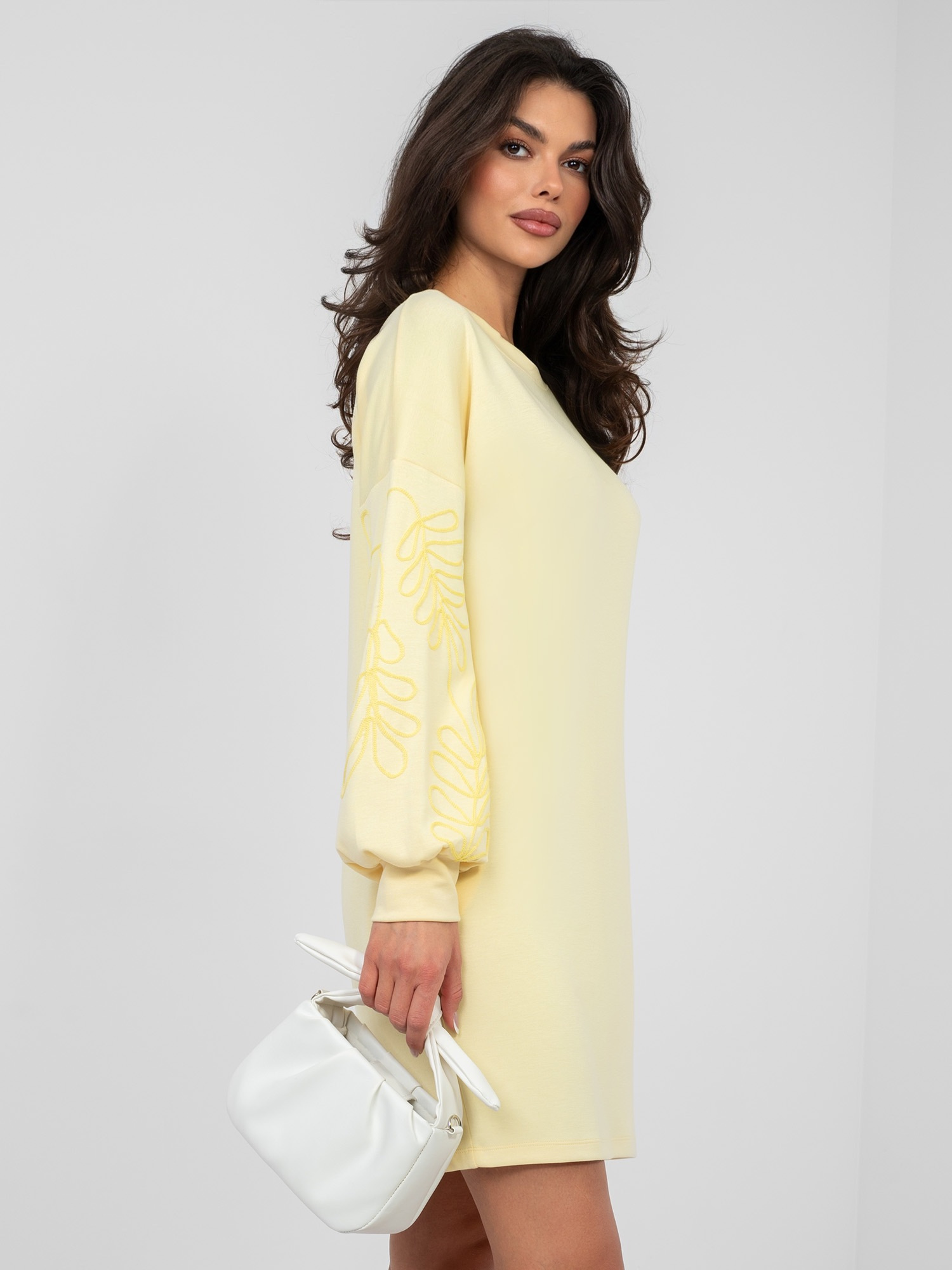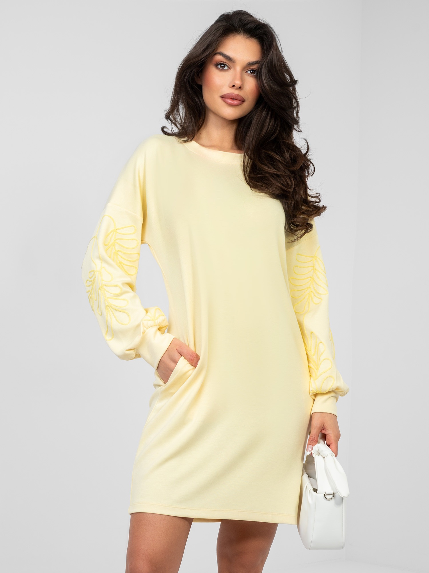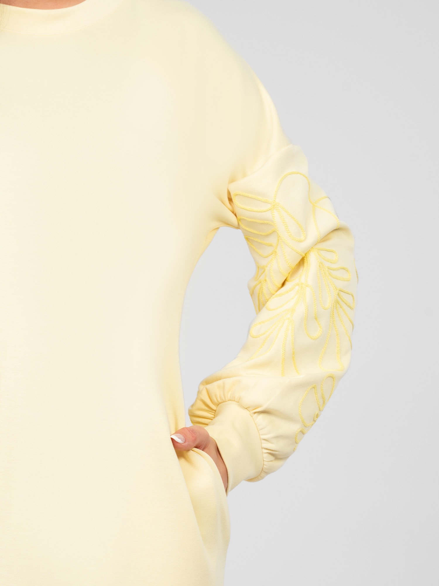 Pastelowa żółta dresowa sukienka z kieszeniami RUE PARIS .