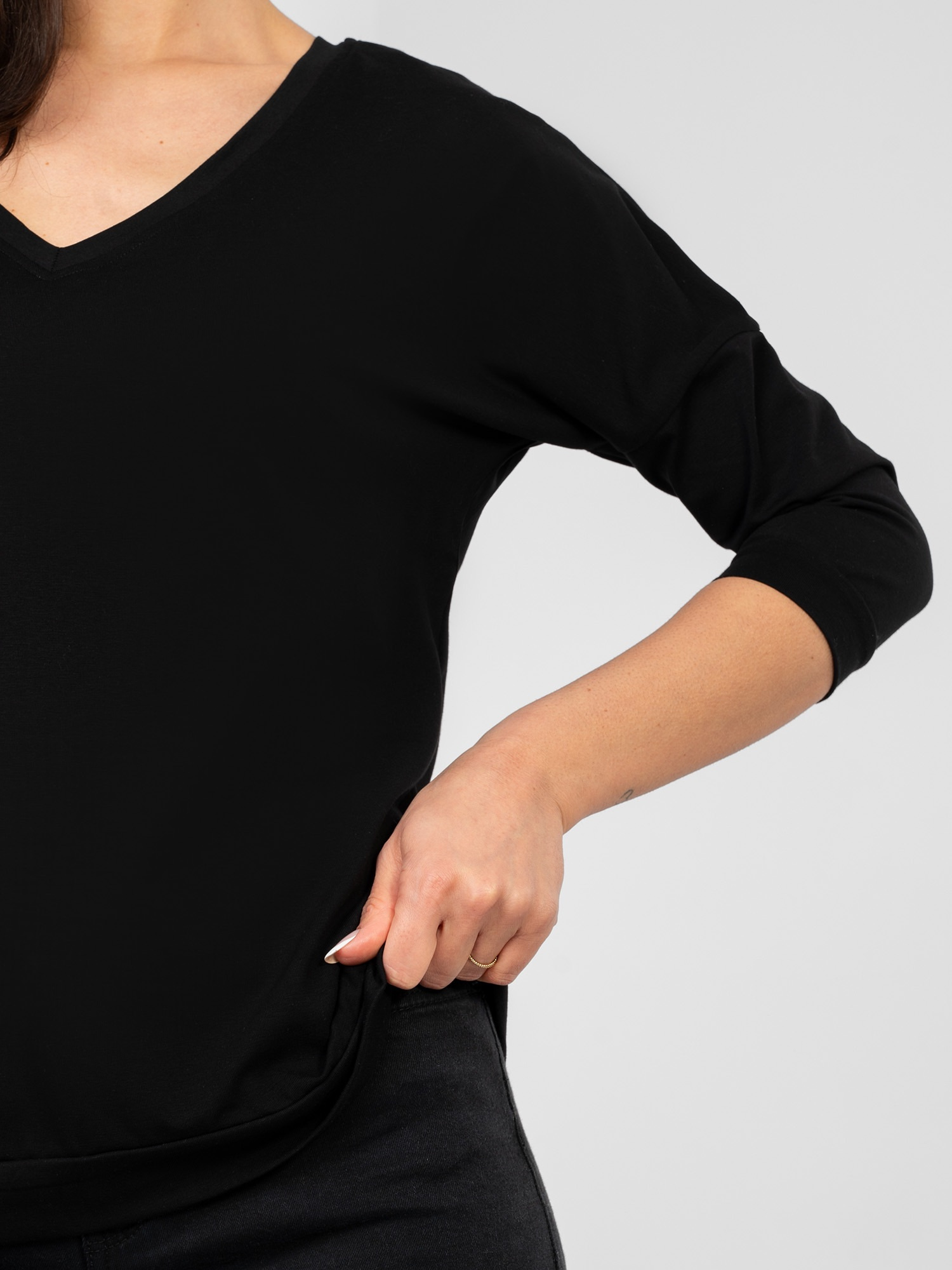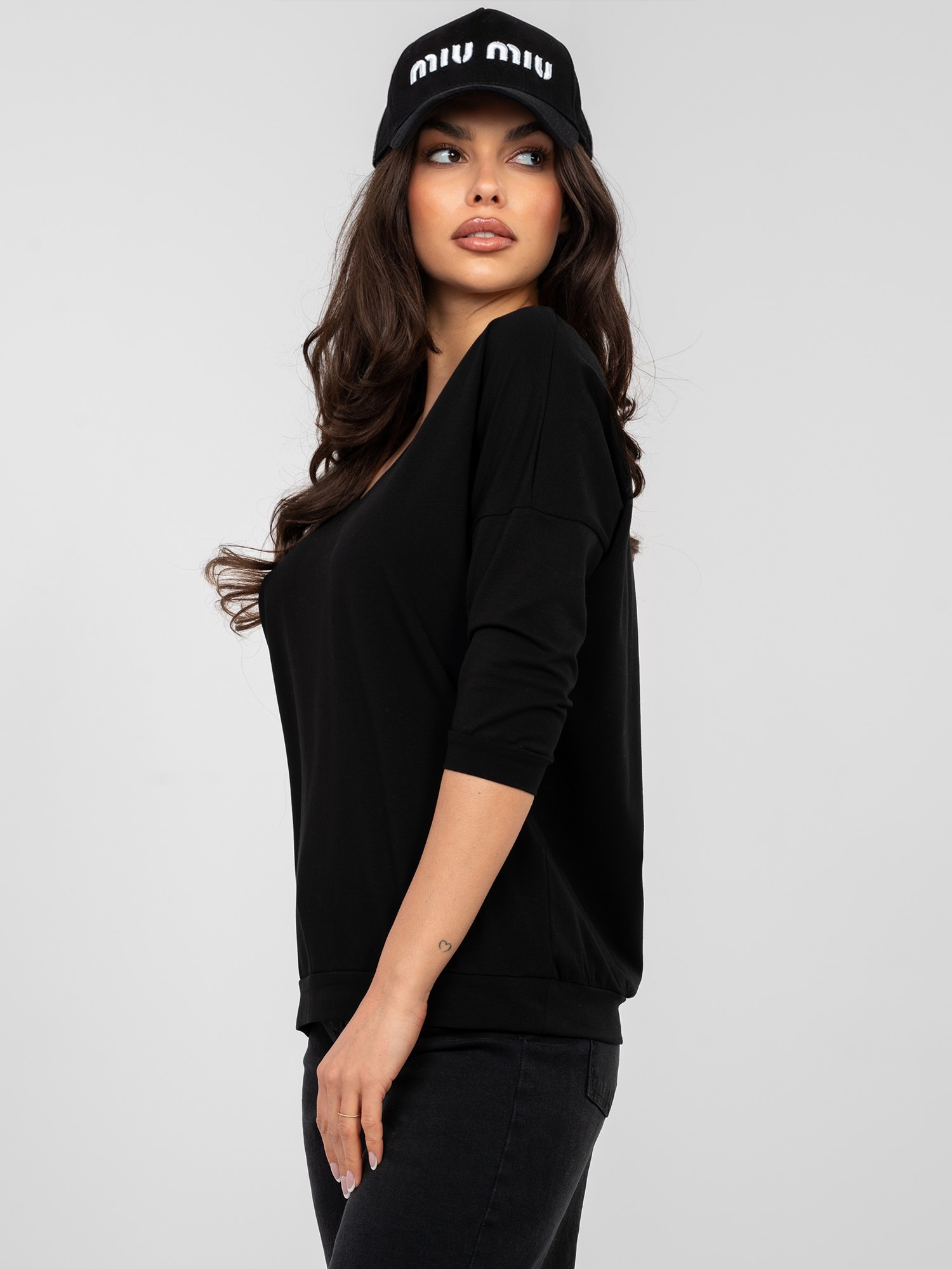 Czarna bluzka basic z krótkim rękawem RUE PARIS .