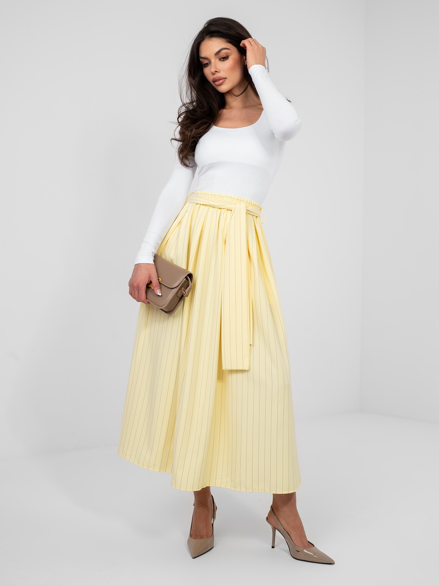 Modelka ma na sobie rozmiar S/M. Wymiary modelki: wzrost 173 cm, biust 85 cm, talia 62 cm, biodra 95 cm.
