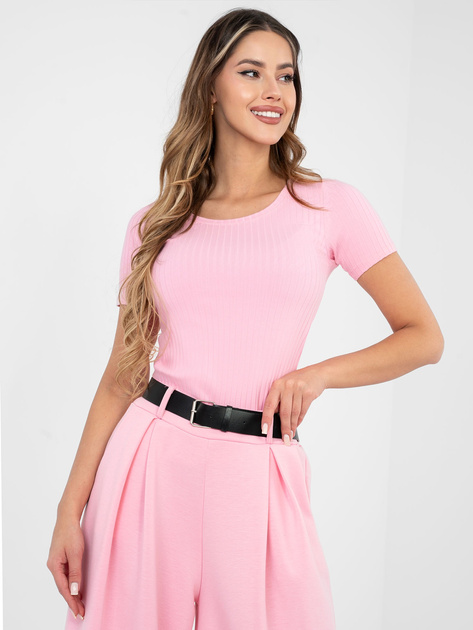 Jasnoróżowa bluzka basic z krótkim rękawem RUE PARIS .