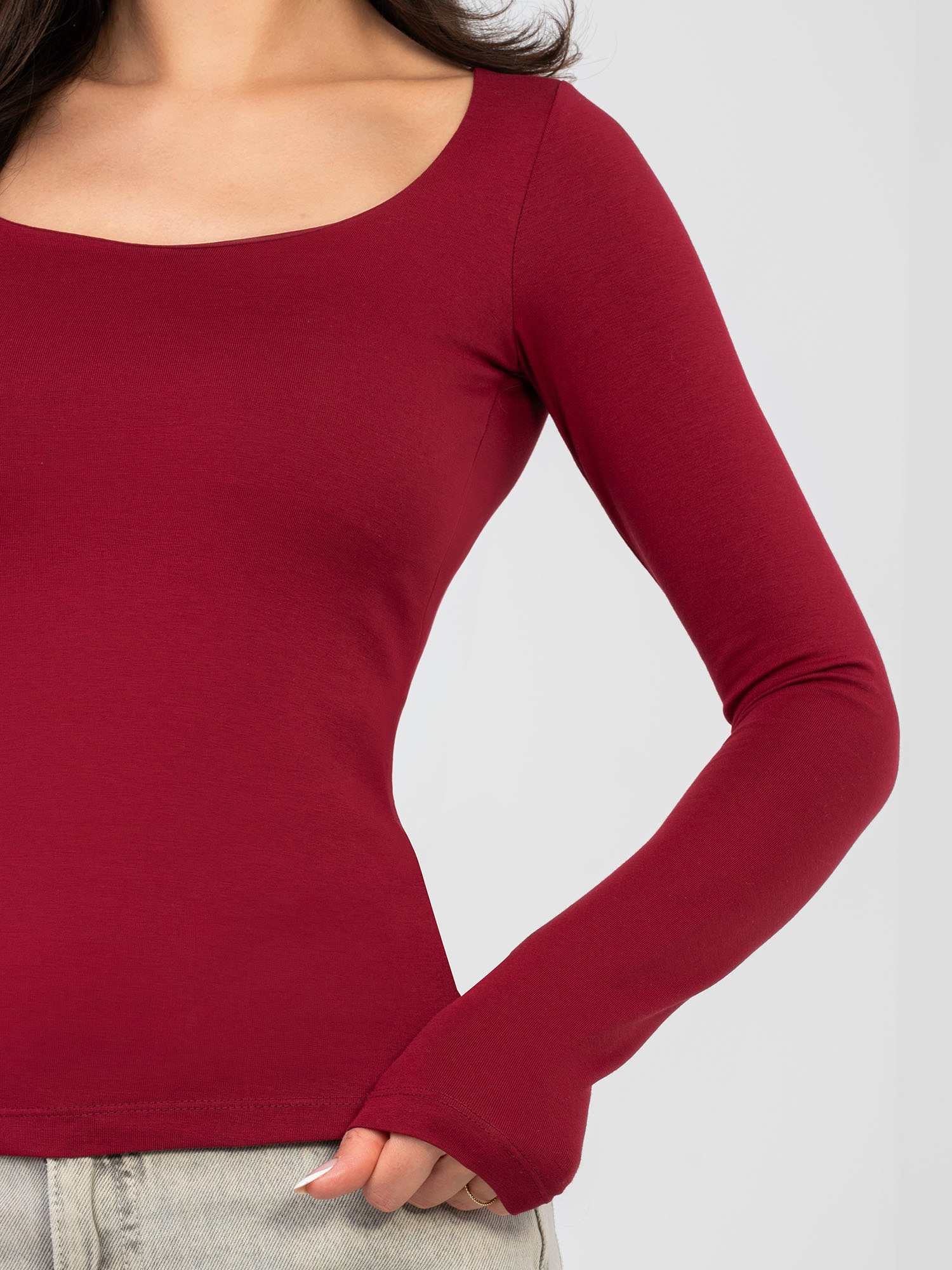 Bordowy longsleeve basic z bawełny RUE PARIS .