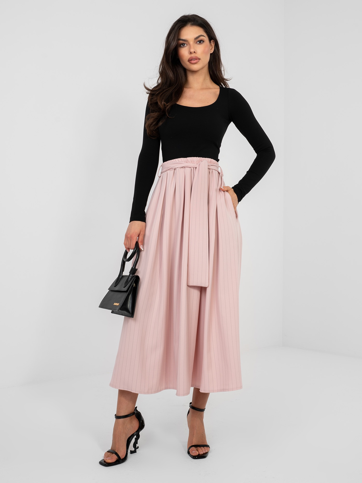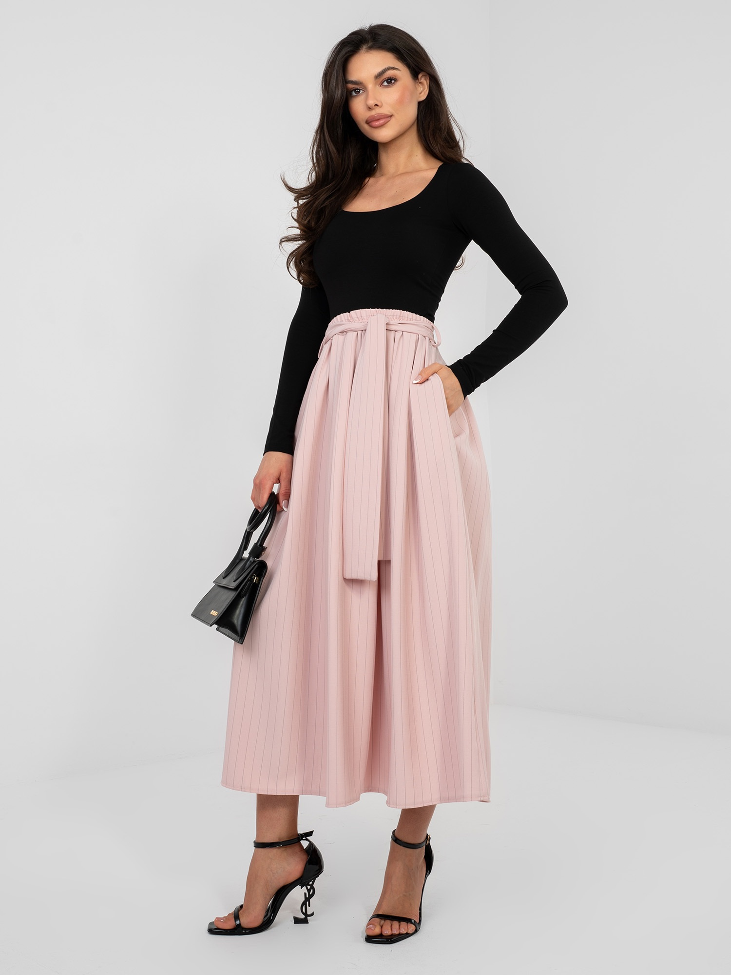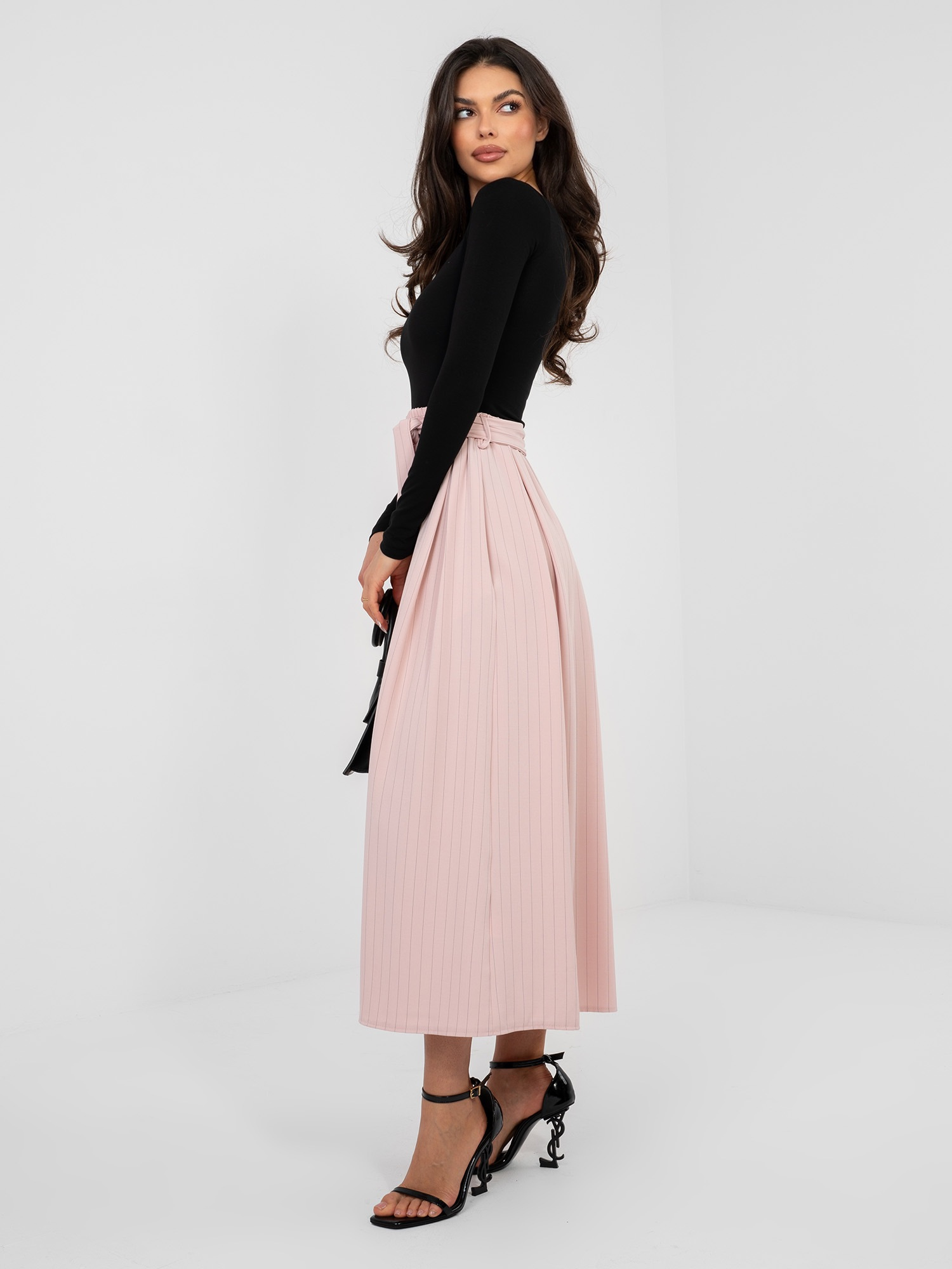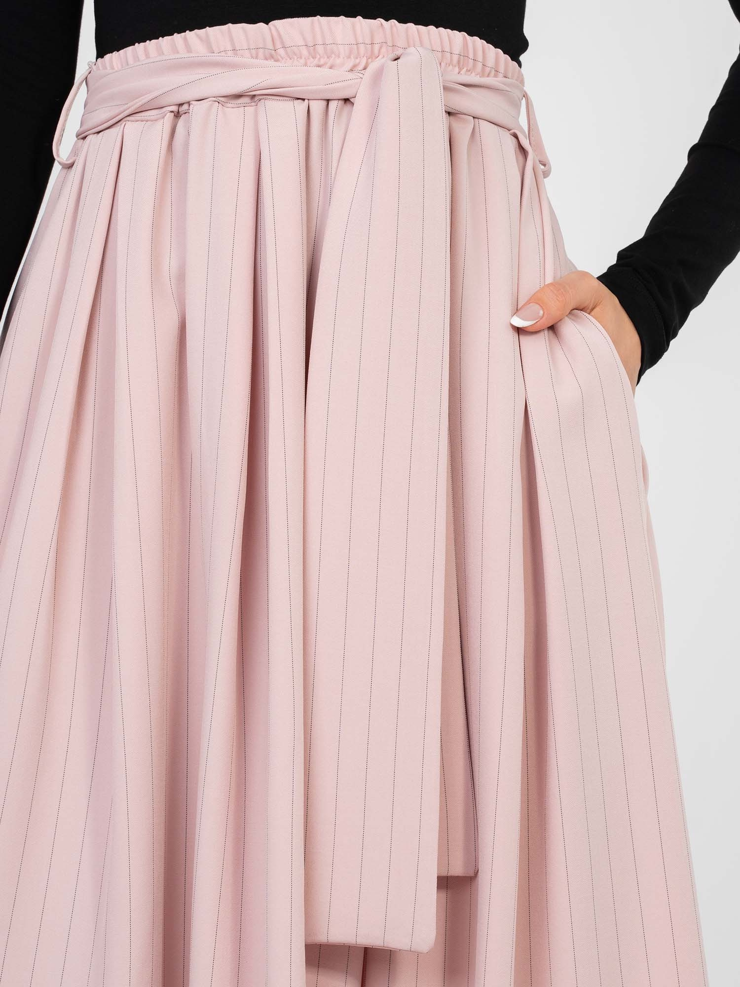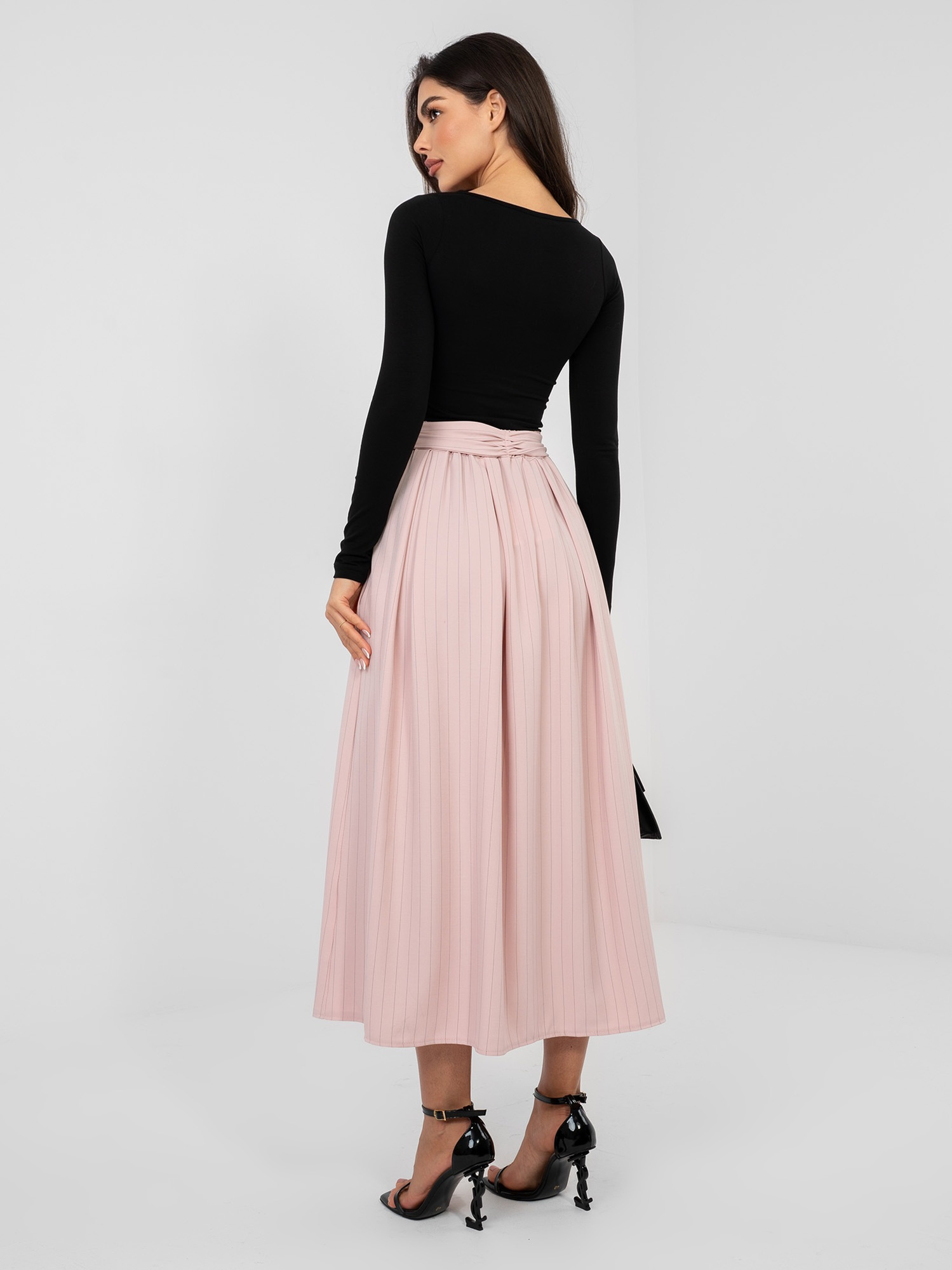 Pastelowa różowa rozkloszowana spódnica w paski .