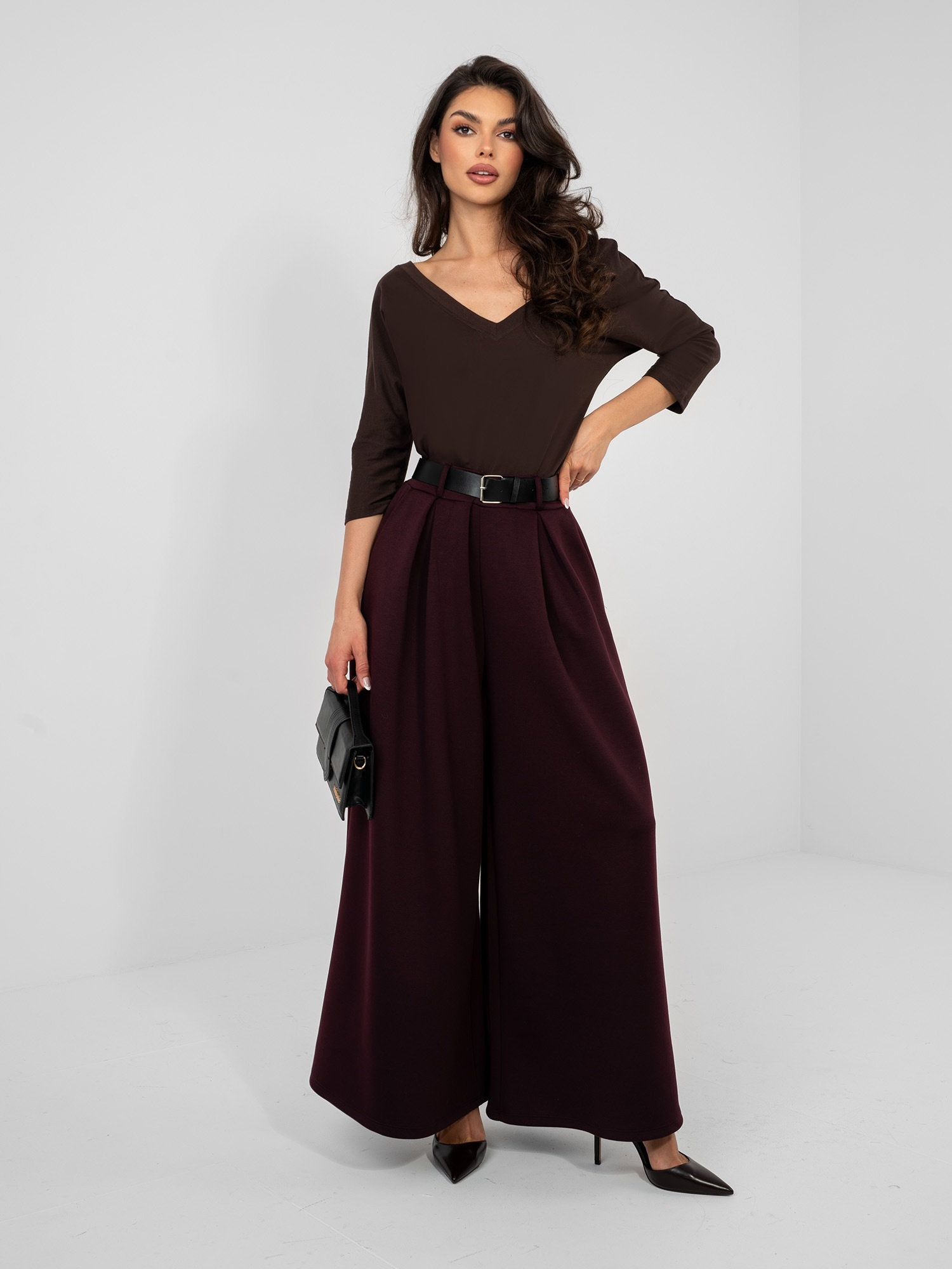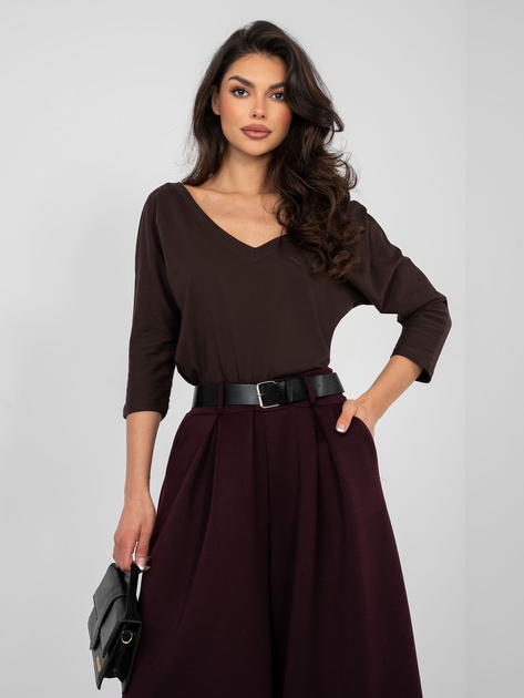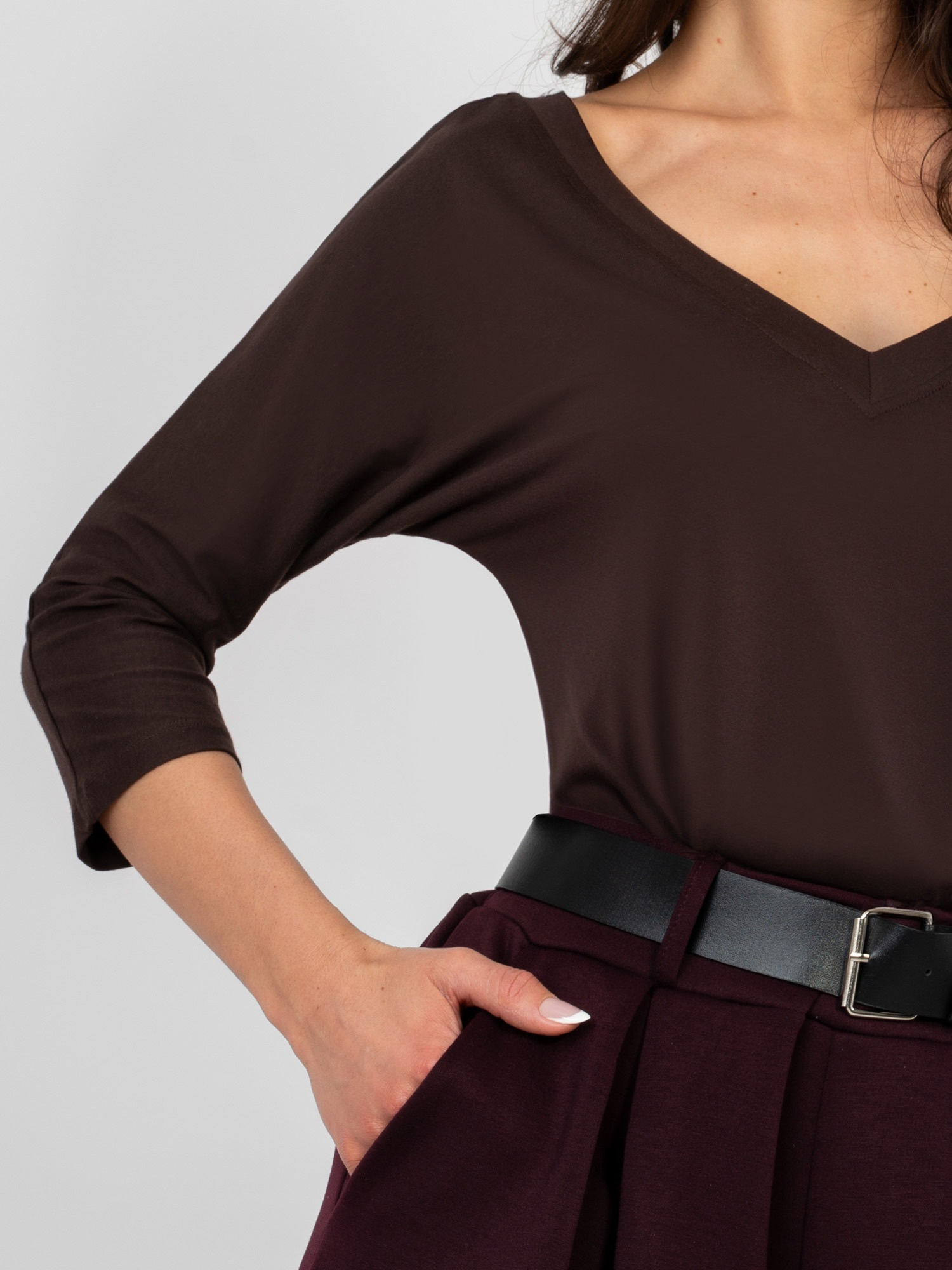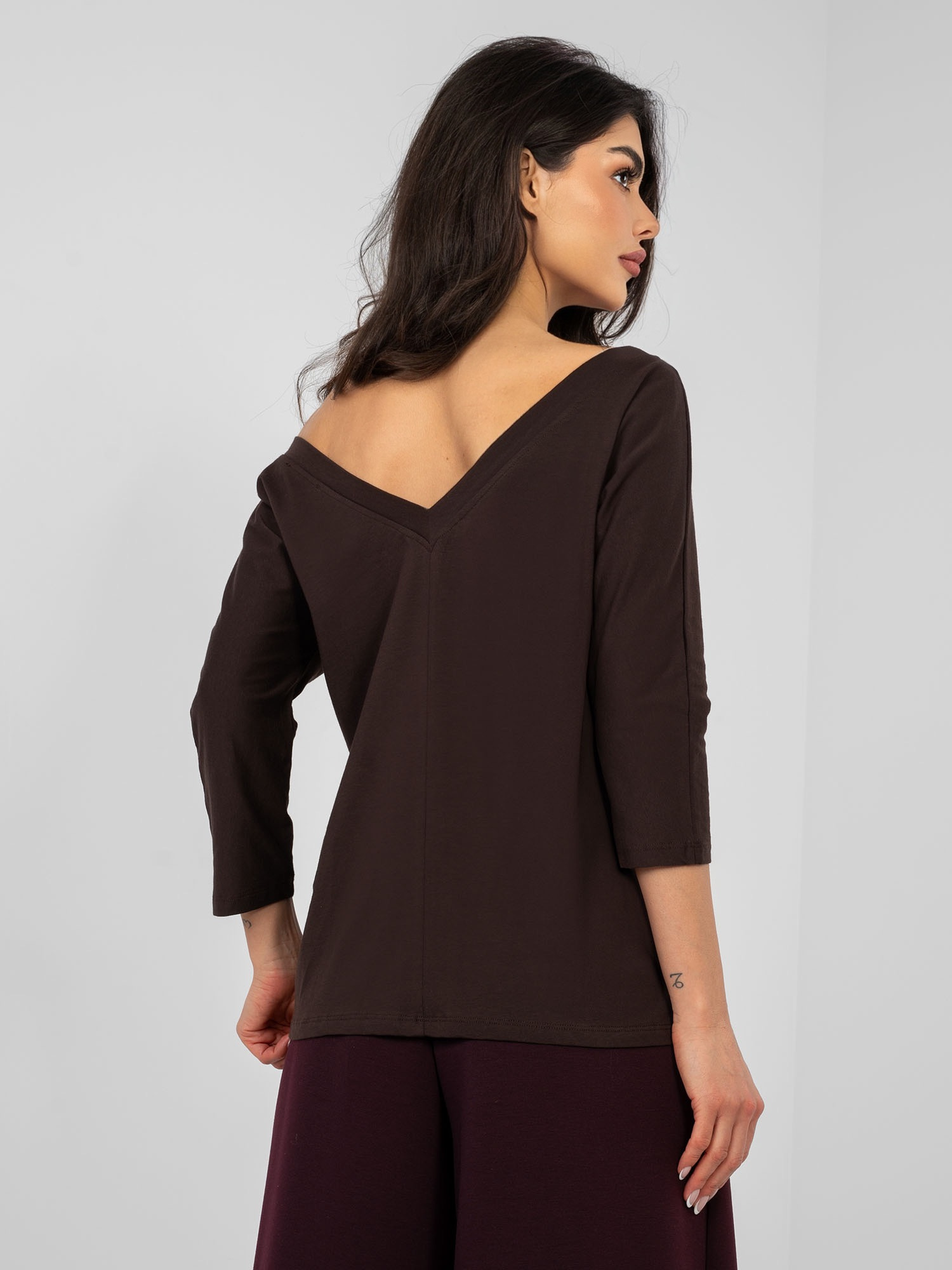 Czekoladowa bluzka basic z dekoltem na plecach RUE PARIS .