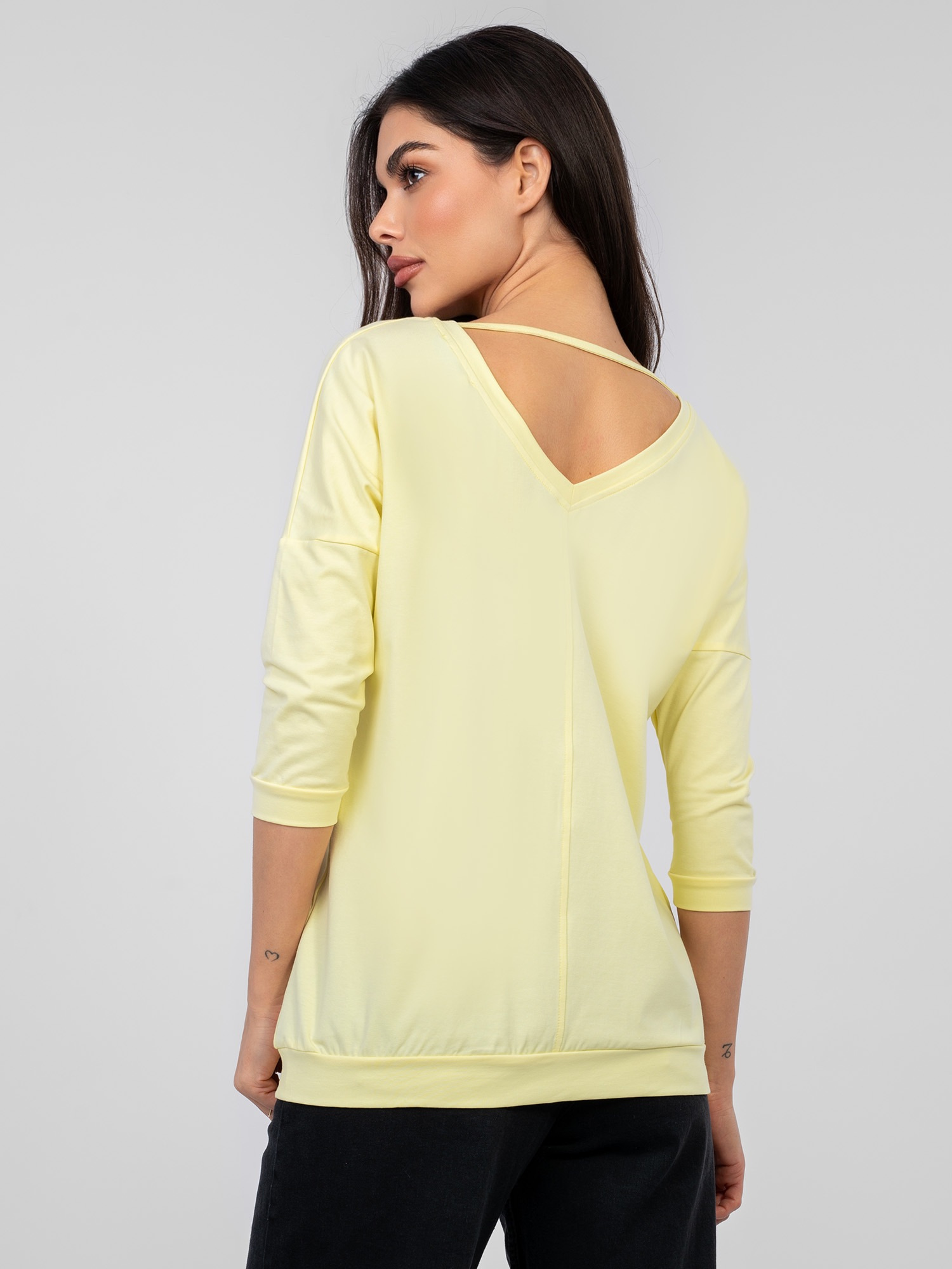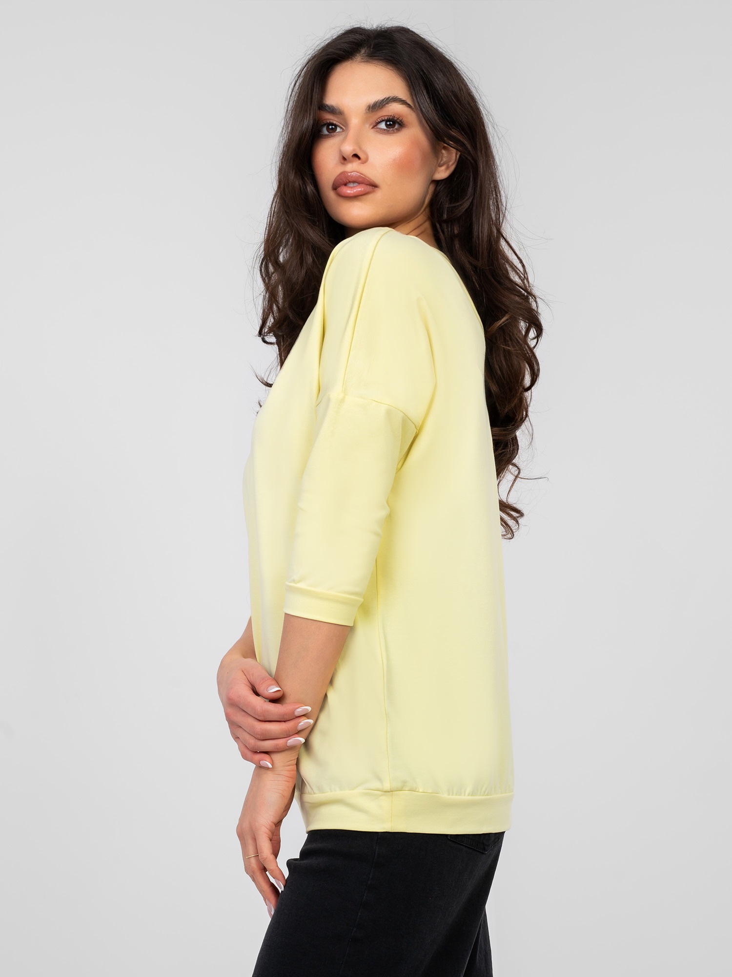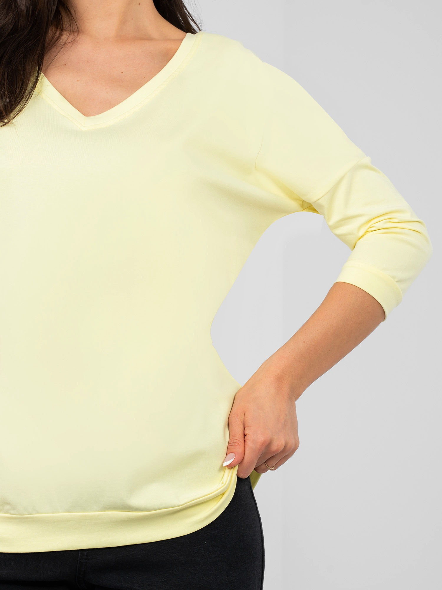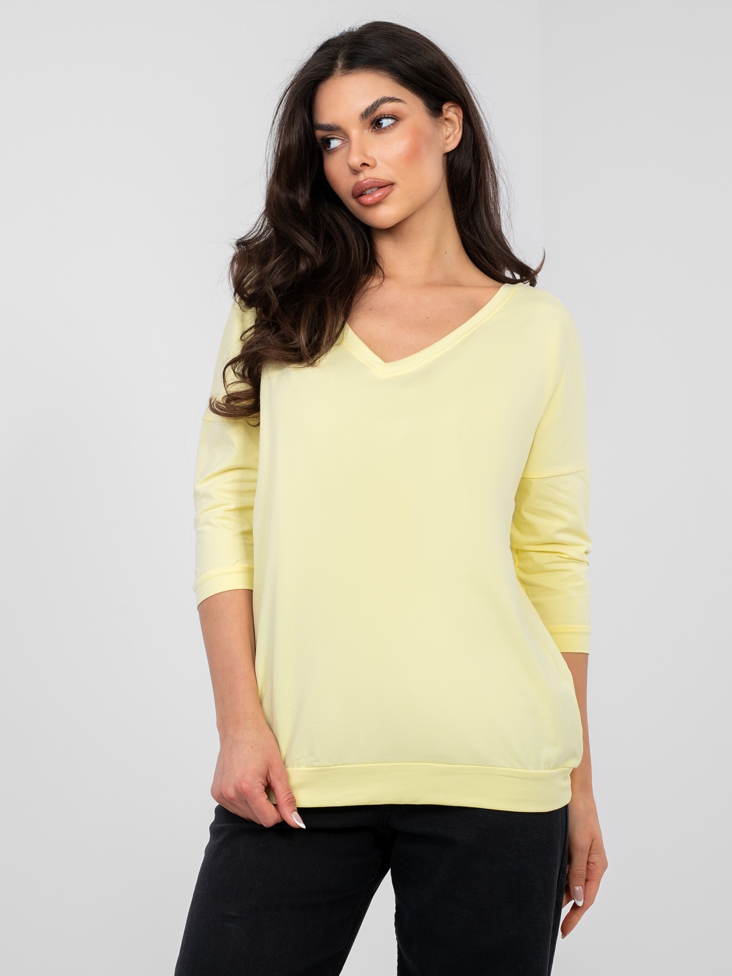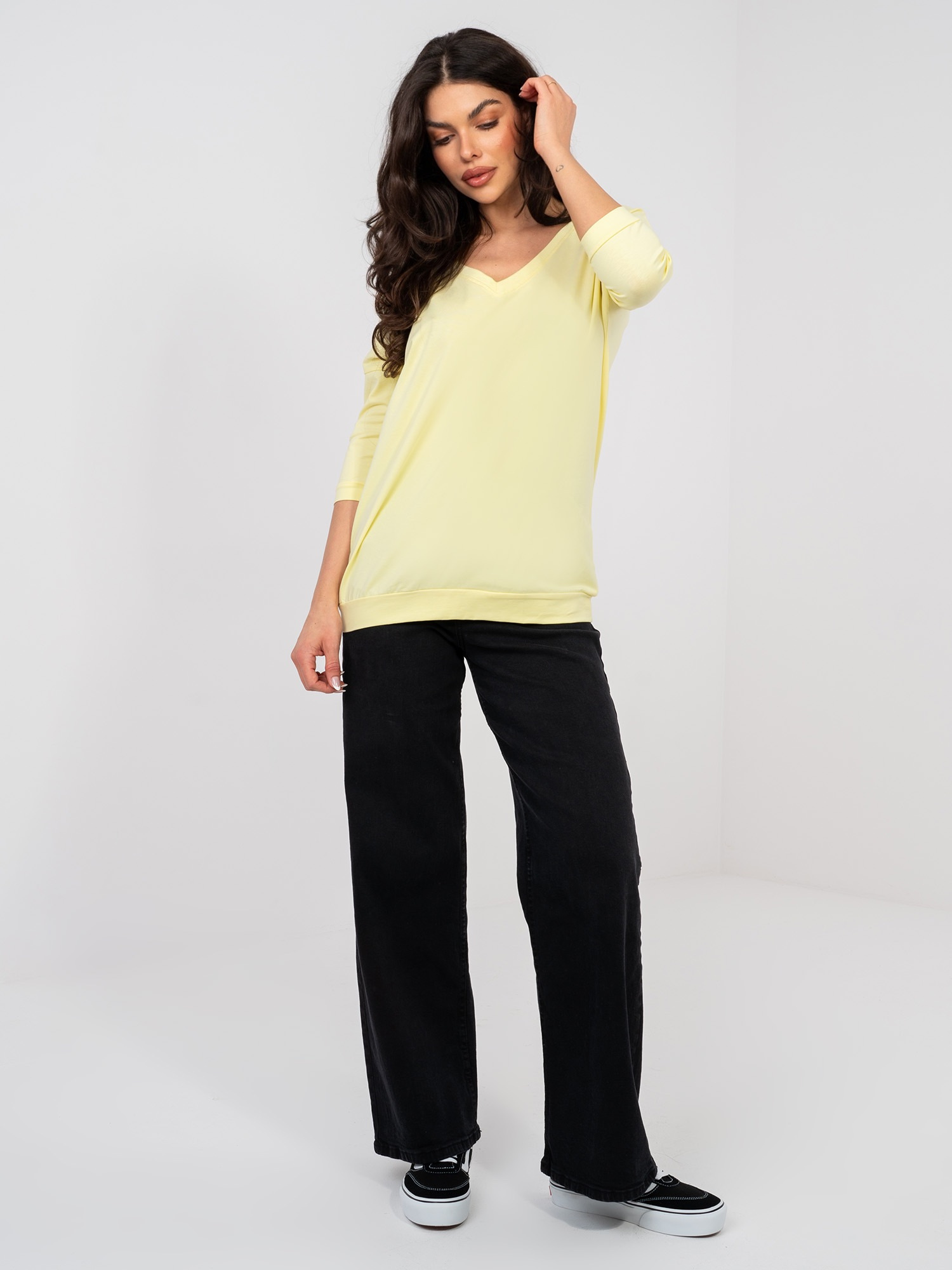 Pastelowa żółta bluzka basic z dekoltem V RUE PARIS .