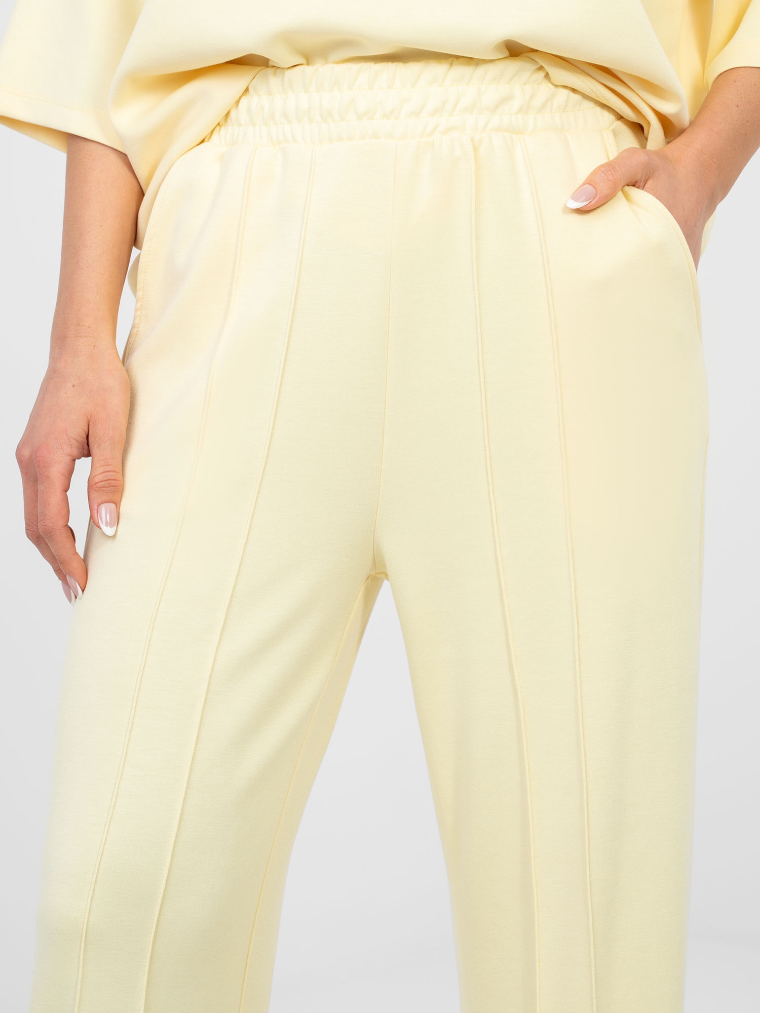Opinie o Pastelowe żółte spodnie wide leg z wysokim stanem RUE PARIS
