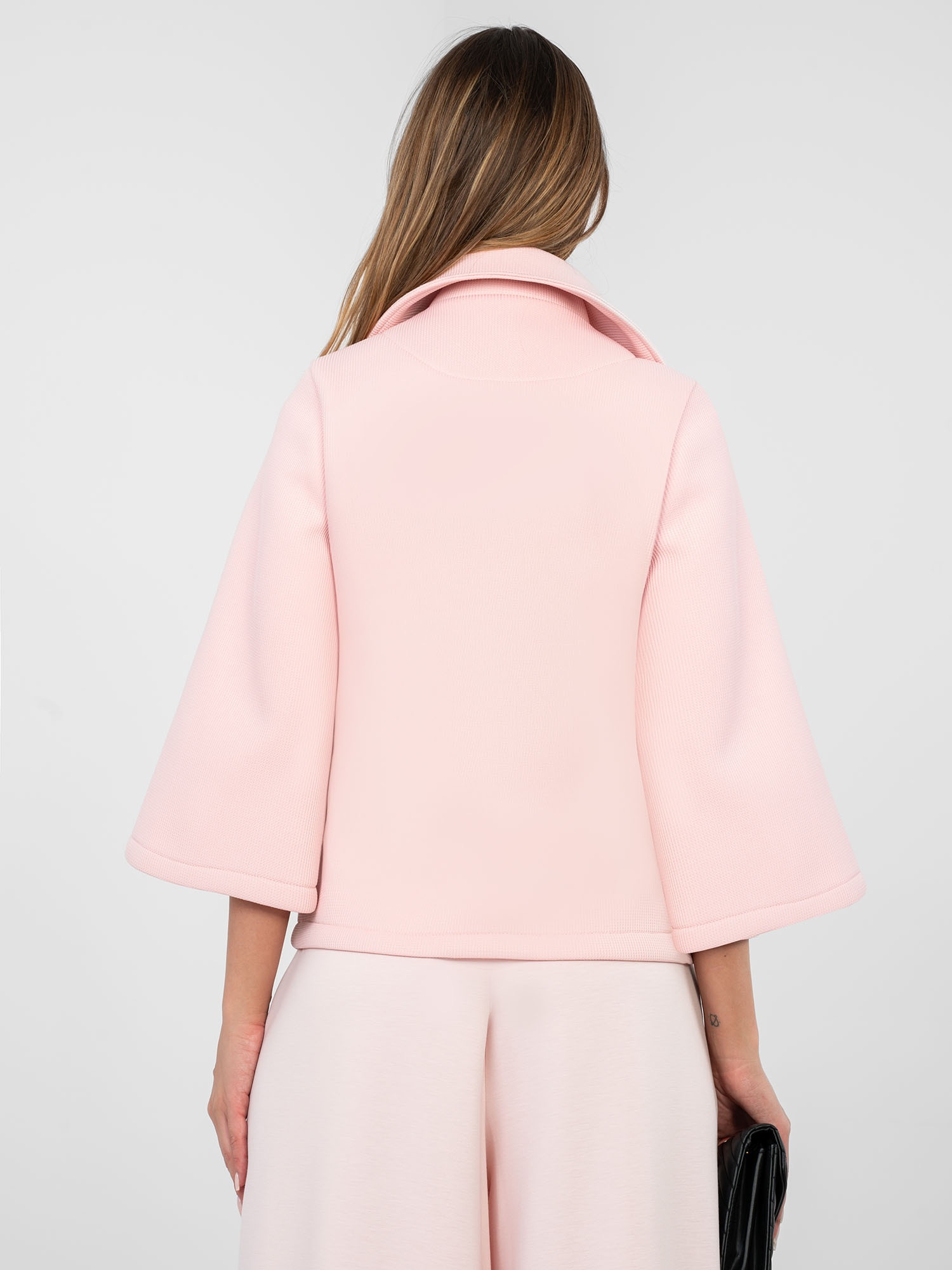 Pastelowy różowy przejściowy płaszcz z piankowego materiału .