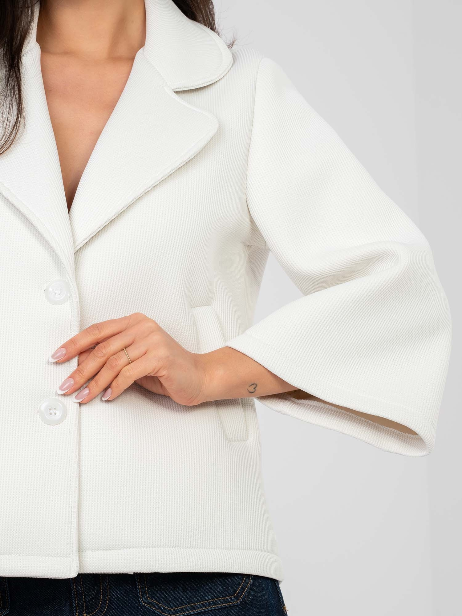 Ecru piankowy płaszcz z kieszeniami .