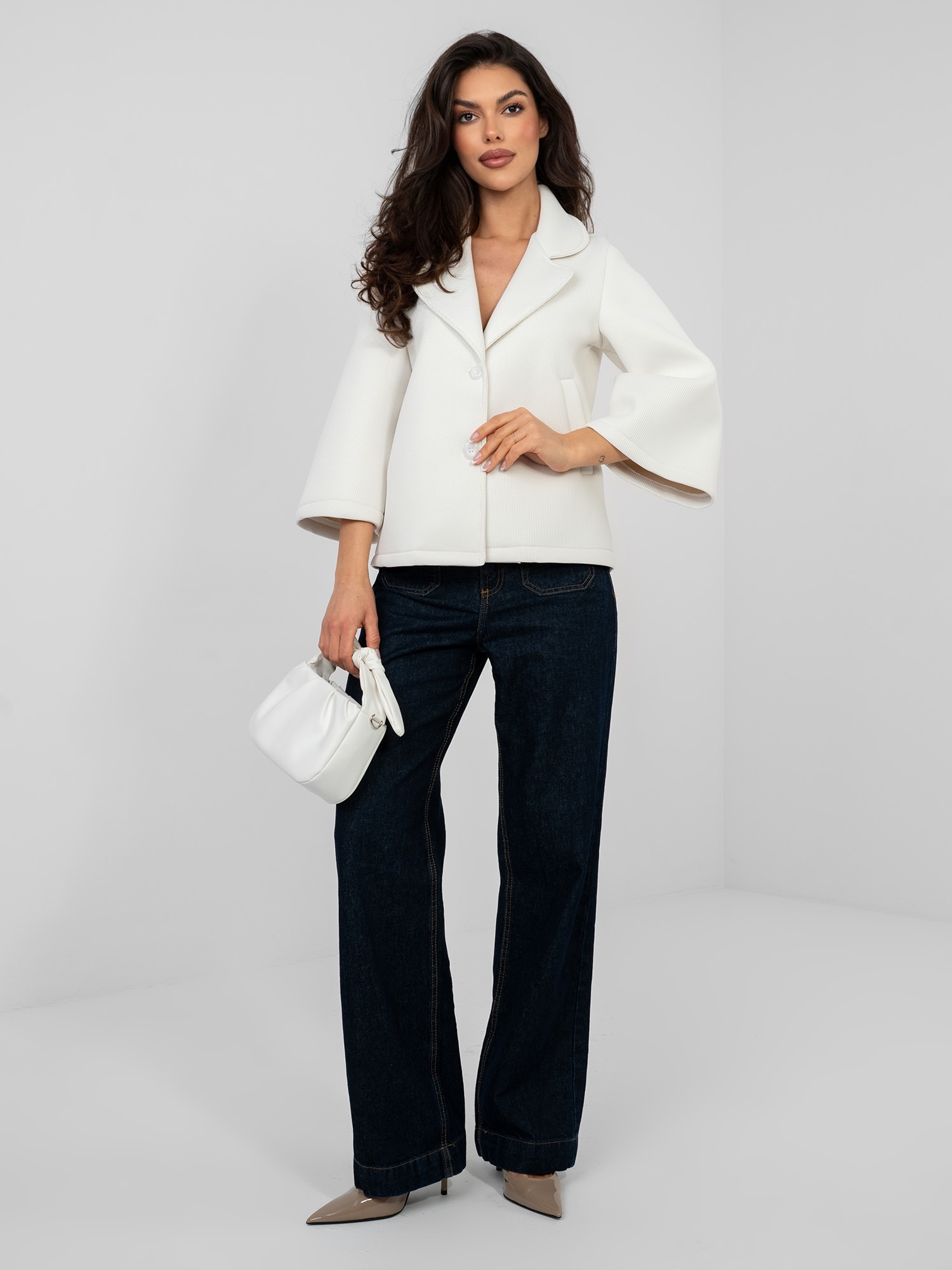 Ecru piankowy płaszcz z kieszeniami