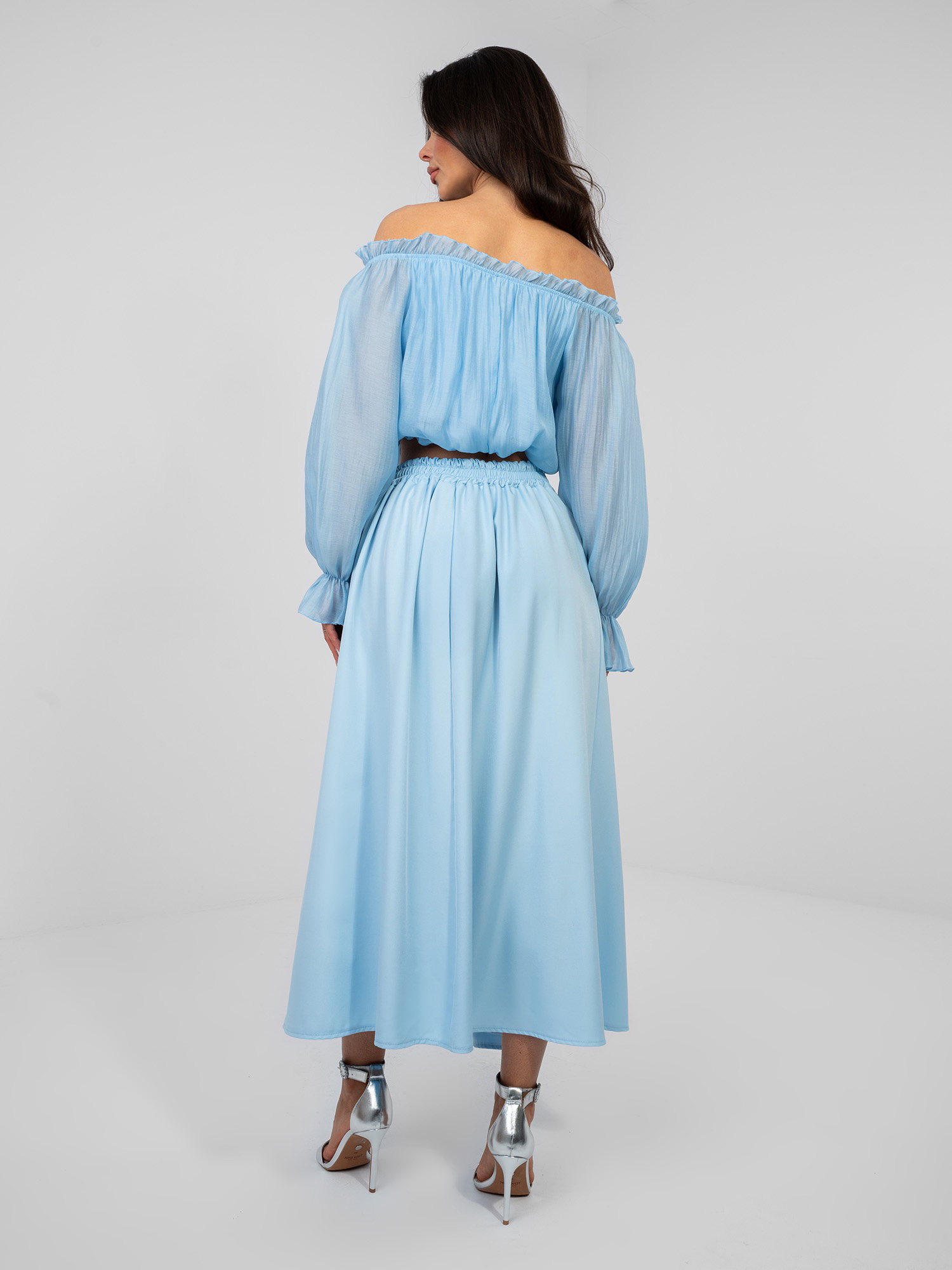 Pastelowa niebieska elegancka spódnica midi