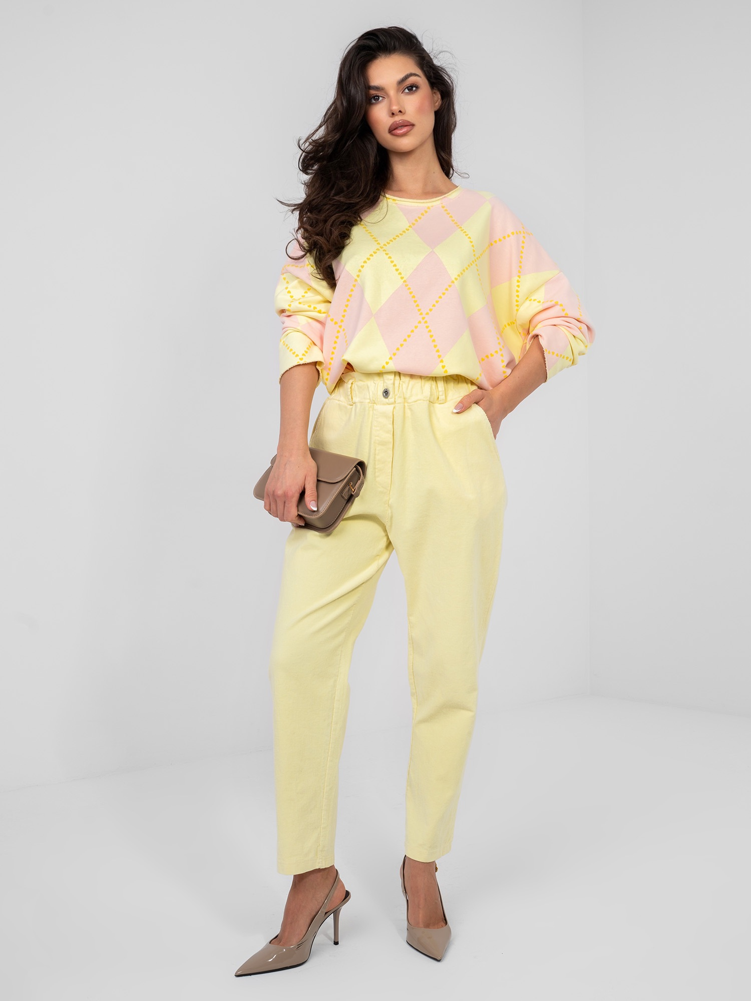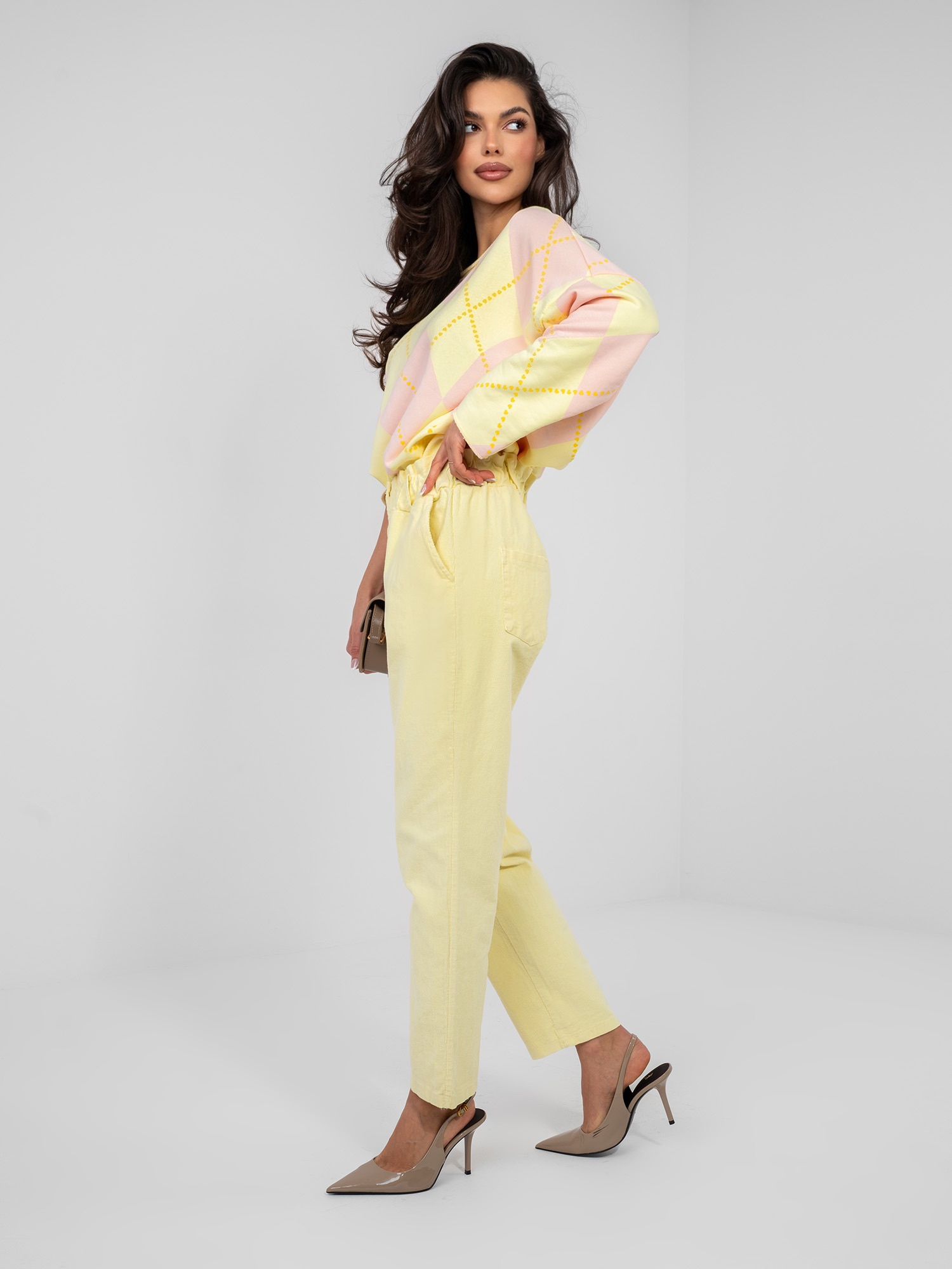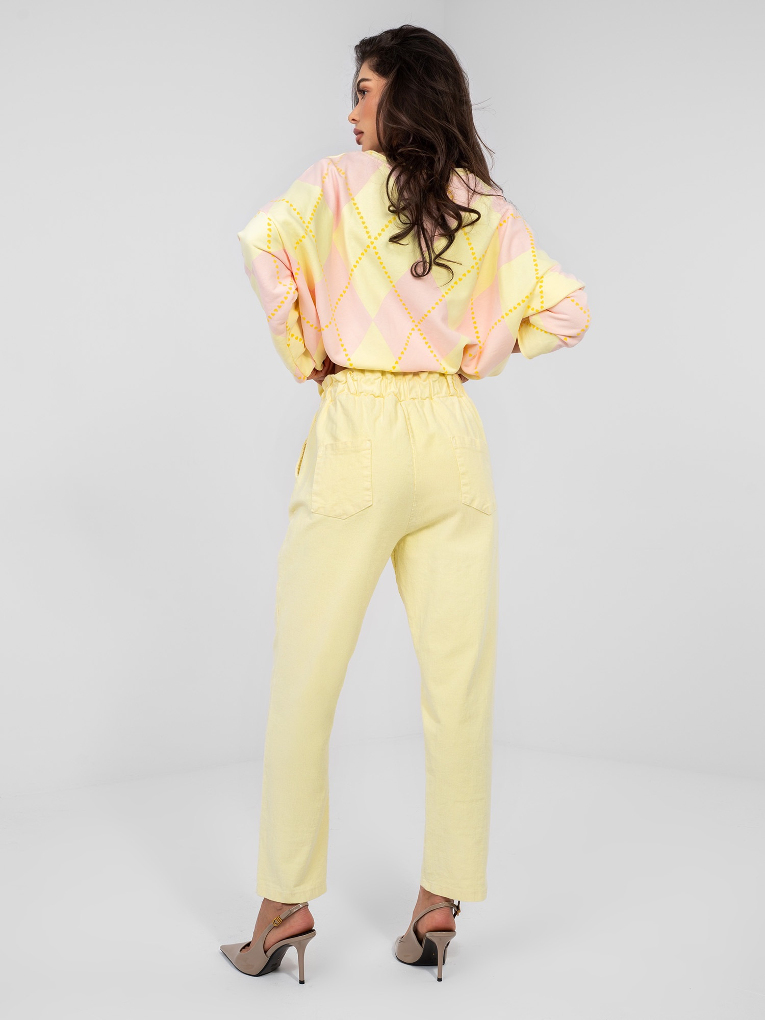 Pastelowe żółte sztruksowe spodnie z kieszeniami