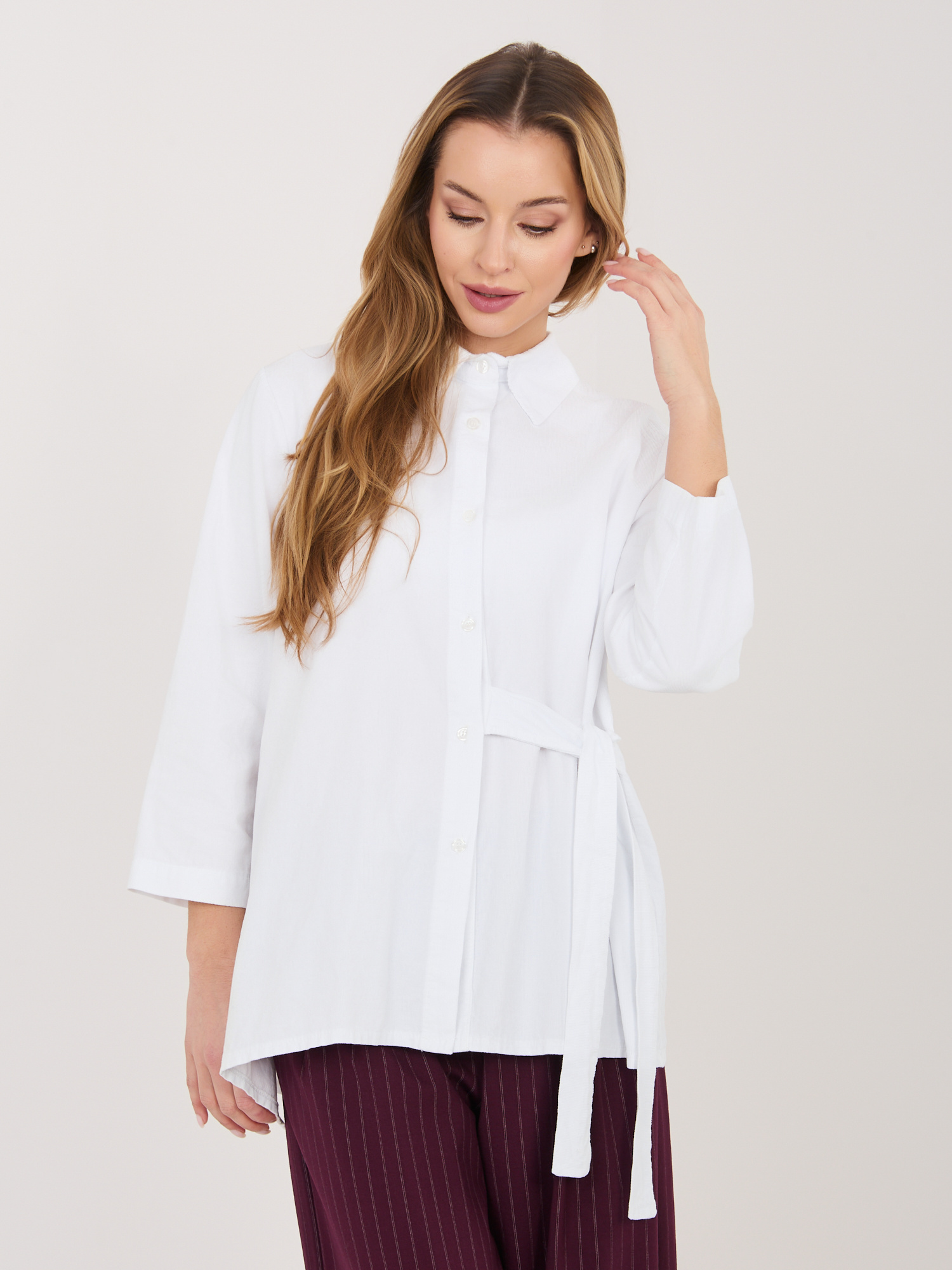 Biała sztruksowa koszula z kołnierzykiem RUE PARIS .
