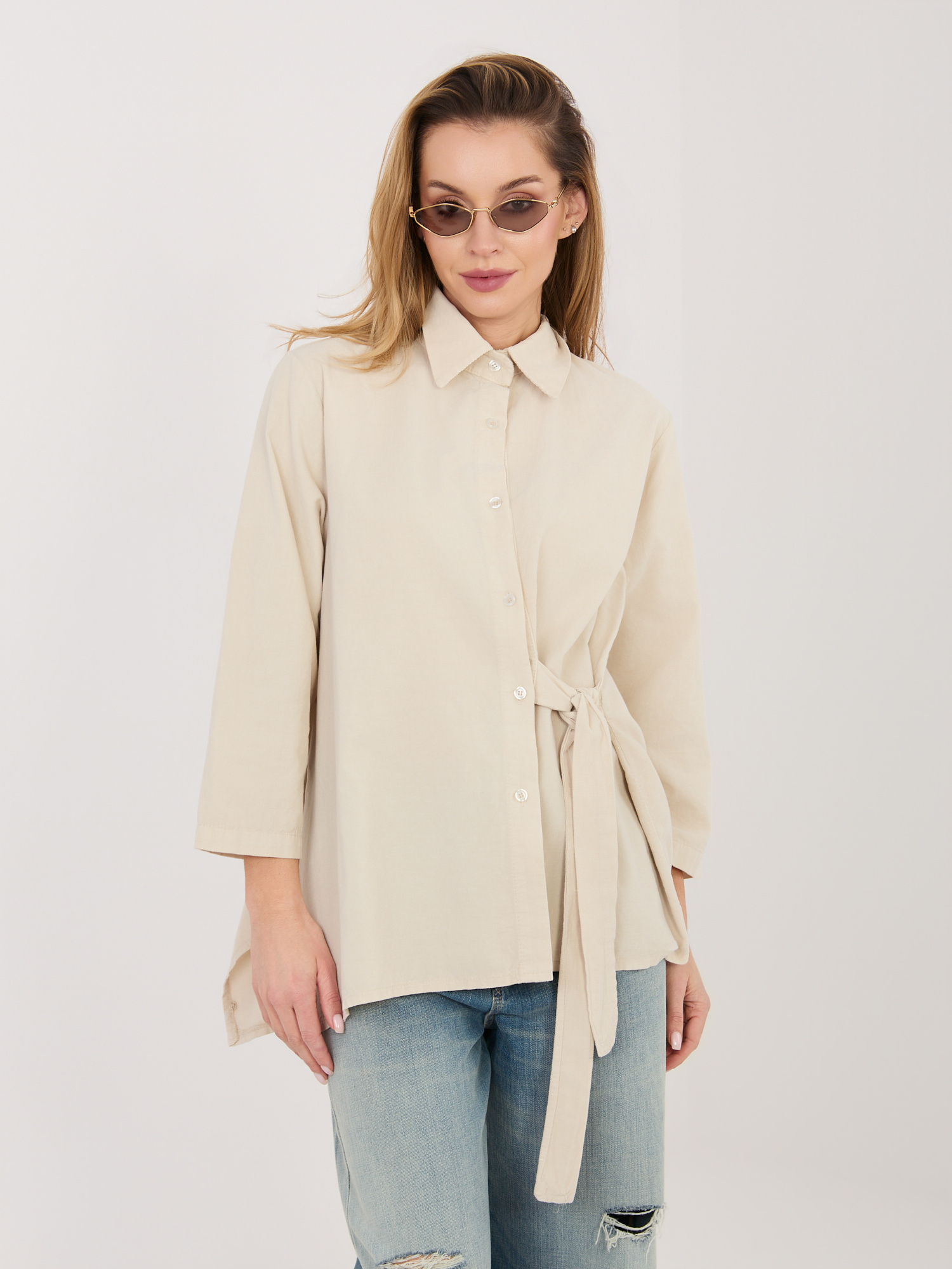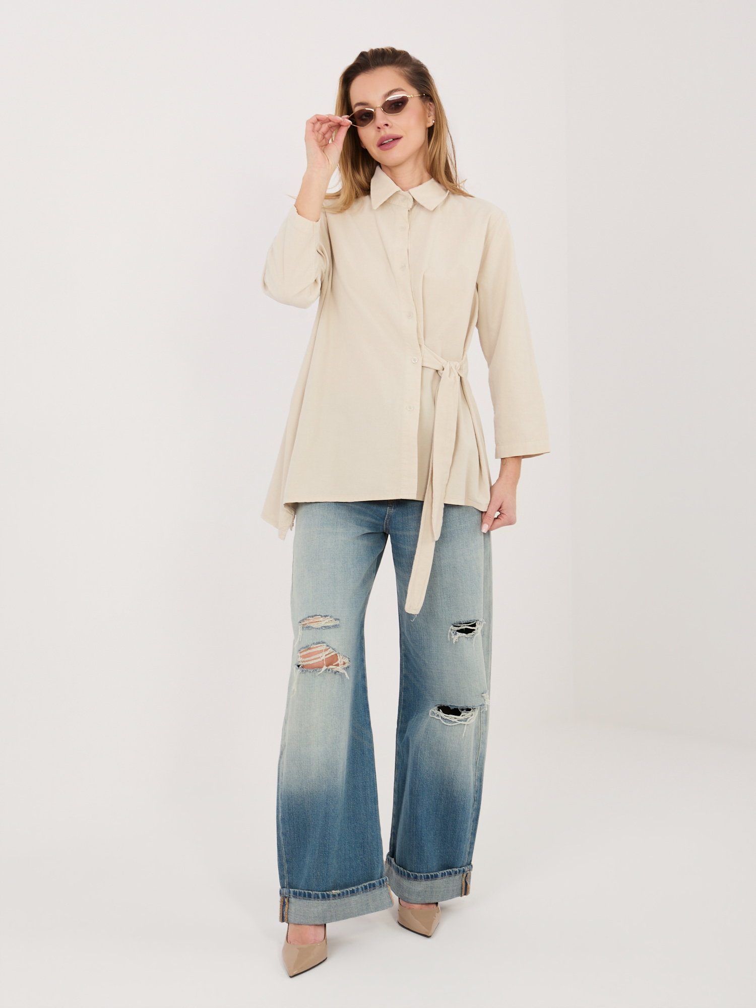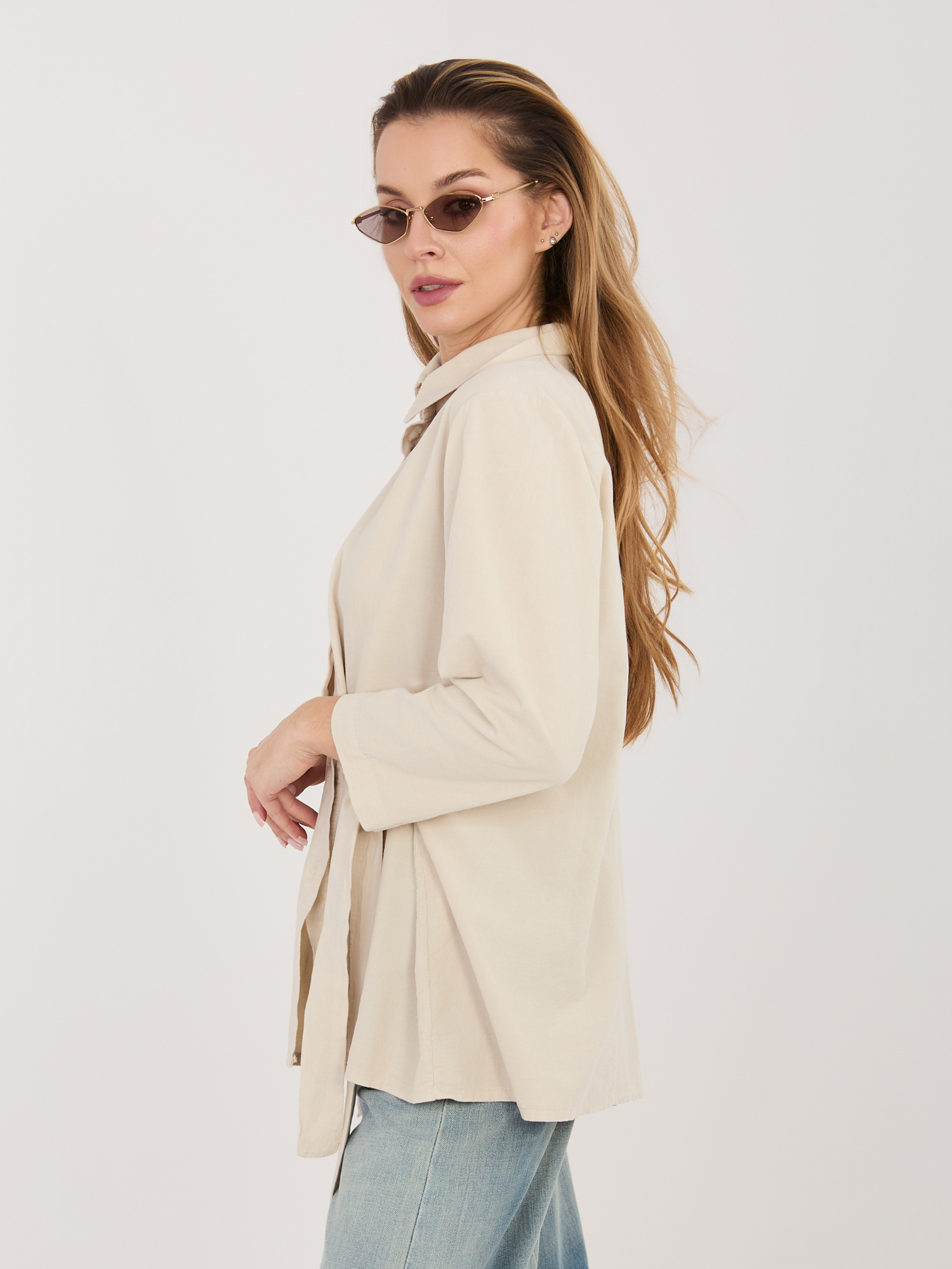 Beżowa asymetryczna koszula z sztruksu RUE PARIS .