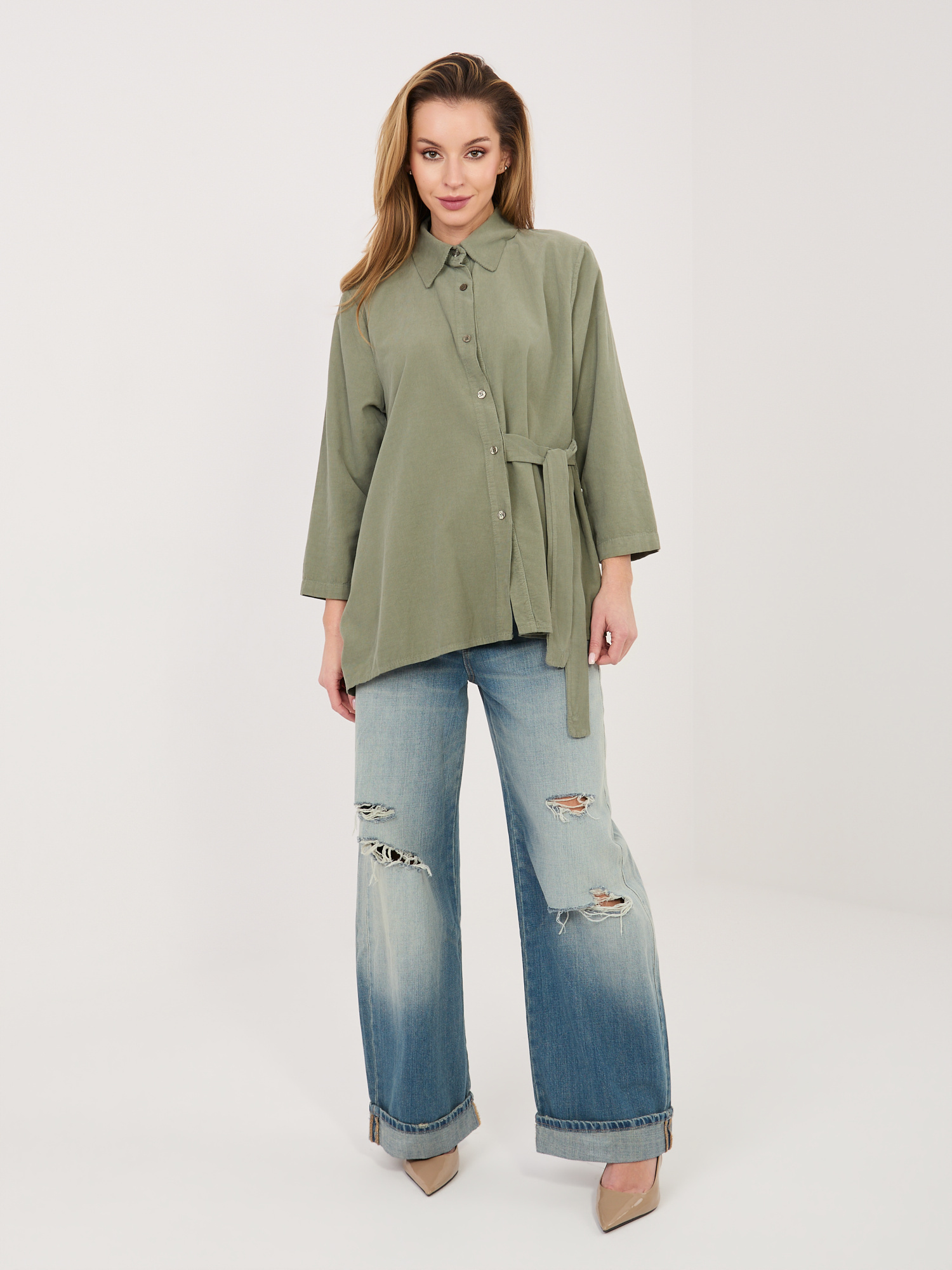 Khaki asymetryczna koszula z sztruksu RUE PARIS .