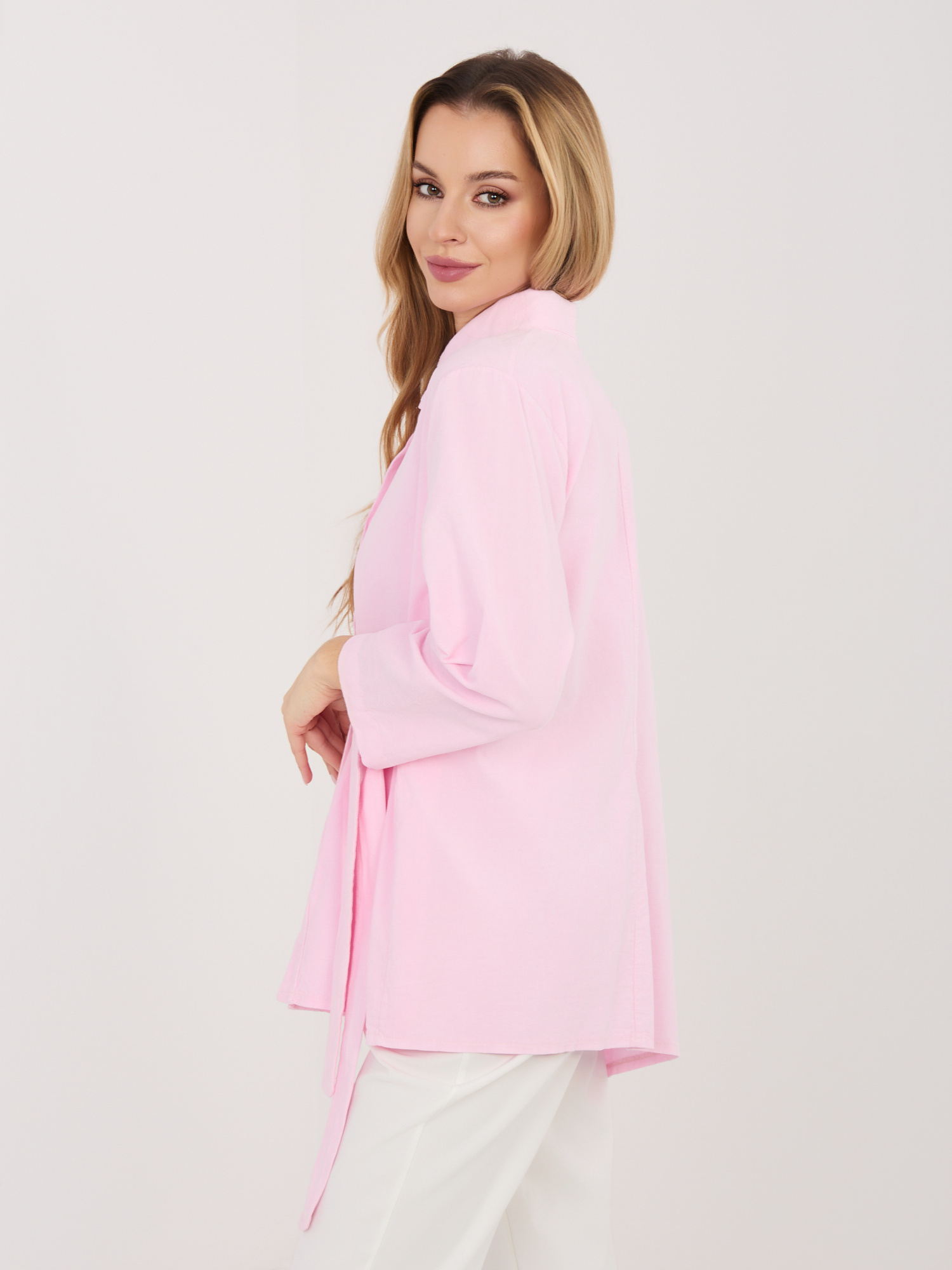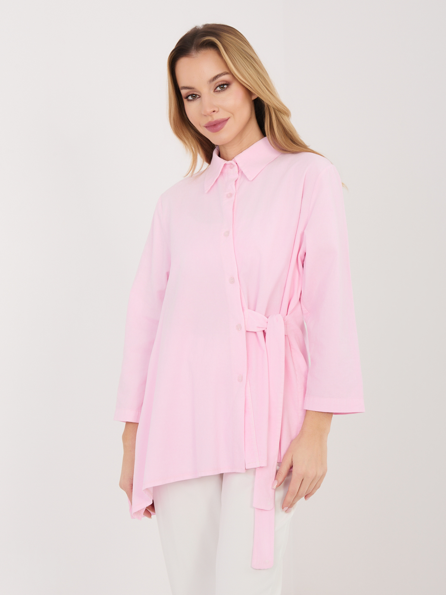 Jasnoróżowa rozpinana koszula z sztruksu RUE PARIS .