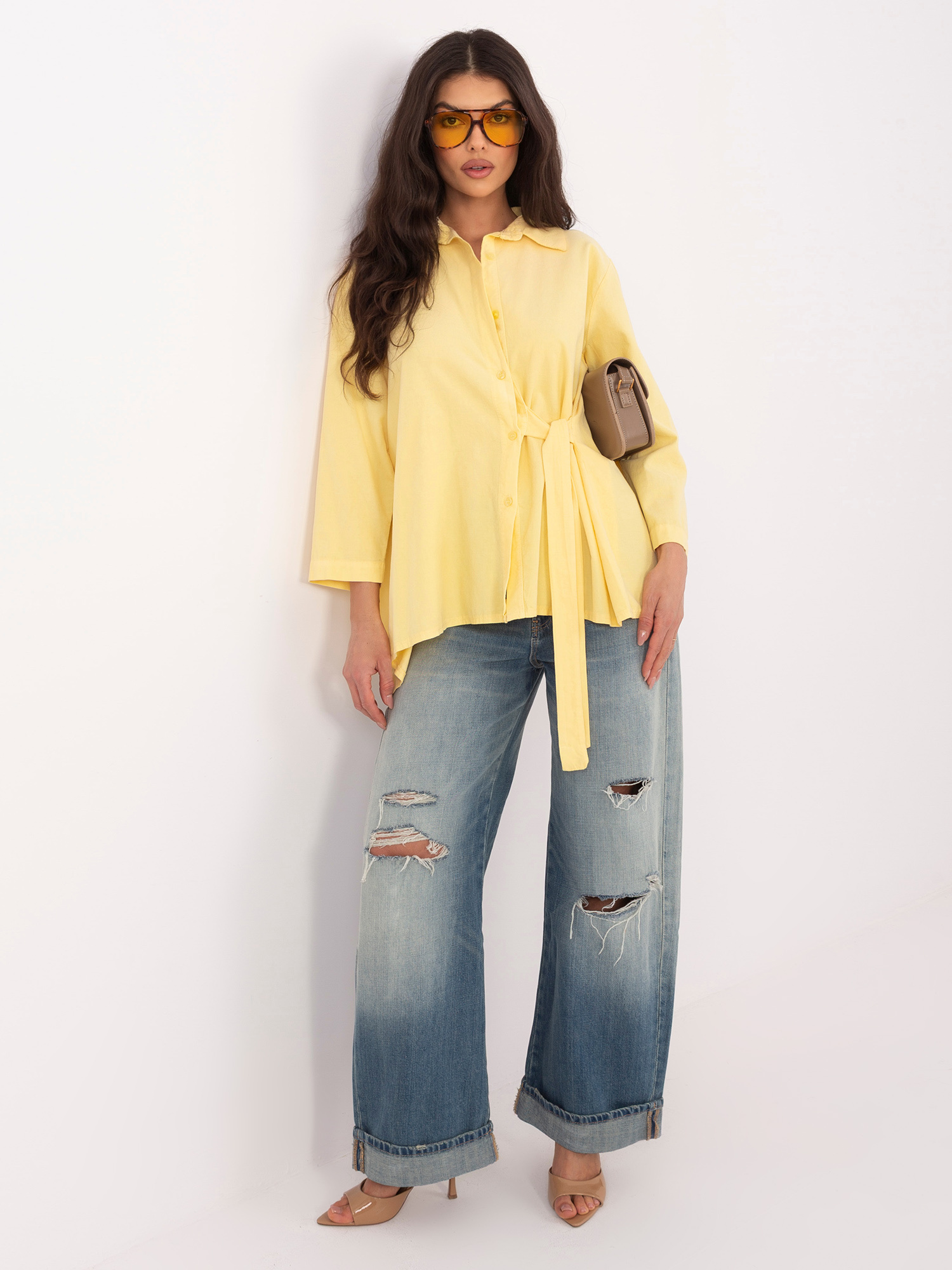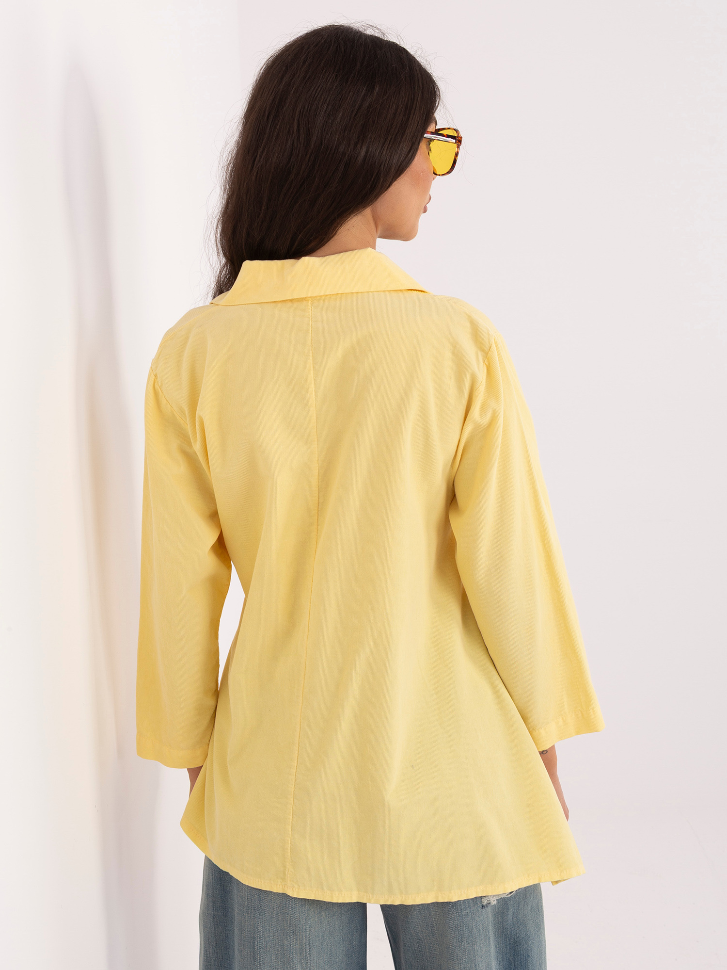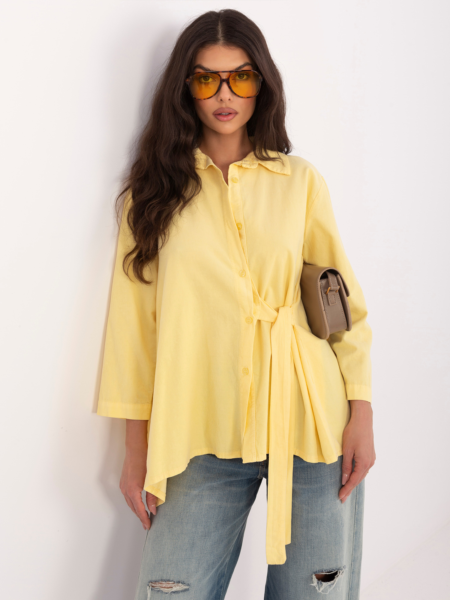 Jasnożółta asymetryczna koszula z sztruksu RUE PARIS .