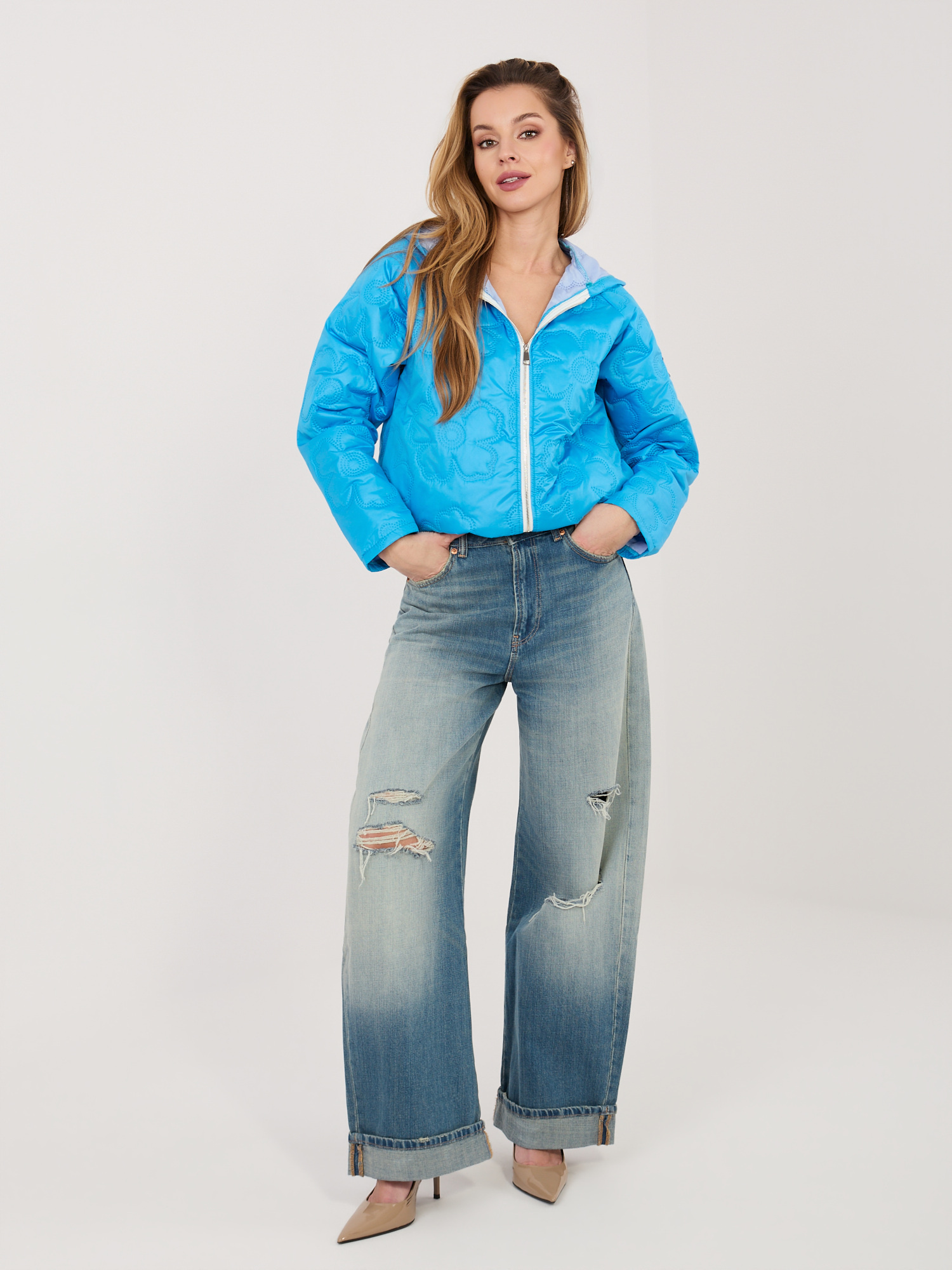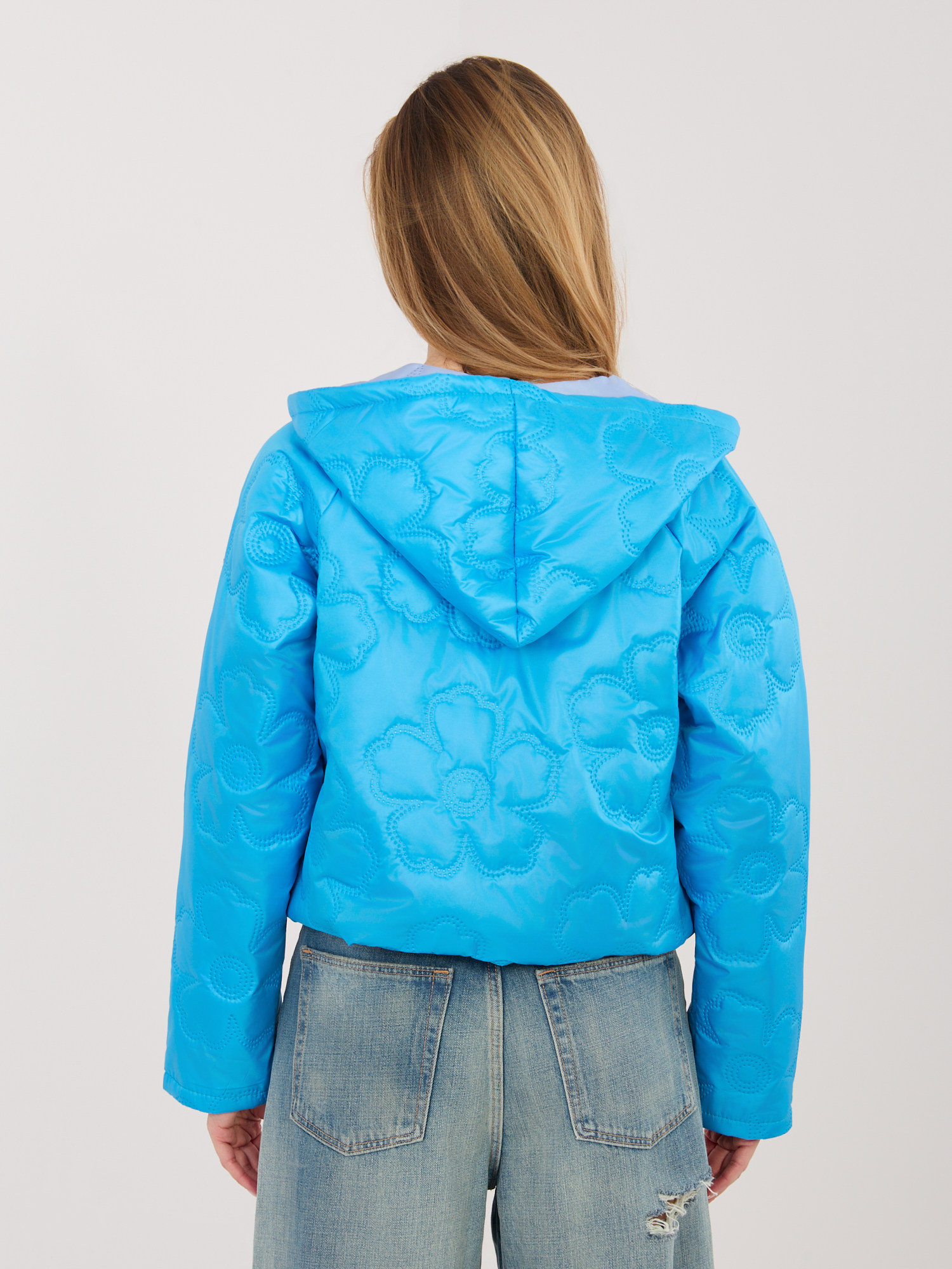 Niebieska kurtka z kwiatowym pikowaniem RUE PARIS .