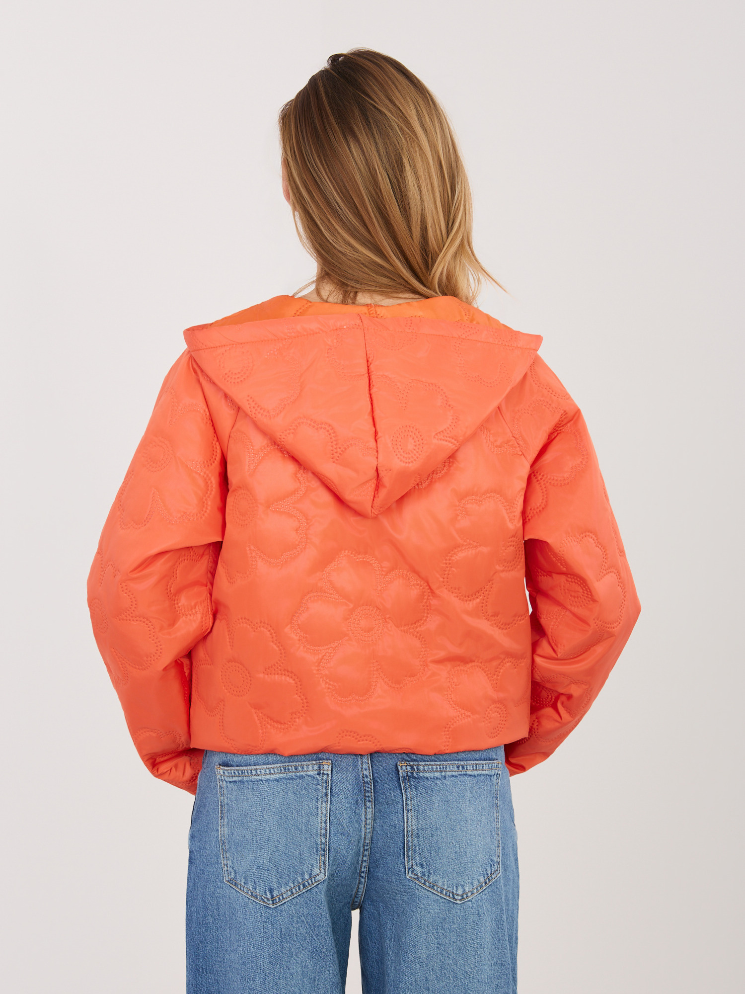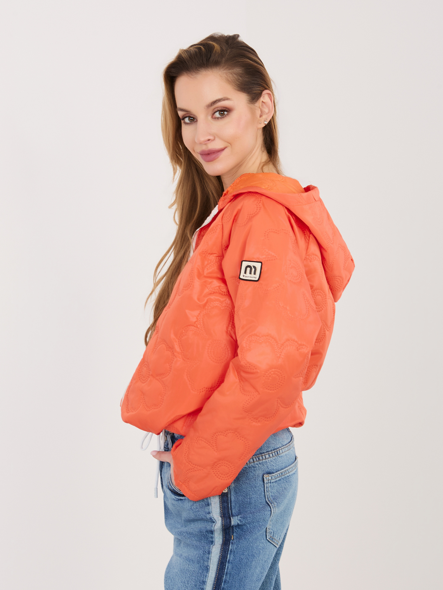 Pomarańczowa pikowana kurtka z kapturem RUE PARIS .