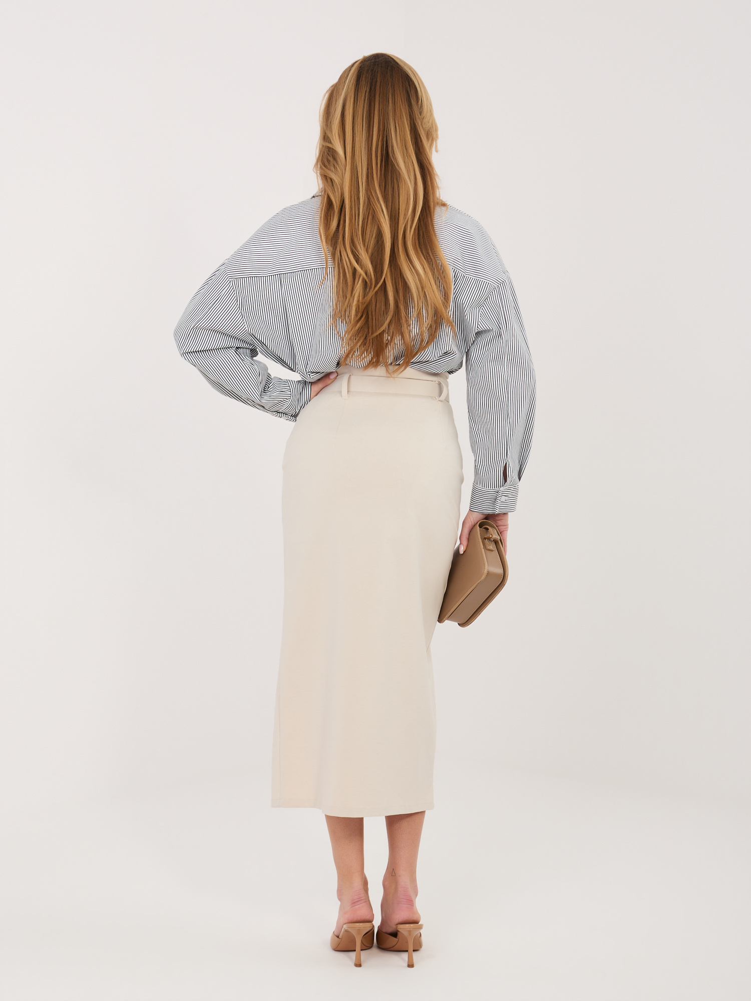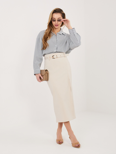 Jasnobeżowa elegancka spódnica z rozcięciem RUE PARIS .