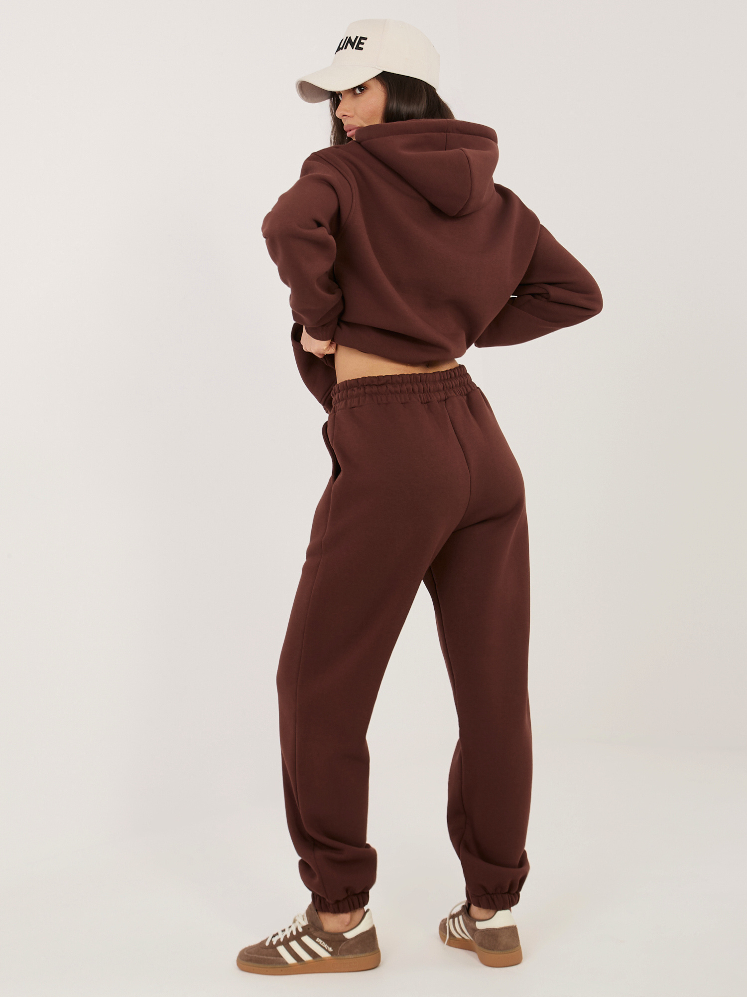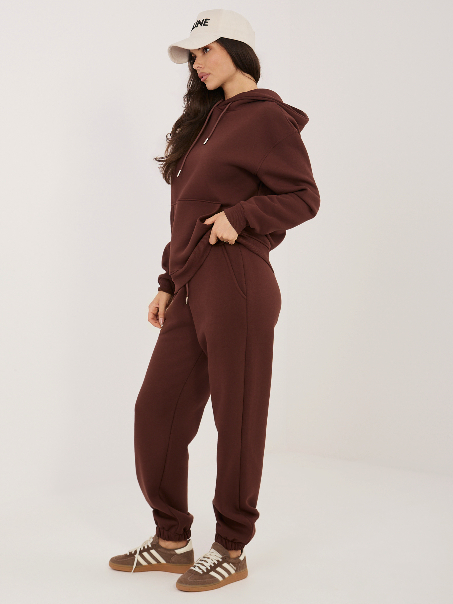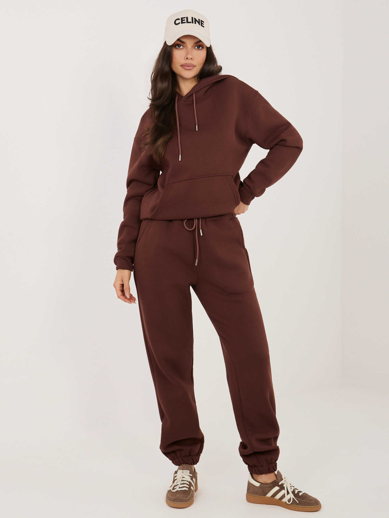 Czekoladowy dwuczęściowy komplet z bluzą z kapturem .