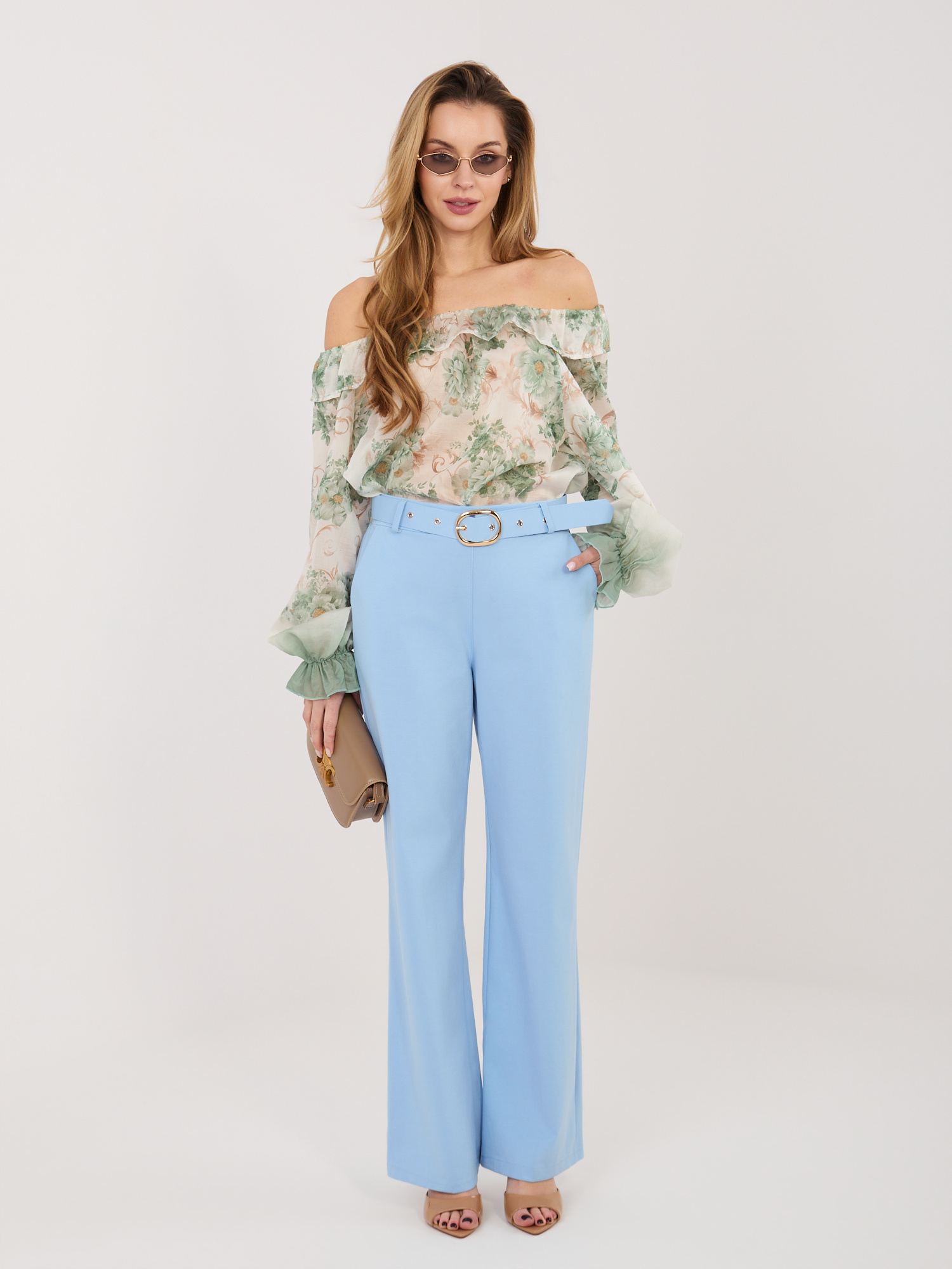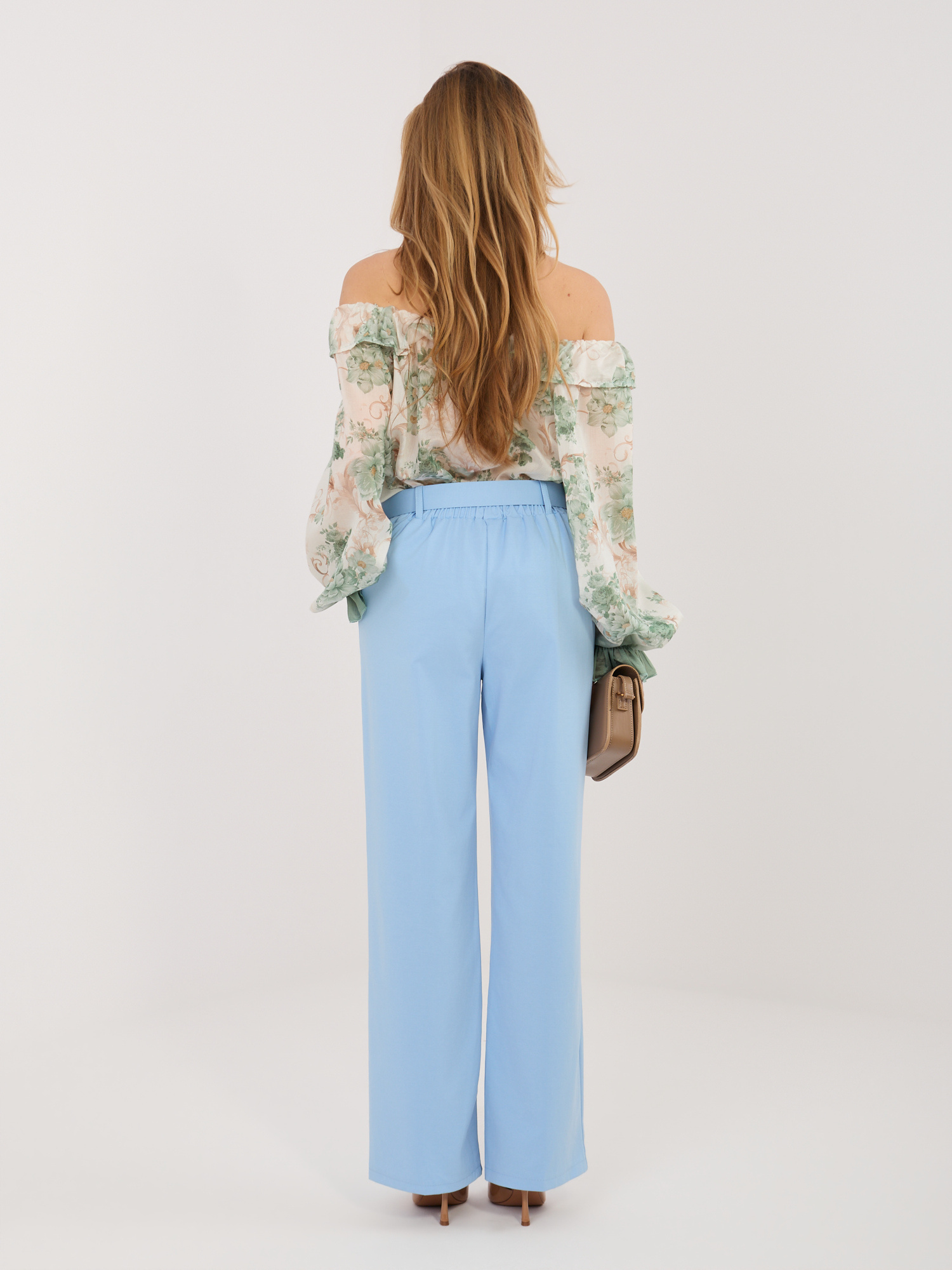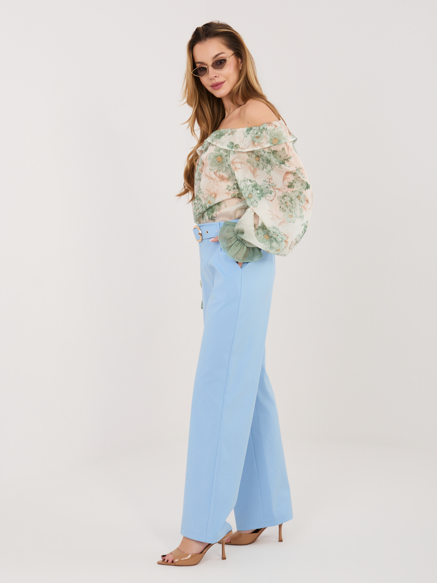 Jasnoniebieskie eleganckie spodnie z paskiem RUE PARIS .