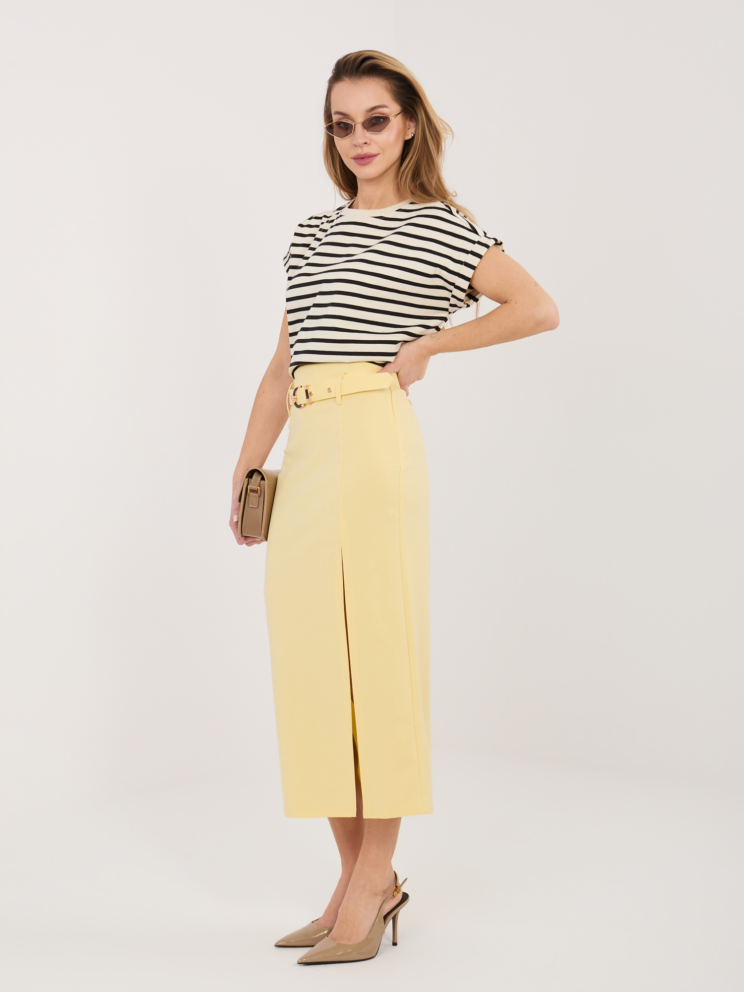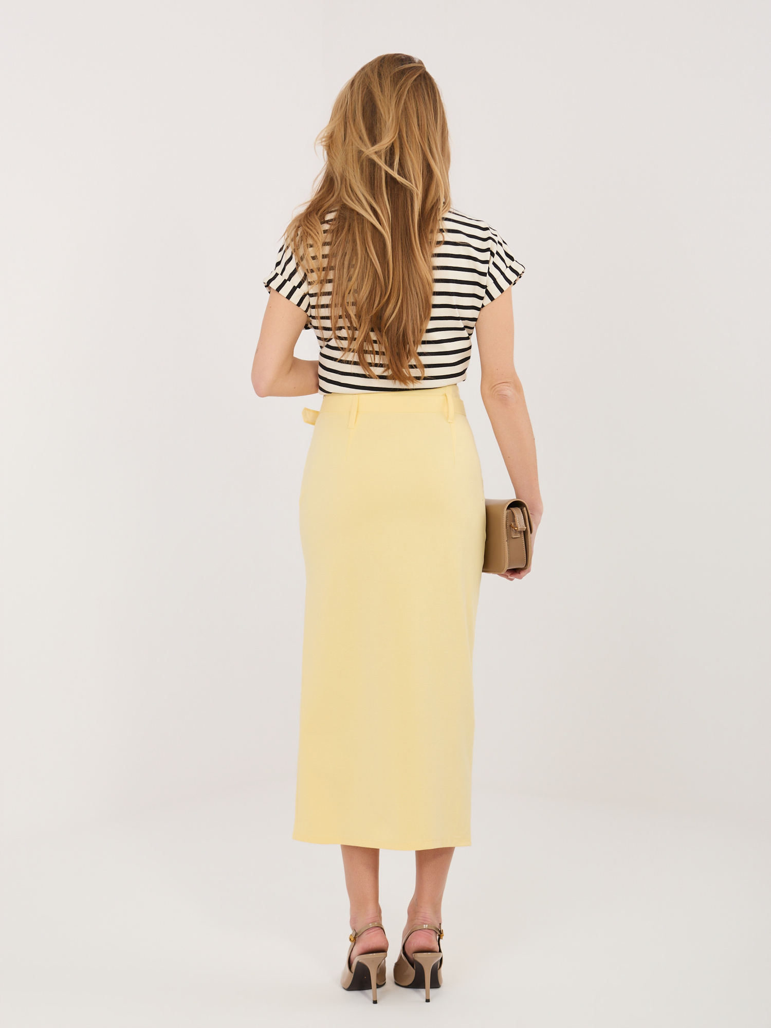 Jasnożółta midi spódnica z rozcięciem RUE PARIS .