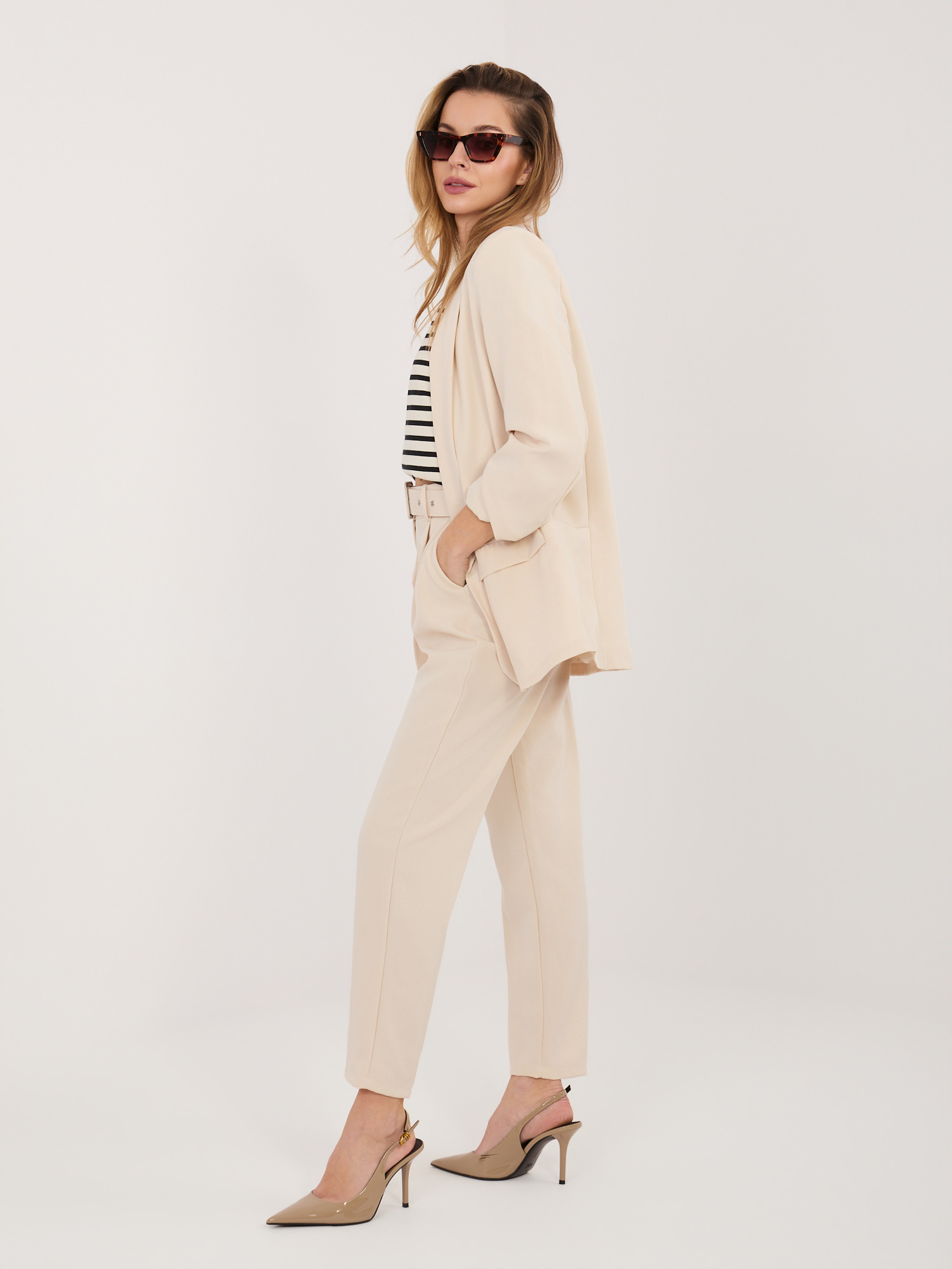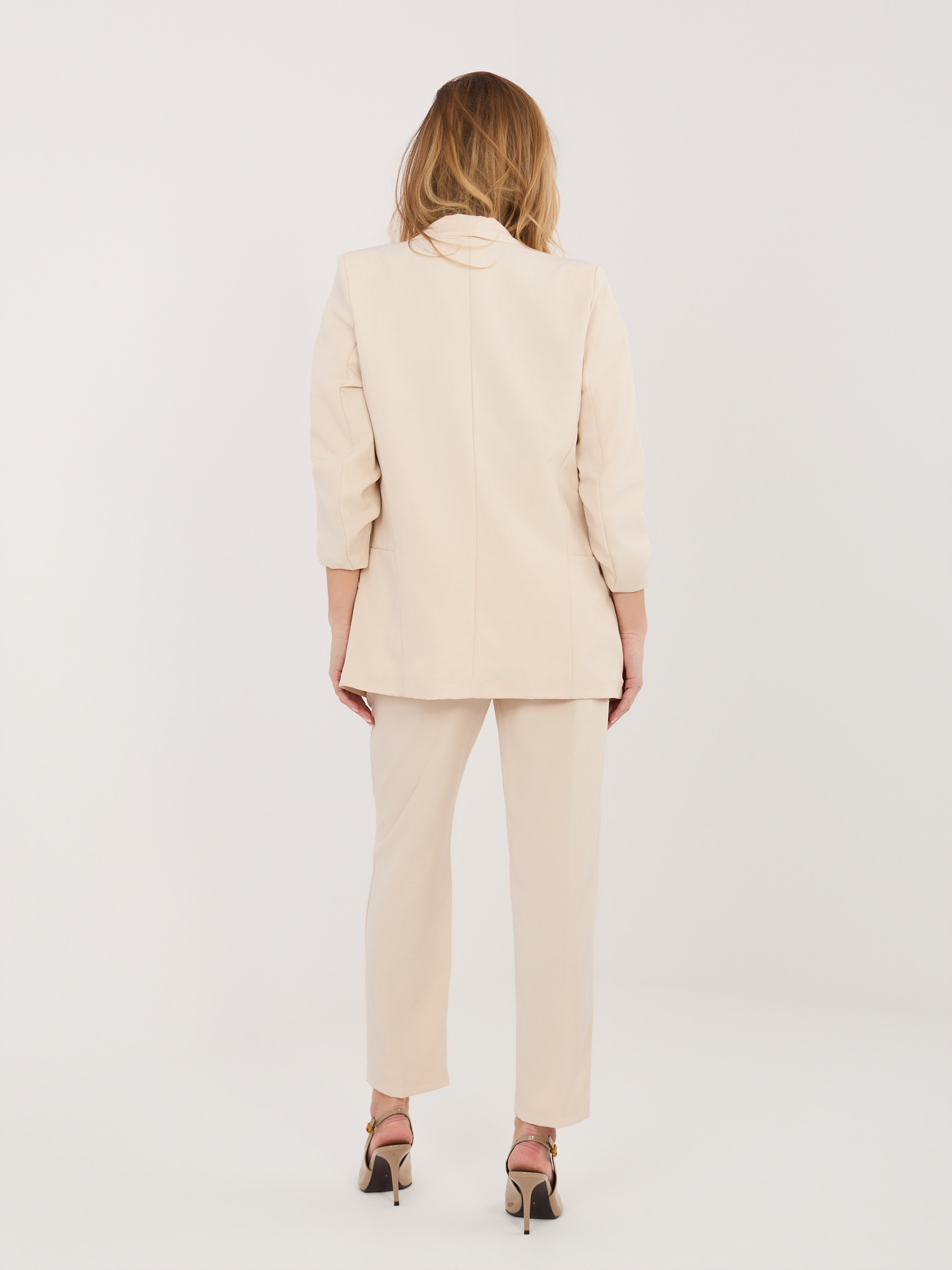 Beżowy garnitur ze spodniami typu cygaretki RUE PARIS .