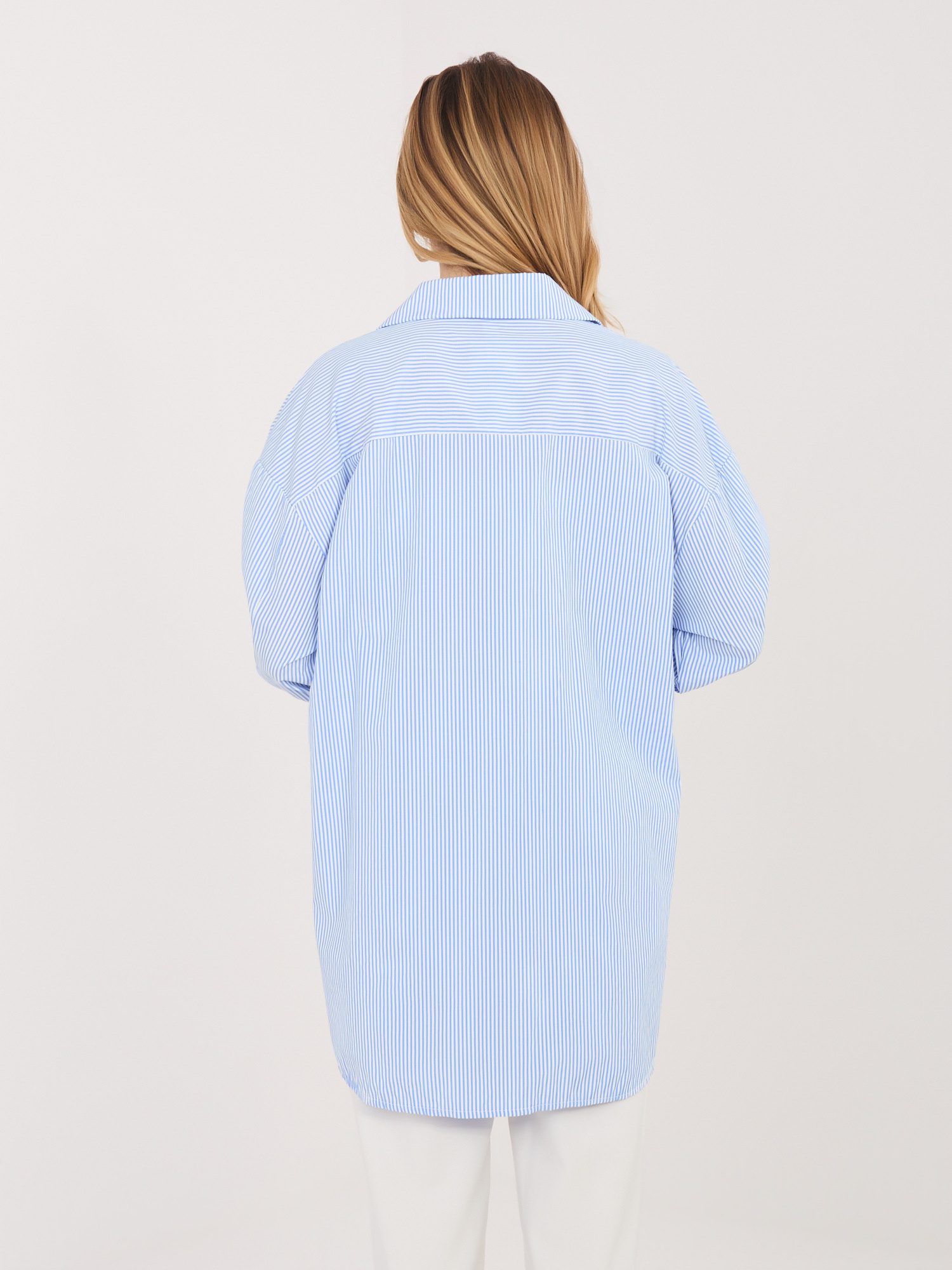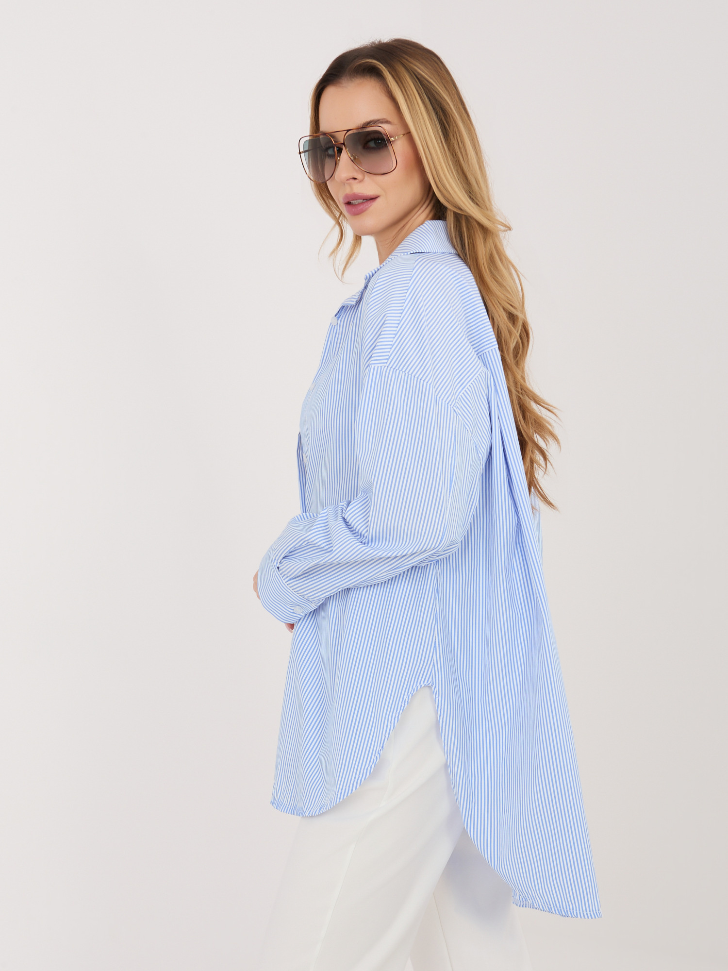 Niebieska damska koszula oversize z rozcięciami .