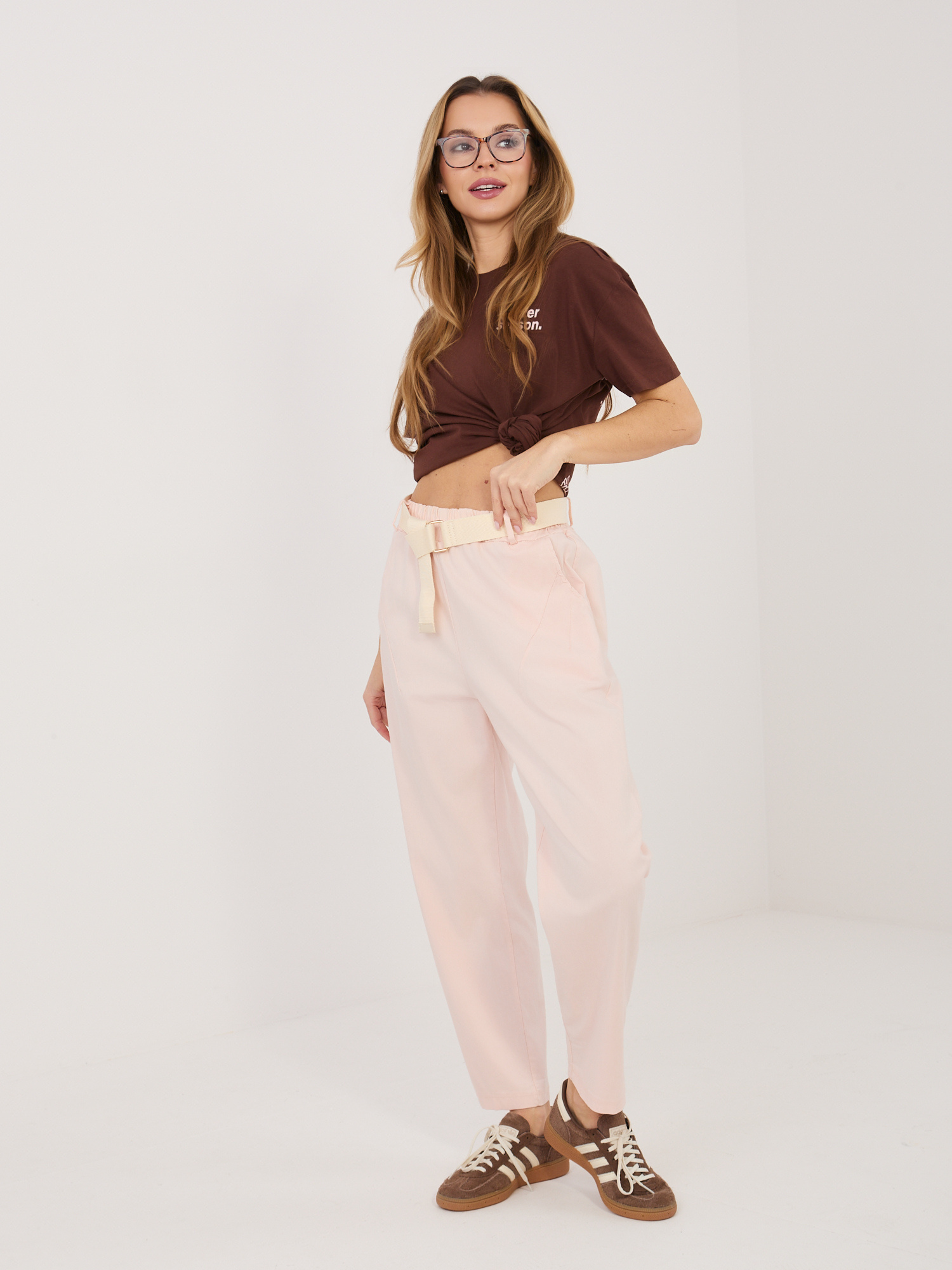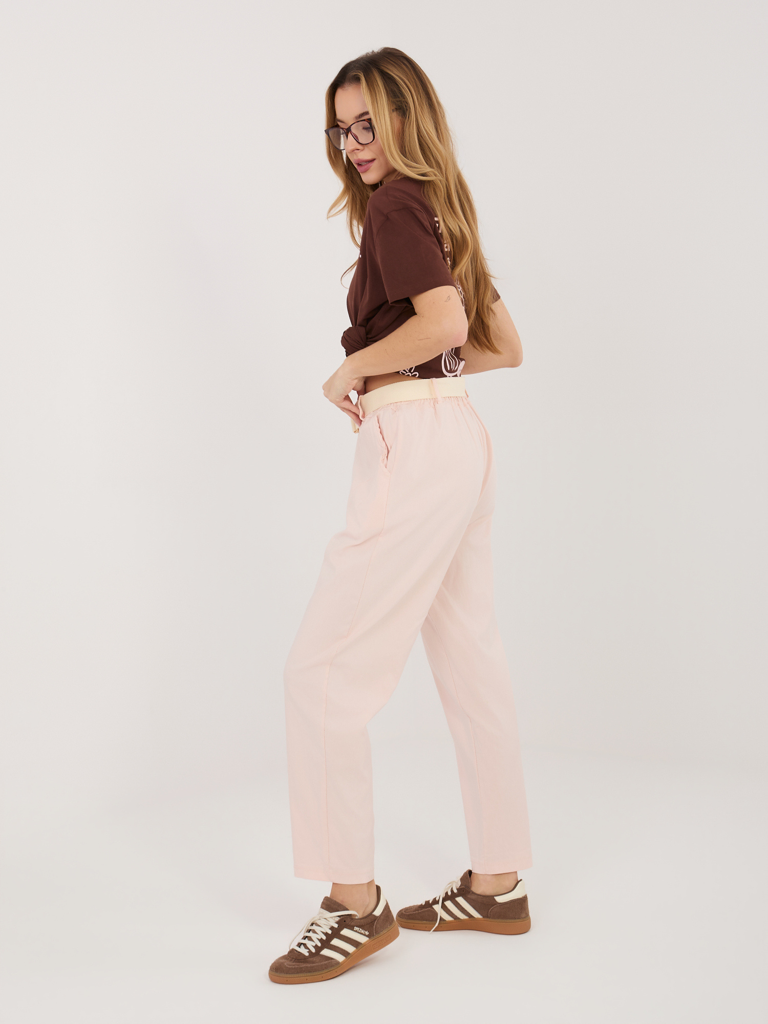 Jasnoróżowe materiałowe spodnie z prostą nogawką