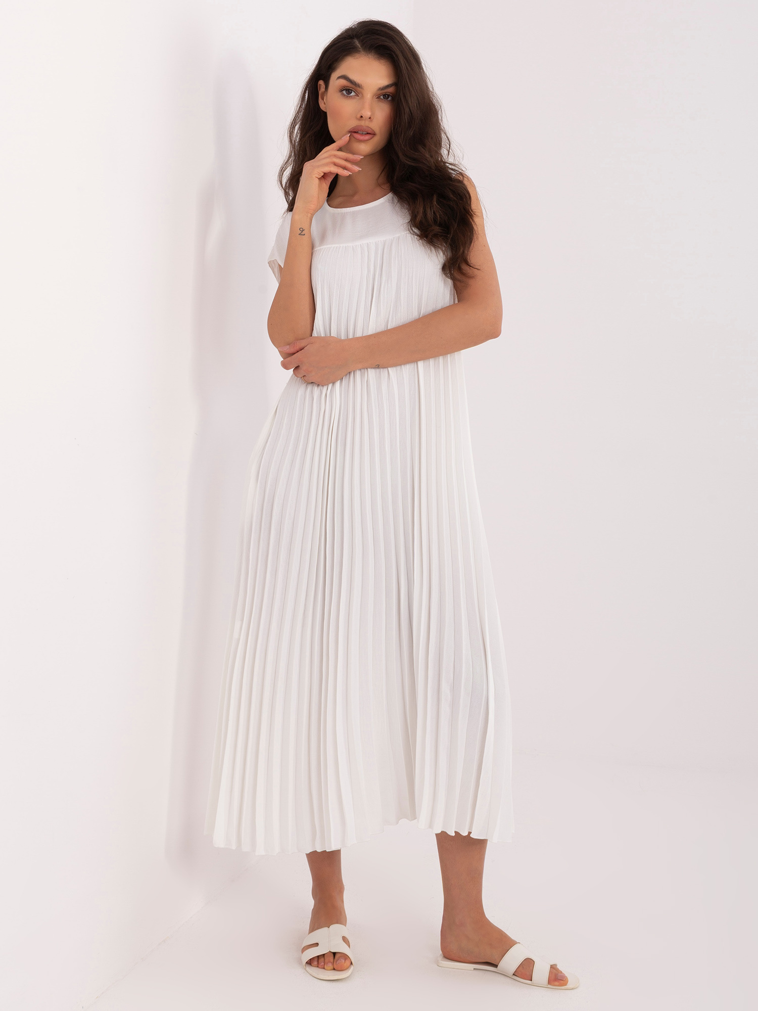 Ecru koktajlowa sukienka z plisowaniem RUE PARIS .